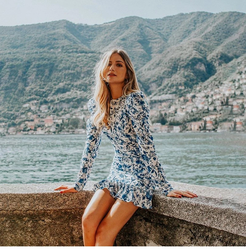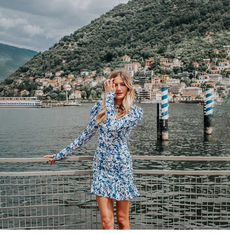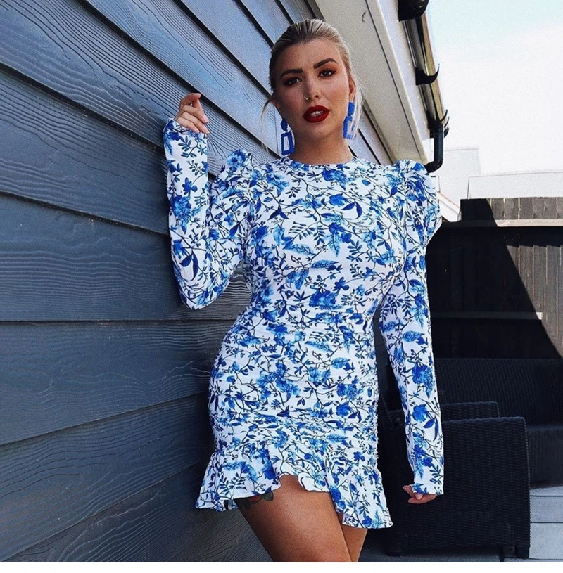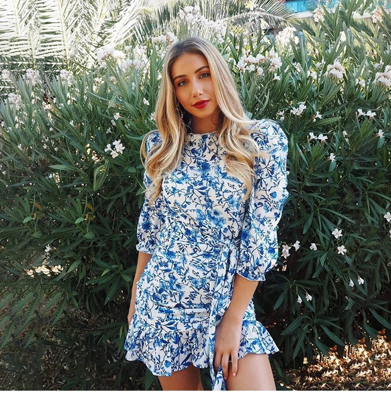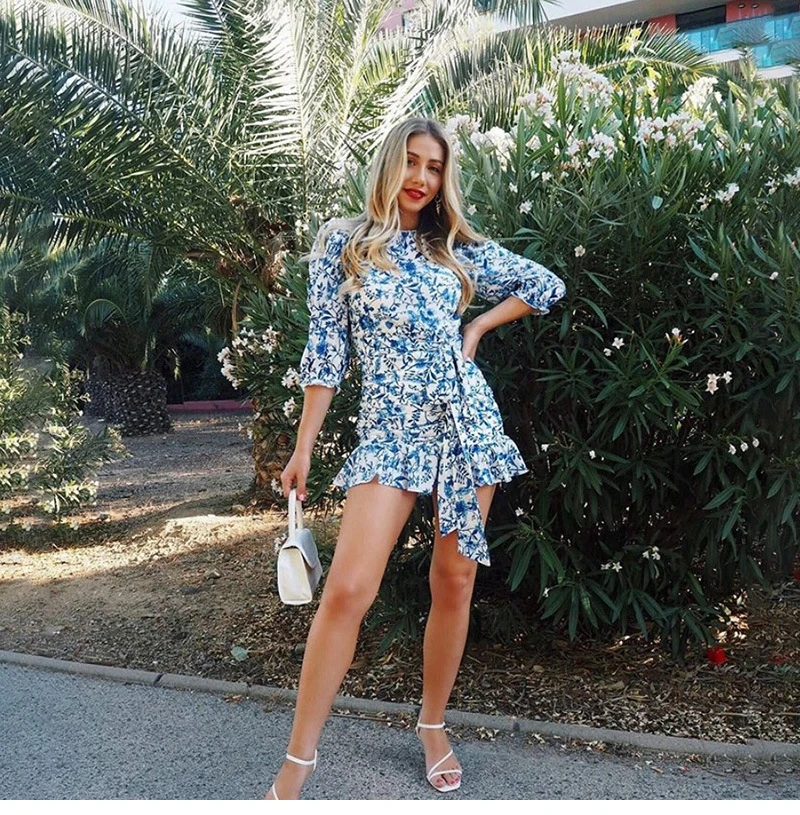 Spring Summer Sexy Short Floral Dress Women 2021 New Full Sleeve Backless Ruffles Mini Dress Ladies O Neck Print Hip Dresses