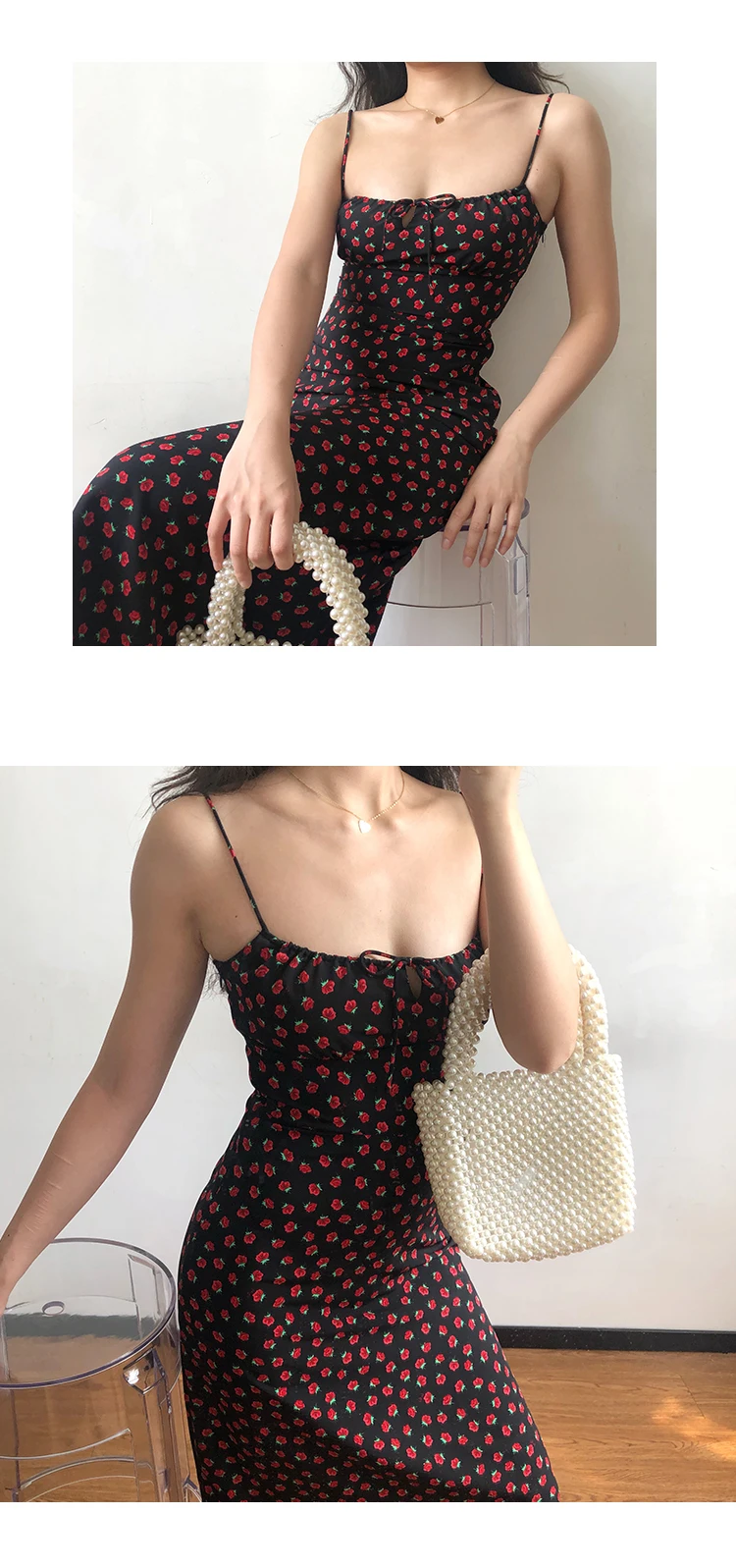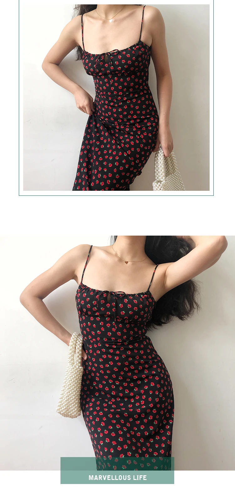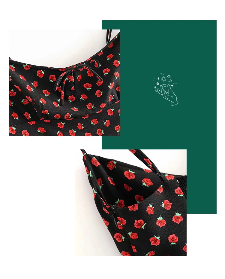 Summer Boho Red Strawberry Floral Print Spaghetti Strap Dress Women Black Elegant Sleeveless Sexy Beach Party Long Dresses 2021