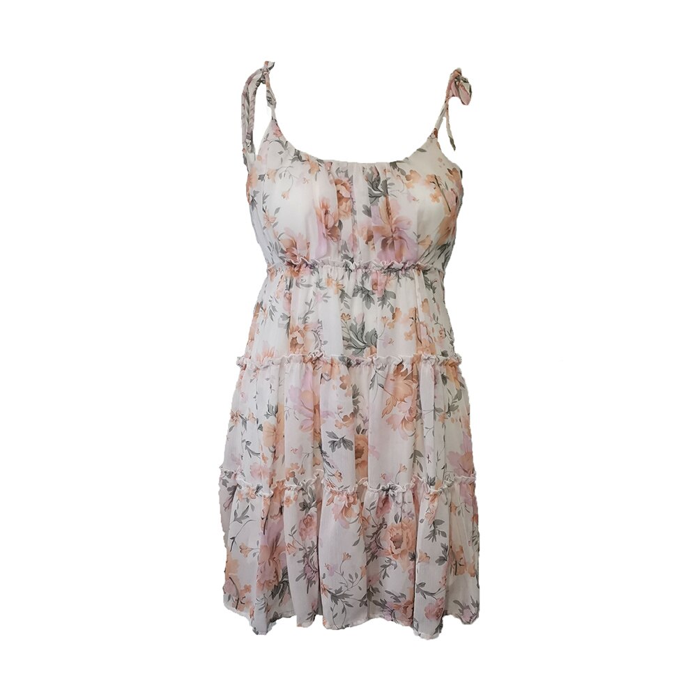Summer Dress Sexy Spaghetti Floral Lace Up Mini Dresses For Women 2021 Fashion Loose Chiffon Print Ruffle Boho Beach Vestidos