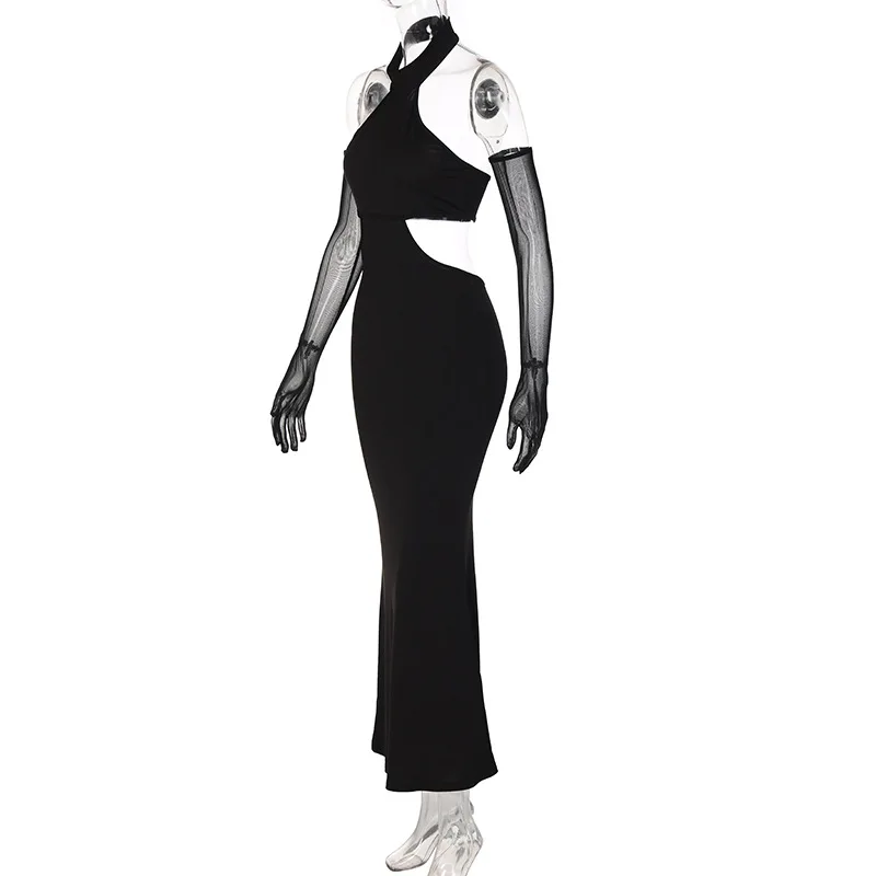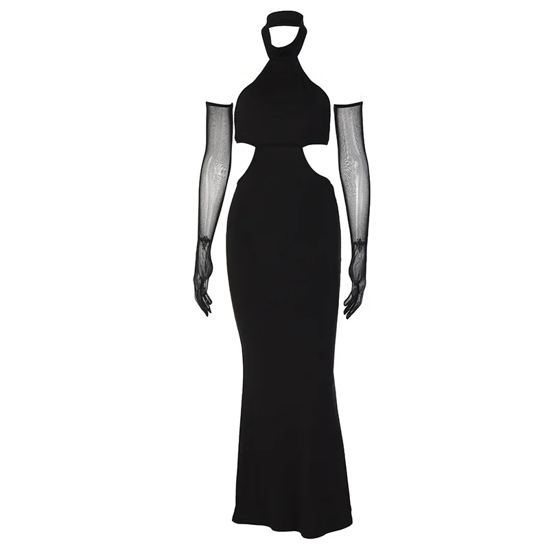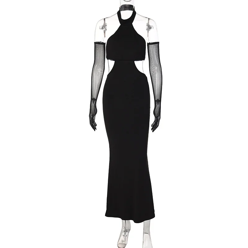 Summer For 2022 Fashion Women'S Clothes Black Halter Romper Sexy Bandage Casual Evening Party Prom Maxi Dresses Vestidos Gloves