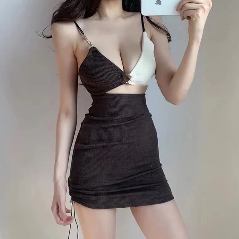 summer off shoulder sleeveless suspender dress female sexy slim mini dress conspicuous orange vest dresses street party Carnival