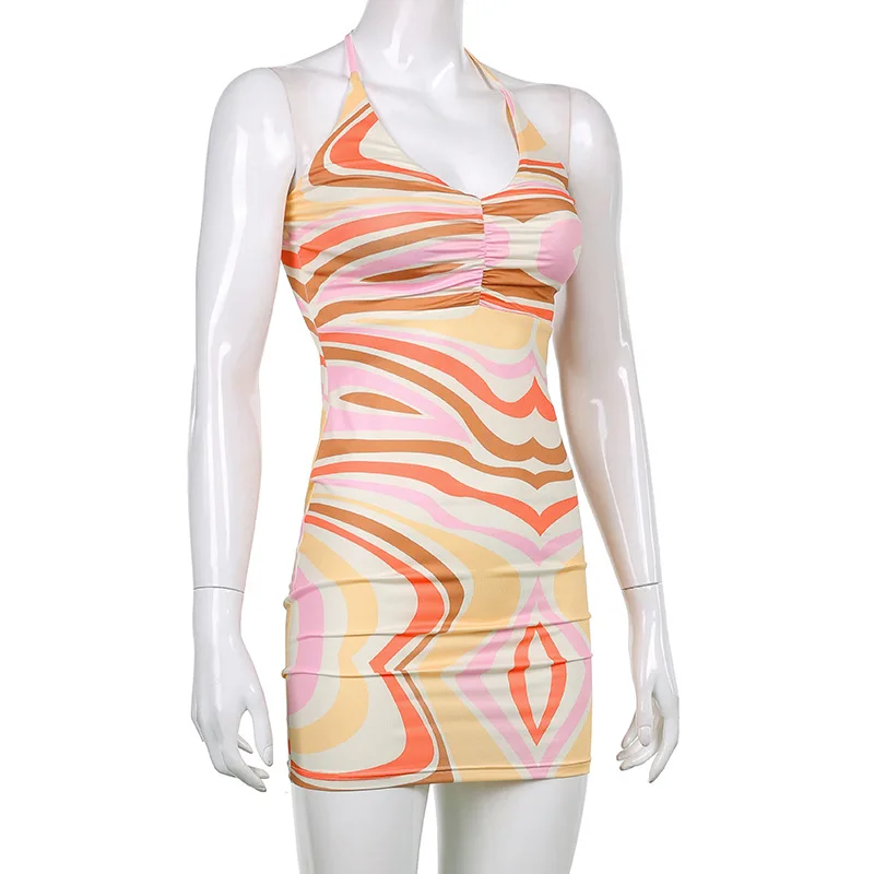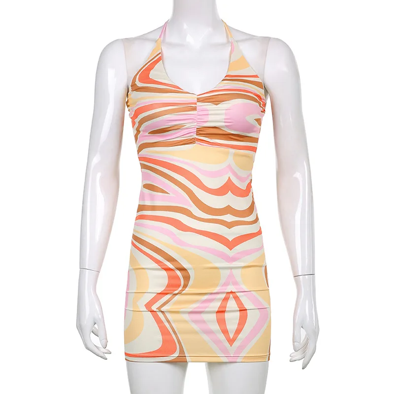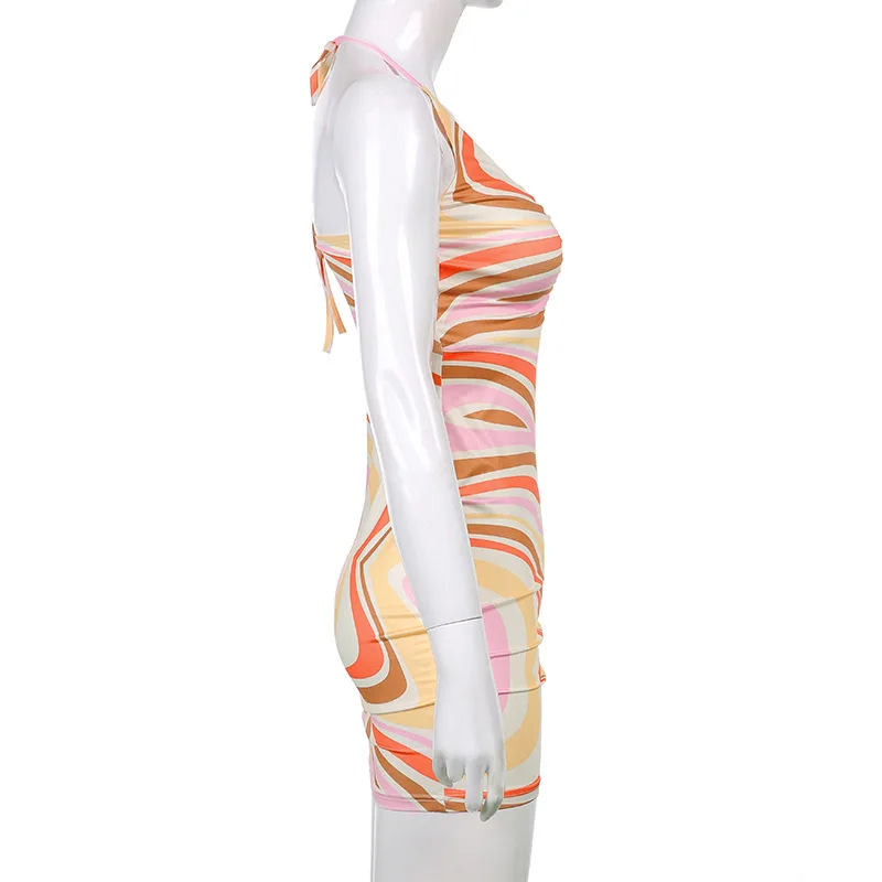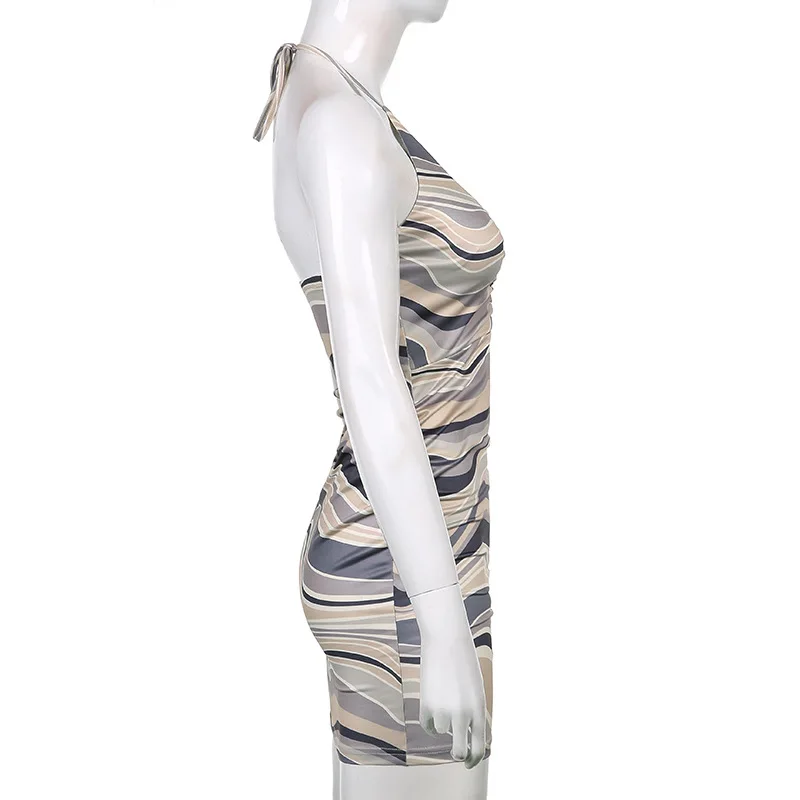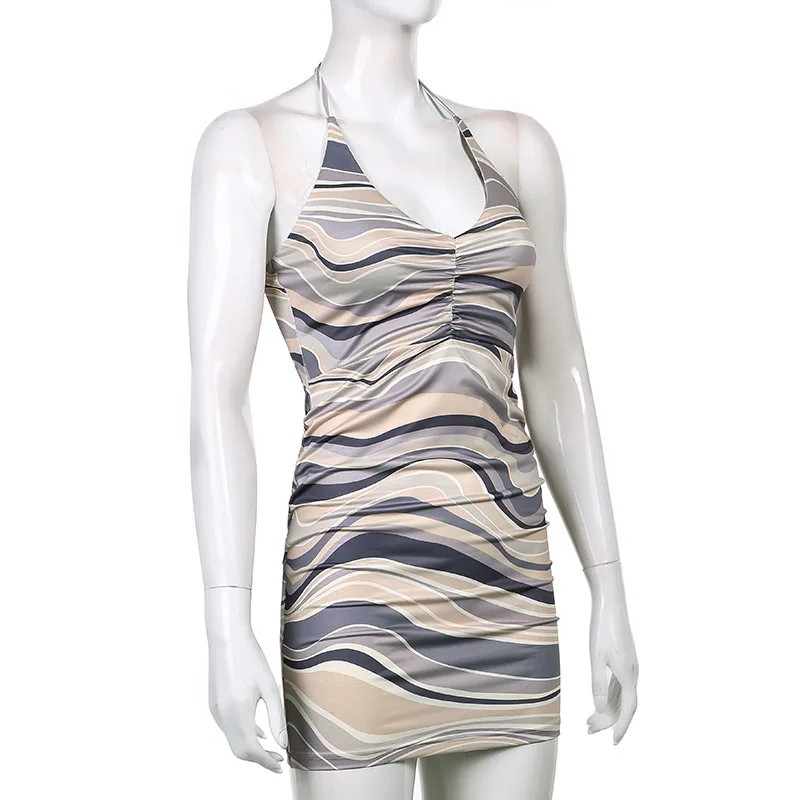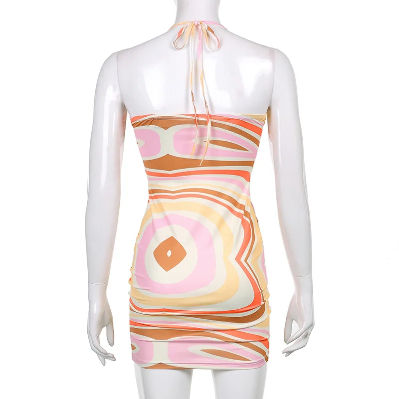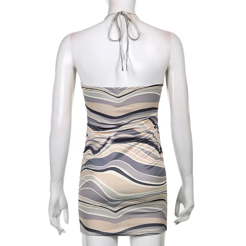 Whirlpool Water Ripple Backless Sexy Summer Women 2021 V-Neck Halter Slim Mini Dresses Women's Party Dress Elegant Clubwear Robe