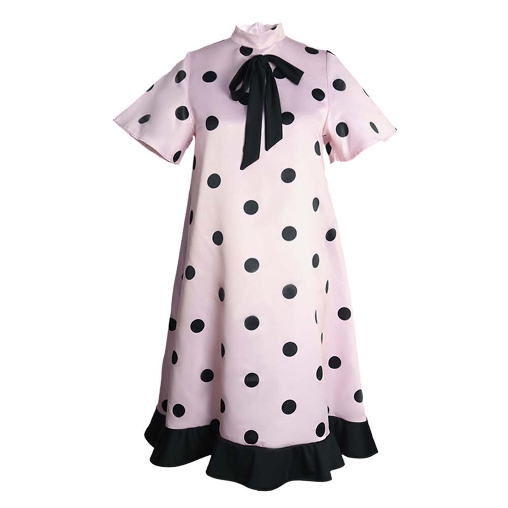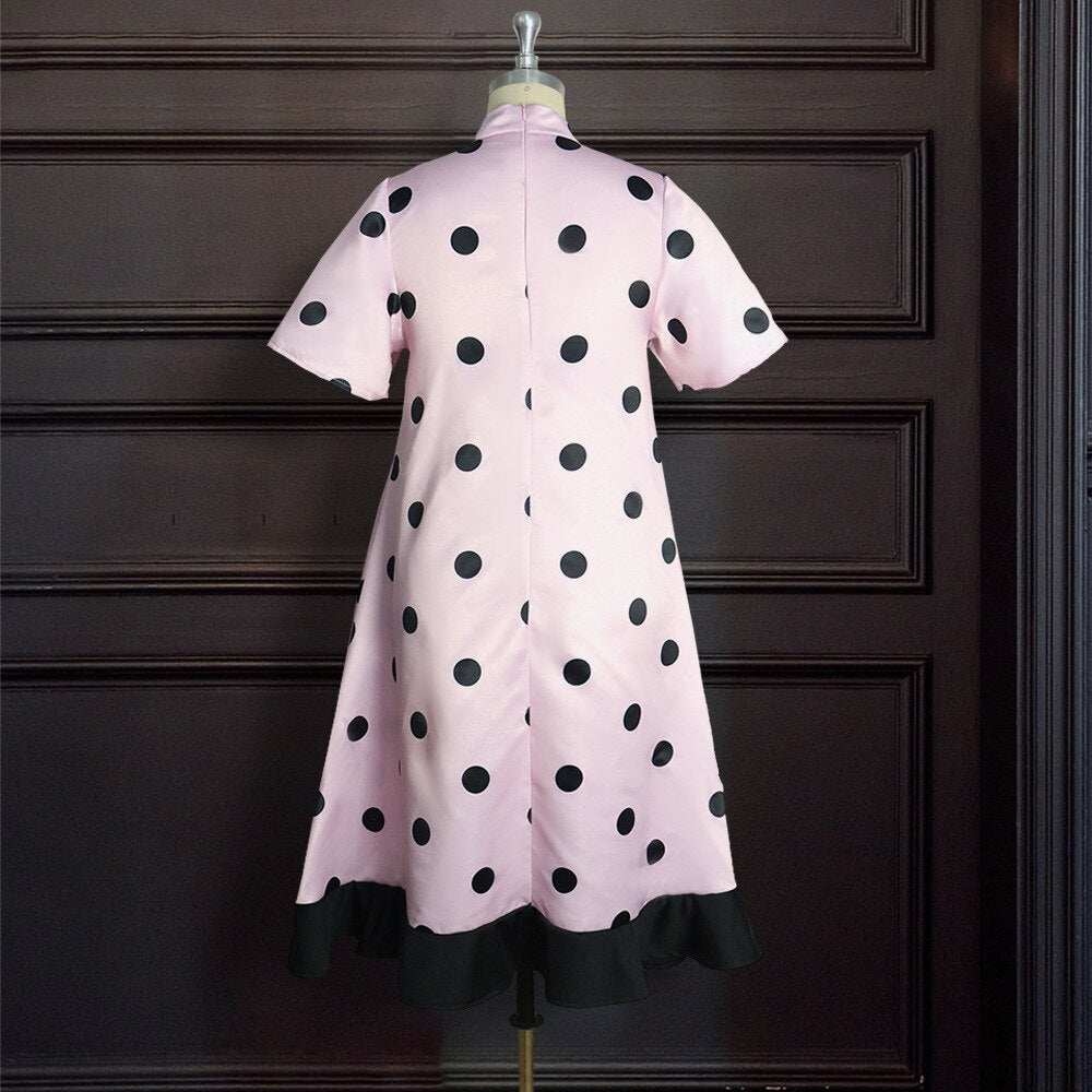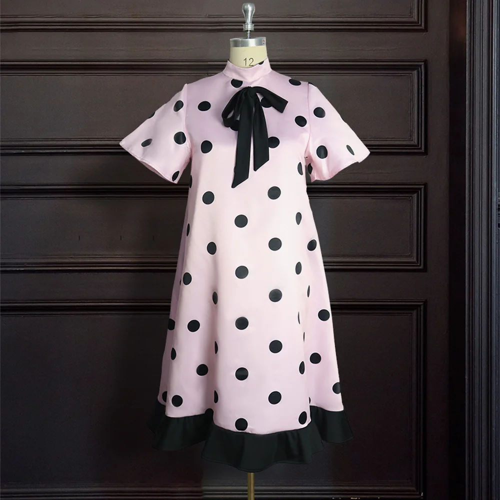 Women's Dress Stand-up Collar, Short-sleeved Polka-dot Printed Bow And Ruffled Loose Large Hem Skirt Spring Summer Party Dresses