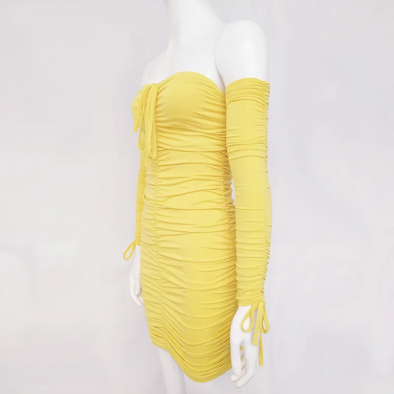 Women Dress Sexy Long Sleeve Folds Dresses Slim Elastic Bodycon Party Dresses Off Shoulder Autumn Bandage Dress Female Clothes