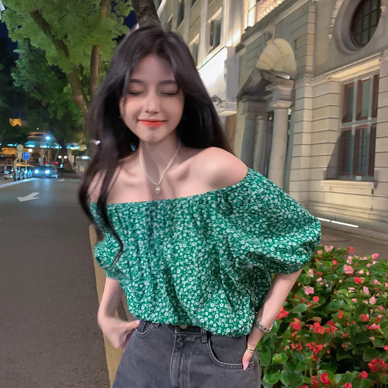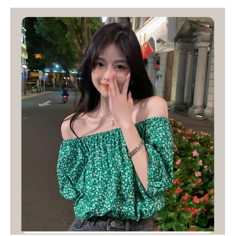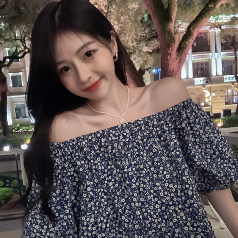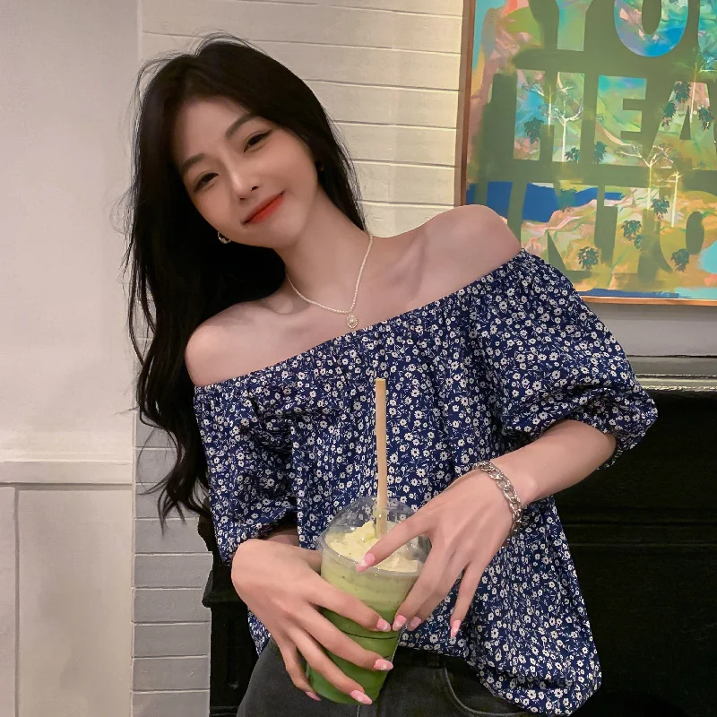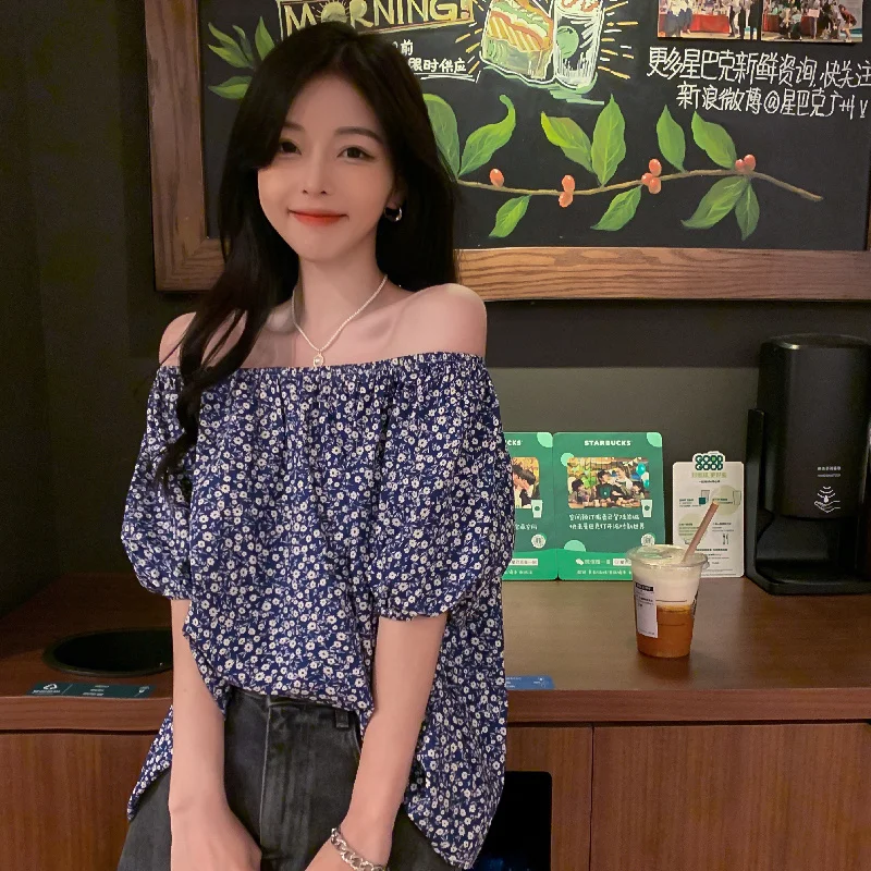Chiffon Retro French Floral Collar Design Sensibility Blouse Women Fashion Summer Short Sleeve Tee Sexy Sweet Korean Style Cloth