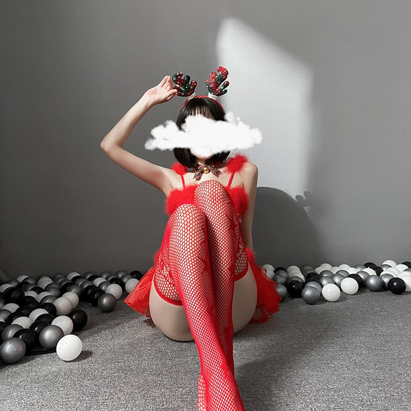 Christmas Cosplay Anime Costumes Halloween Role Playing Sexy Lingerie Stockings One-piece Bodysuit Temptation Maid Outfits