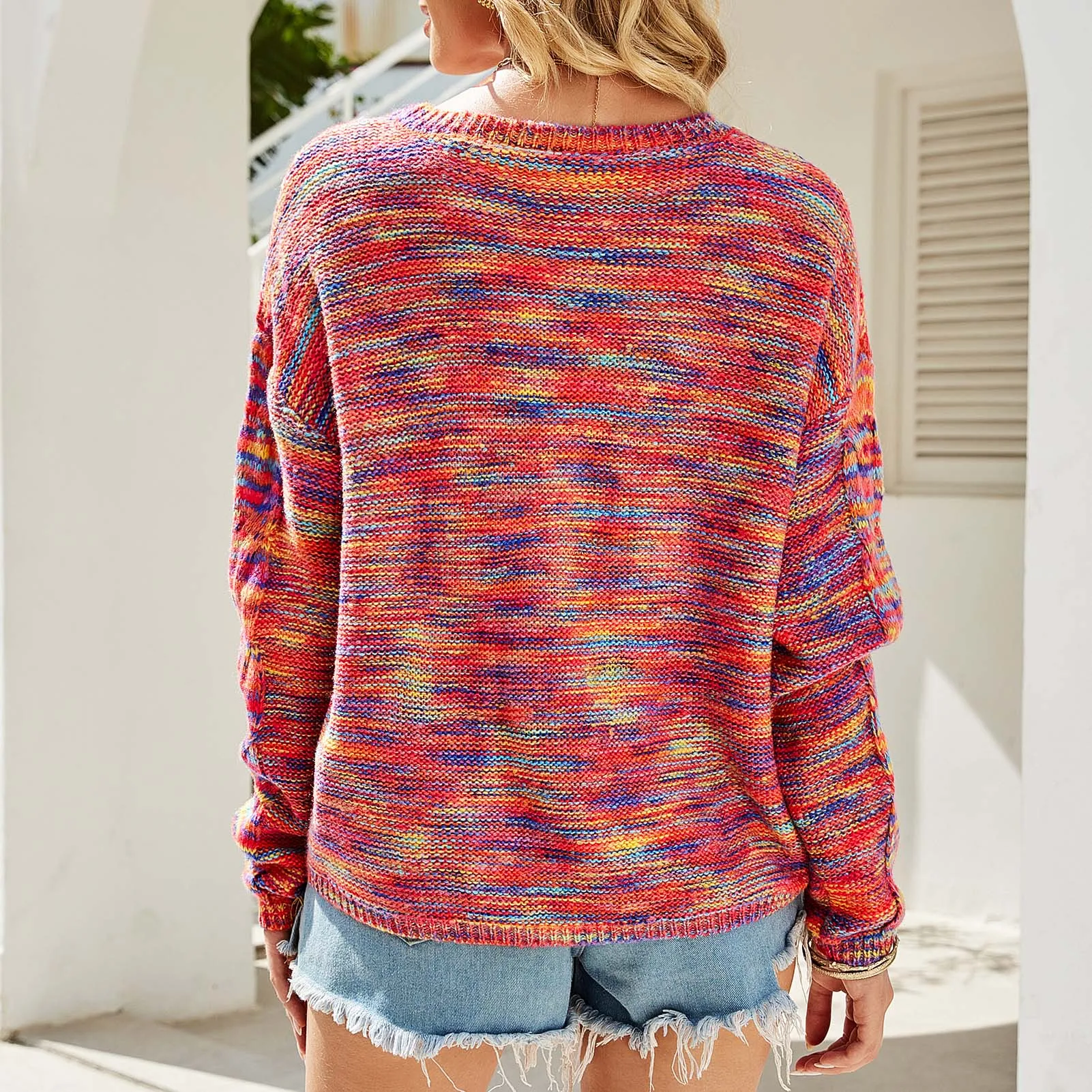 A loose, o neck and long sleeve sweater keep you warm in cold weather.