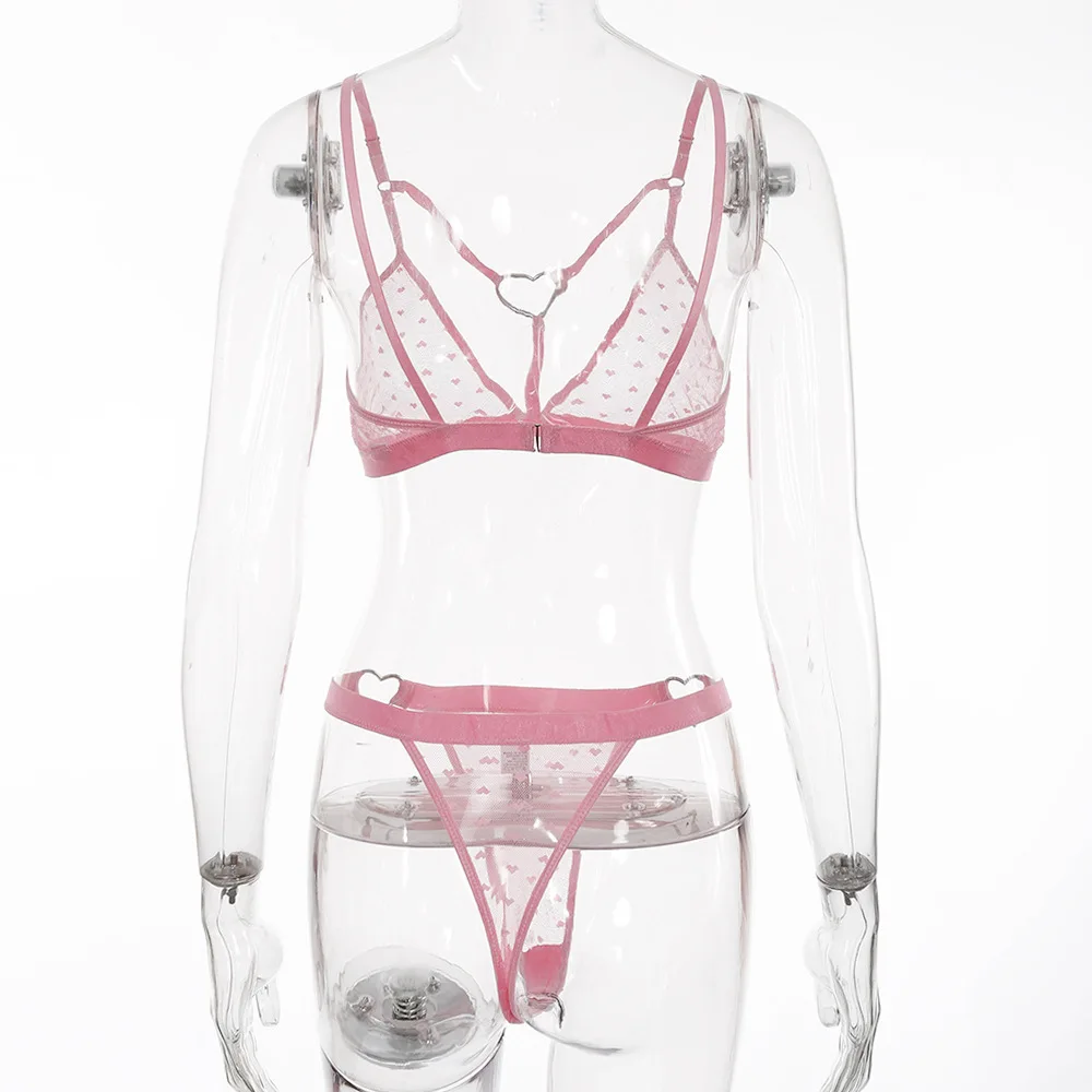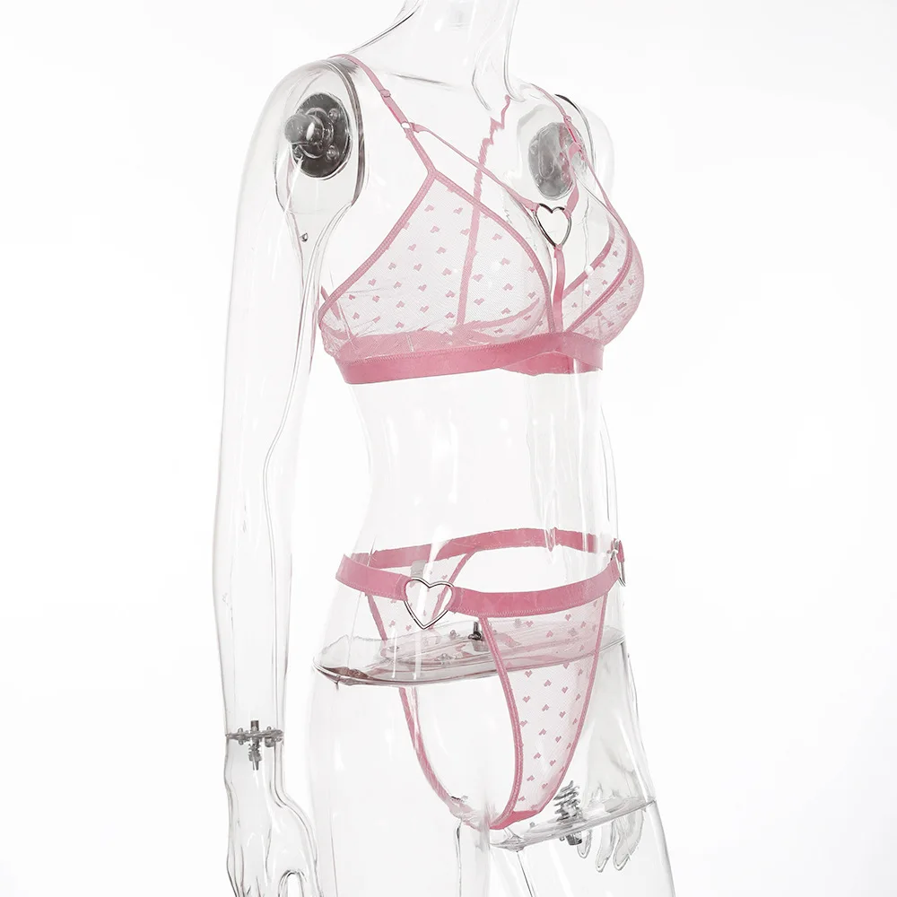 Ellolace Transparent Bar Set Love Polka Dot Underwear Set Pink Lance Bar Set Sexy Erotic Lingerie Set Bar Party Set