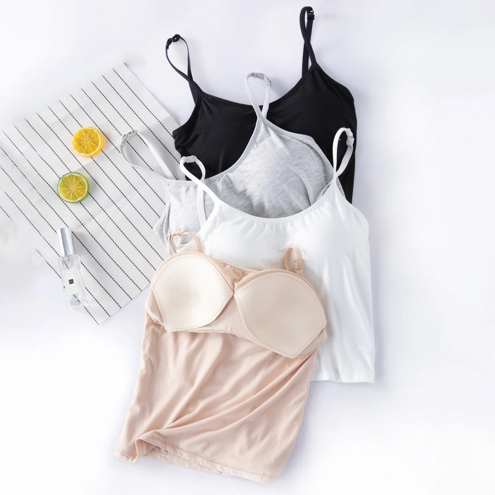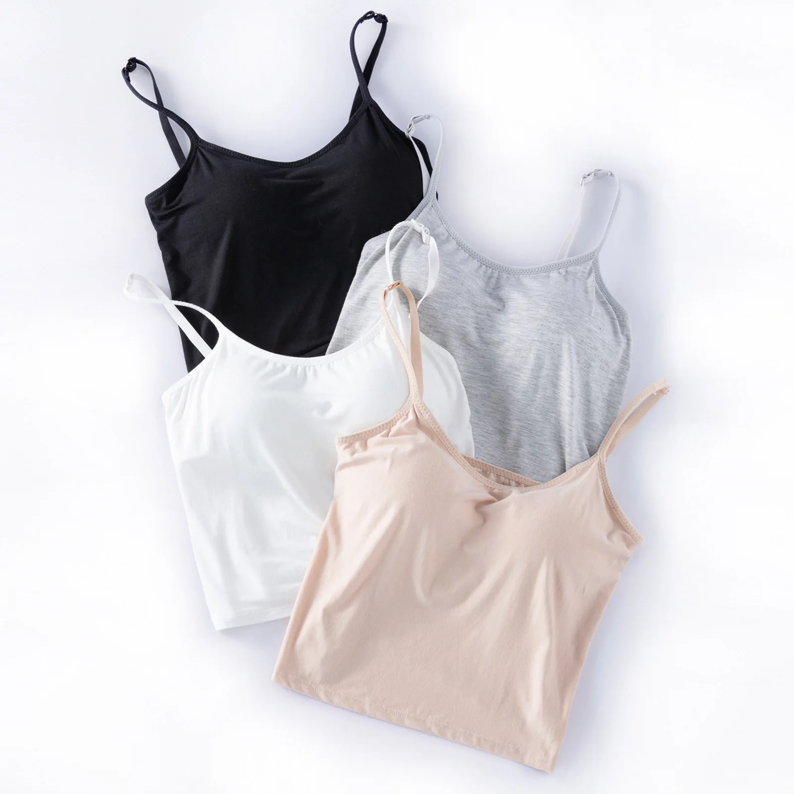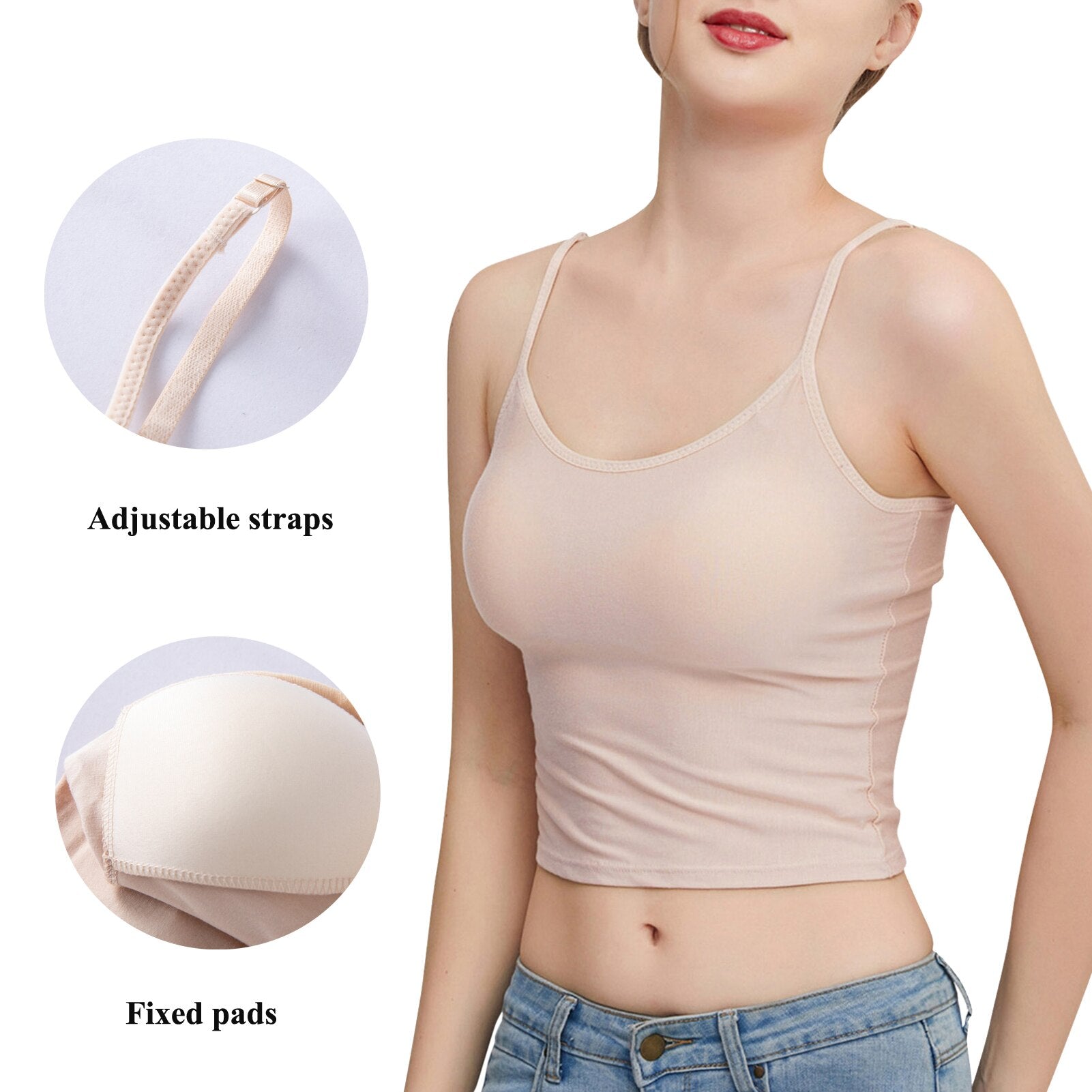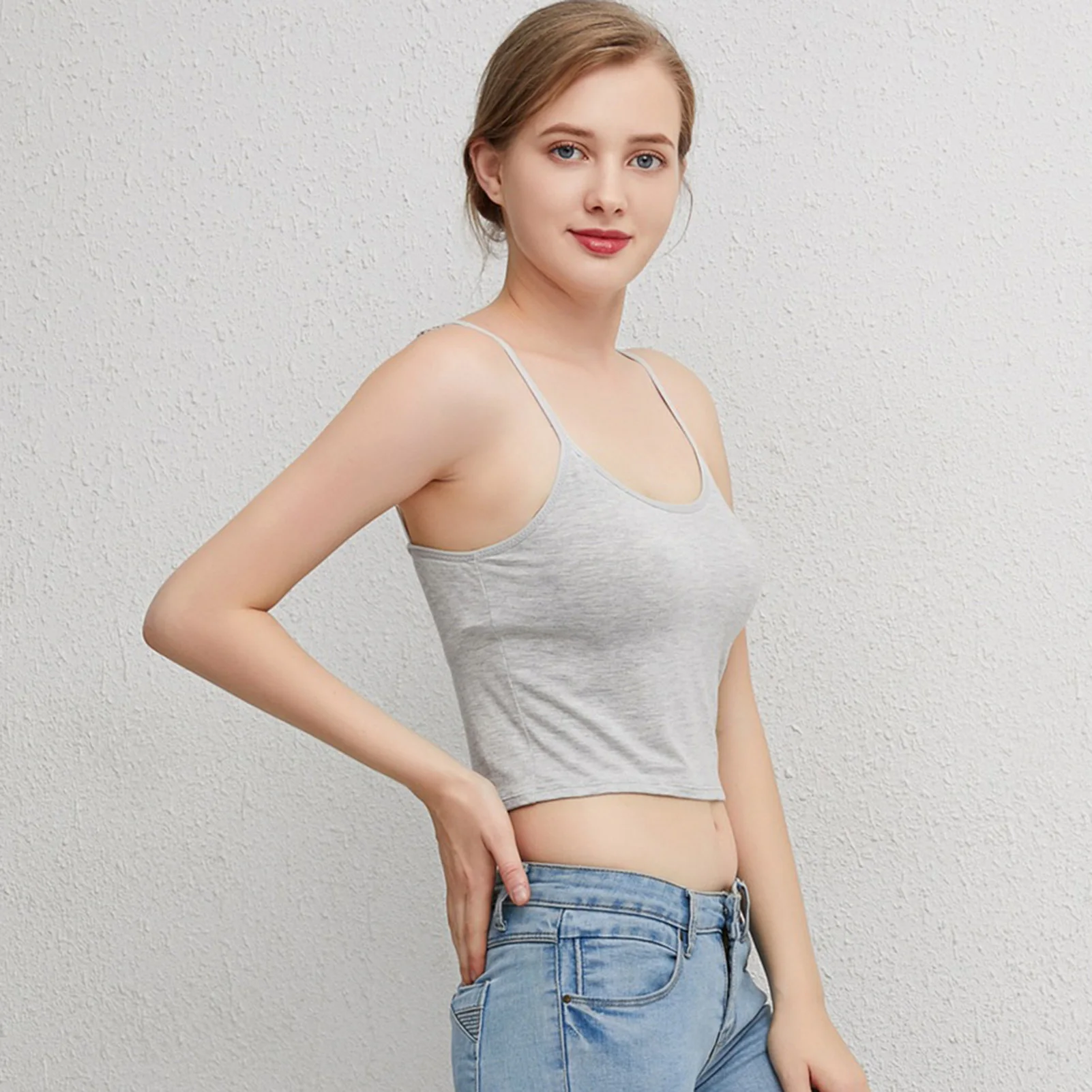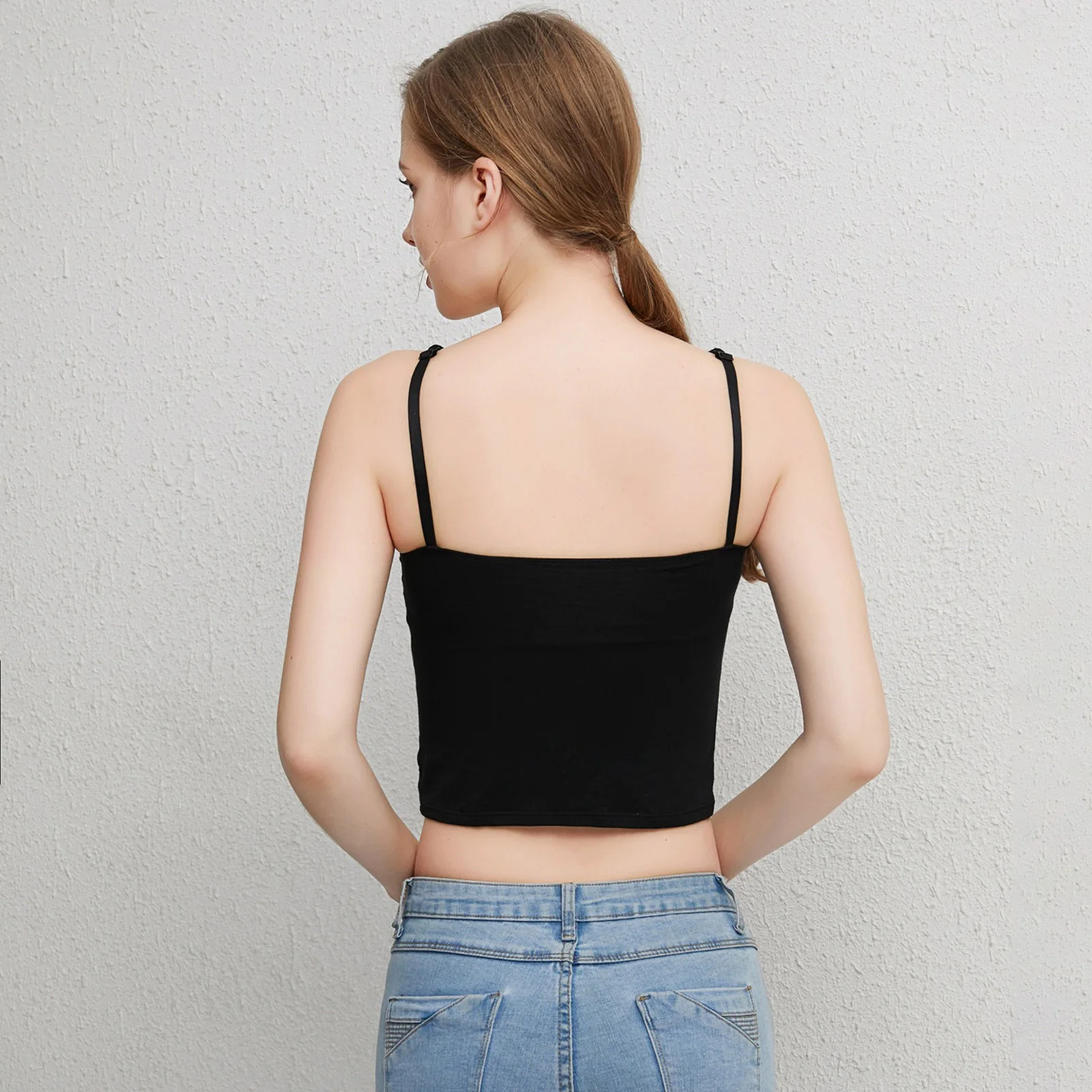 Camisole in solid color features adjustable strap, fixed pads and wireless style. Crop design shows your perfect body figure. Have one for the hot summer.