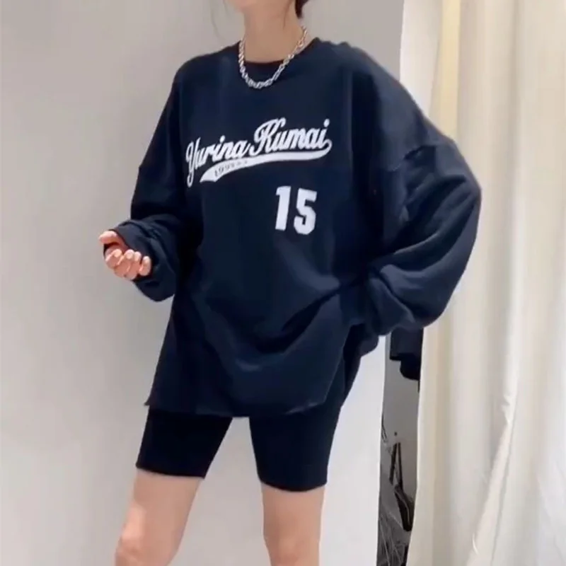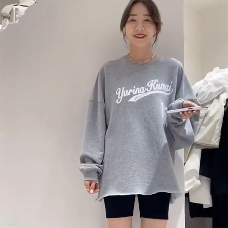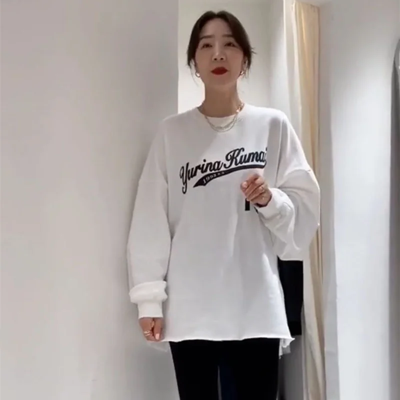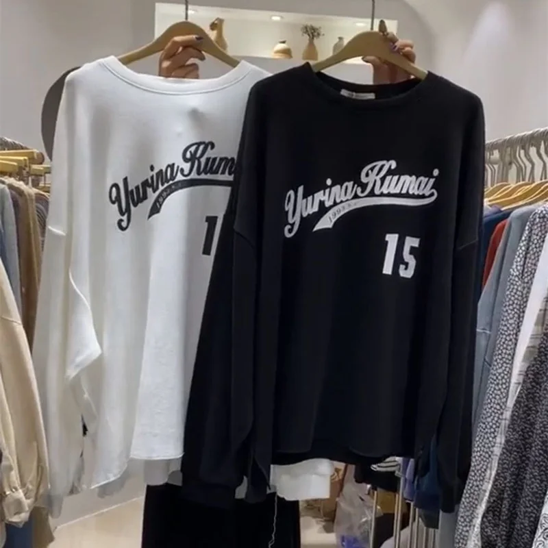 High Street Letter Pullover Sweatshirt Women's Spring and Autumn Loose Slimming Korean Ins Trendy Thin BF Idle Style Versitile