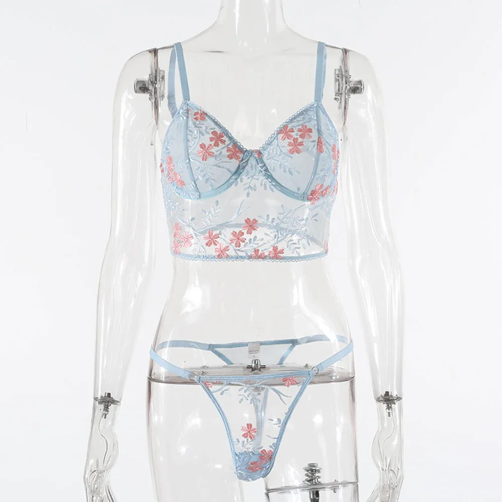 Hot New Women's Sexy Lingerie Lace Flower Embroider Adjustable Erotic Underwear Perspective Bra and Thong Suit Bondage Suit