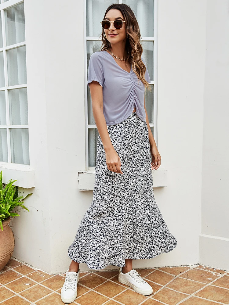 Hot Sale Fairladyinc Polyester Women T Shirt Special Front Fold Design V-neck Top In Purple