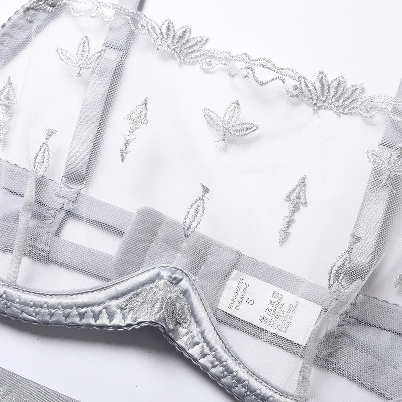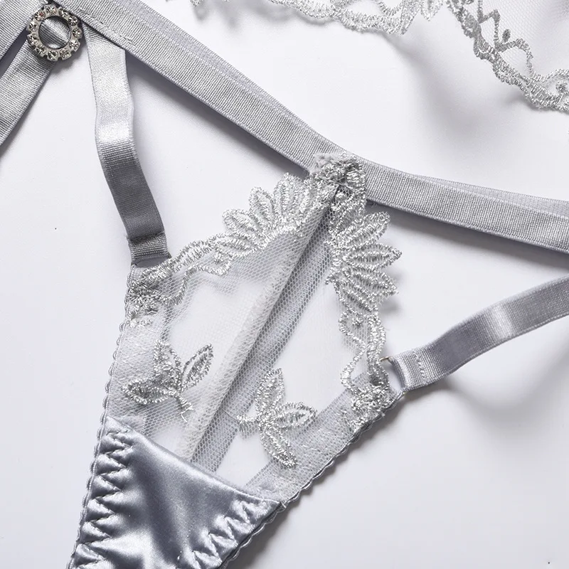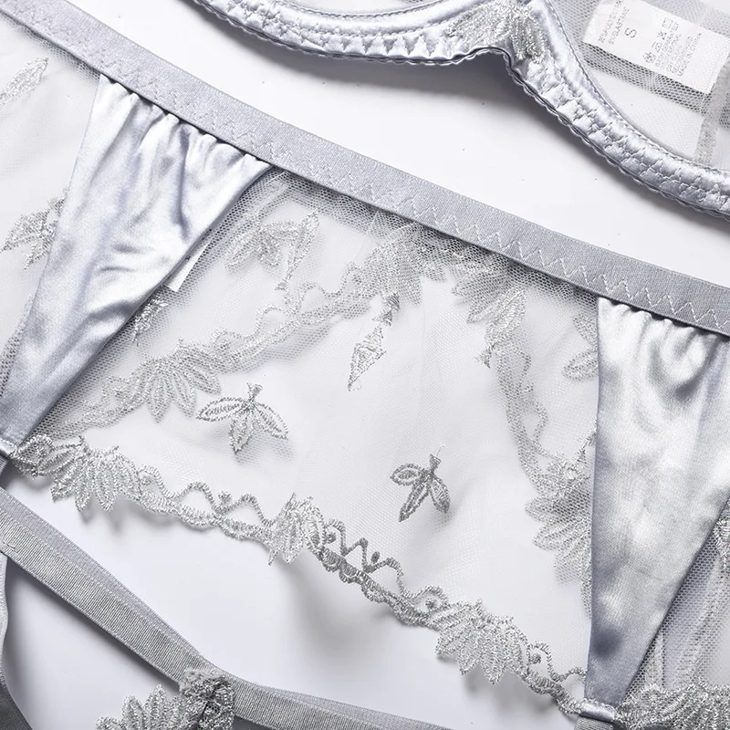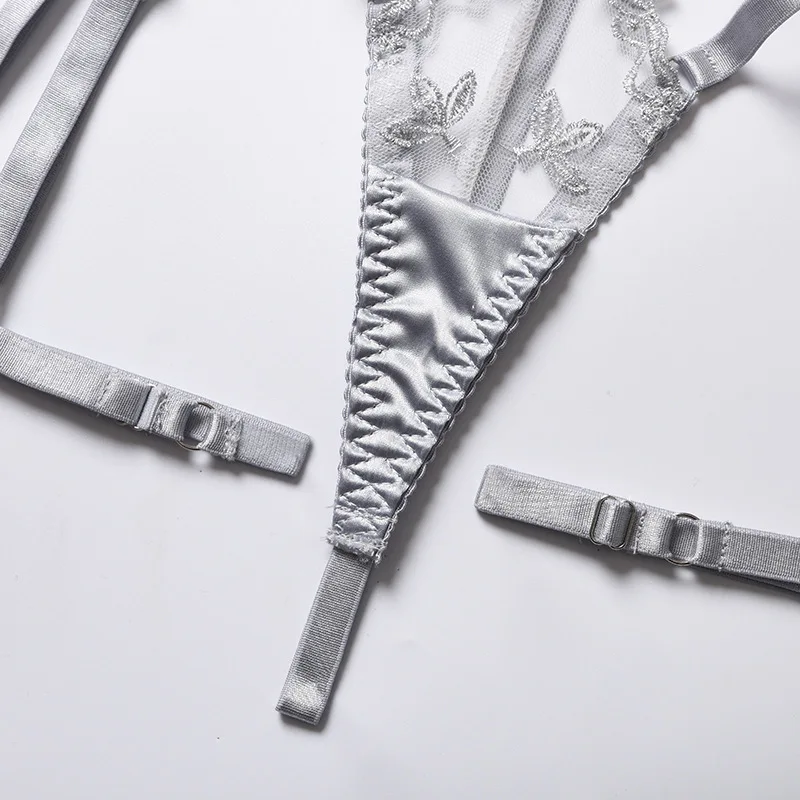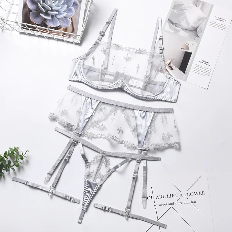 Hot Sell 4 PCS Set Women Sexy Embroider Sensual Lingerie Underwear Lace Flower Erotic Costumes Bra Transparent Exotic Underwear