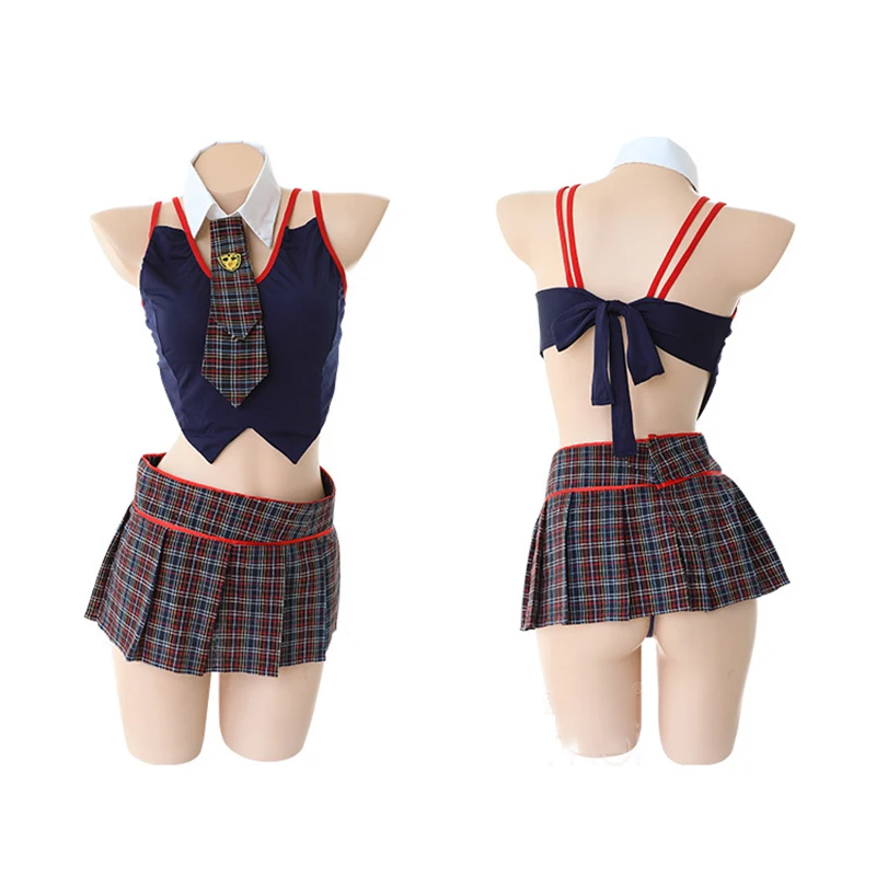 Package includes: + Tie + Top + Pleated skirt + Thong