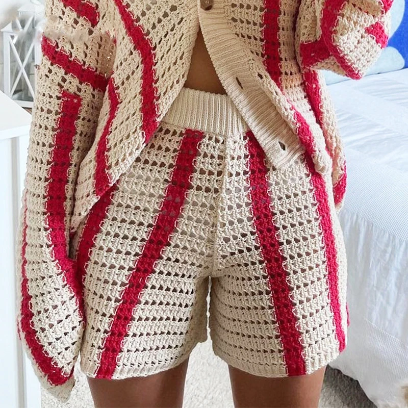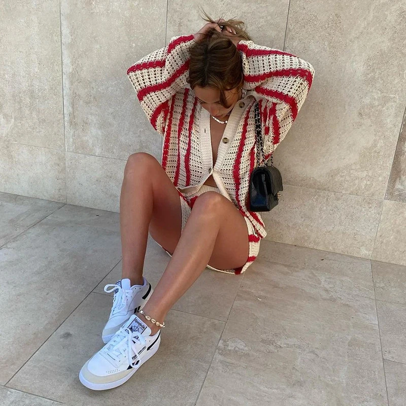 Knitted Long Sleeve Cardigan Women Red Stripe Jumper Loose Y2K Autumn Winter Fashion Casual Sweater Top V Neck Oversized sweater
