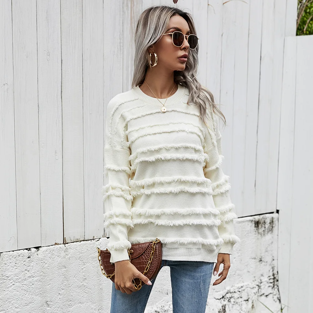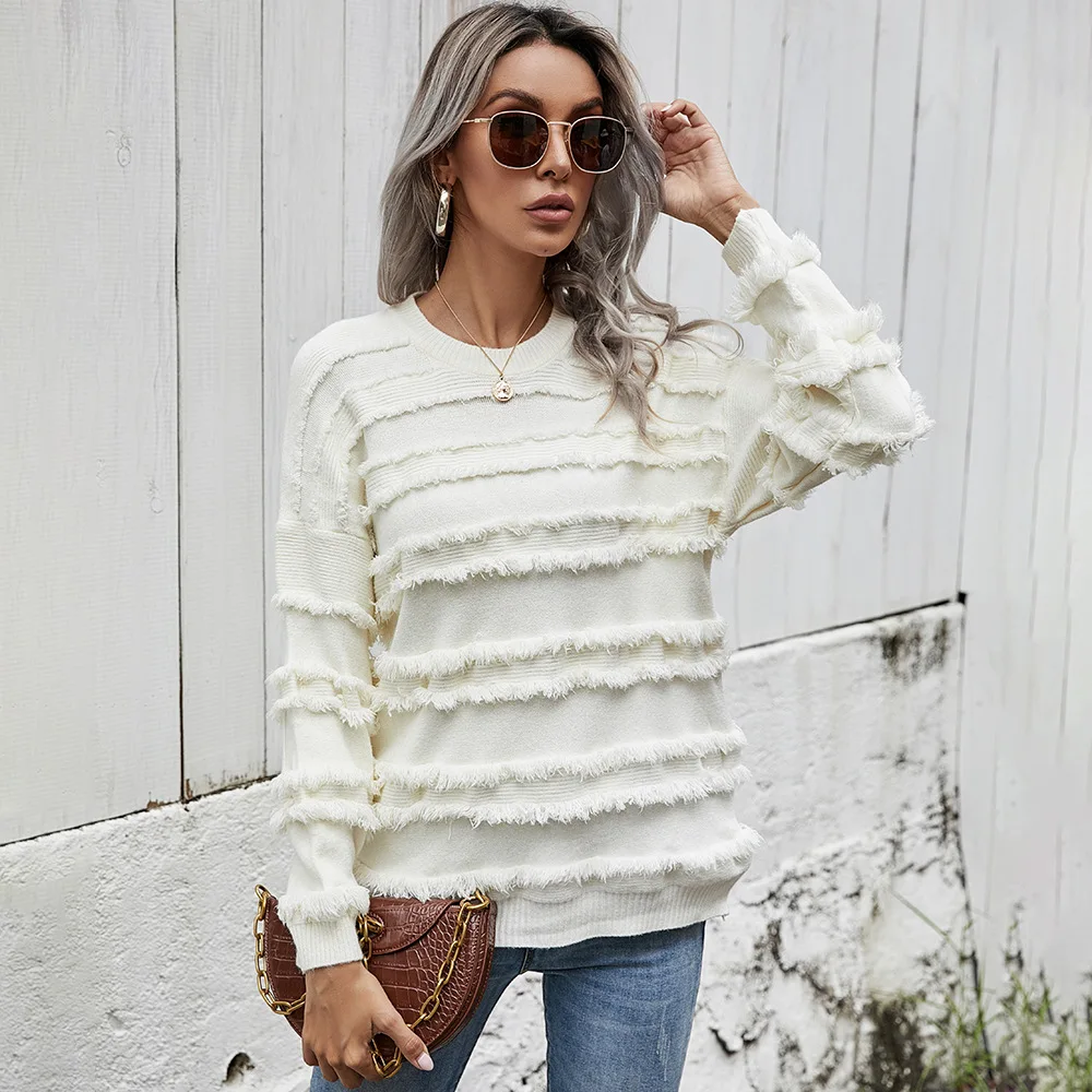 Knitwear Winter 2021 Solid Tassel Knitted Sweater Mujer Loose Waist Women Jersey Thick Thermal Pulsweetheart Long Sleeve Jumper