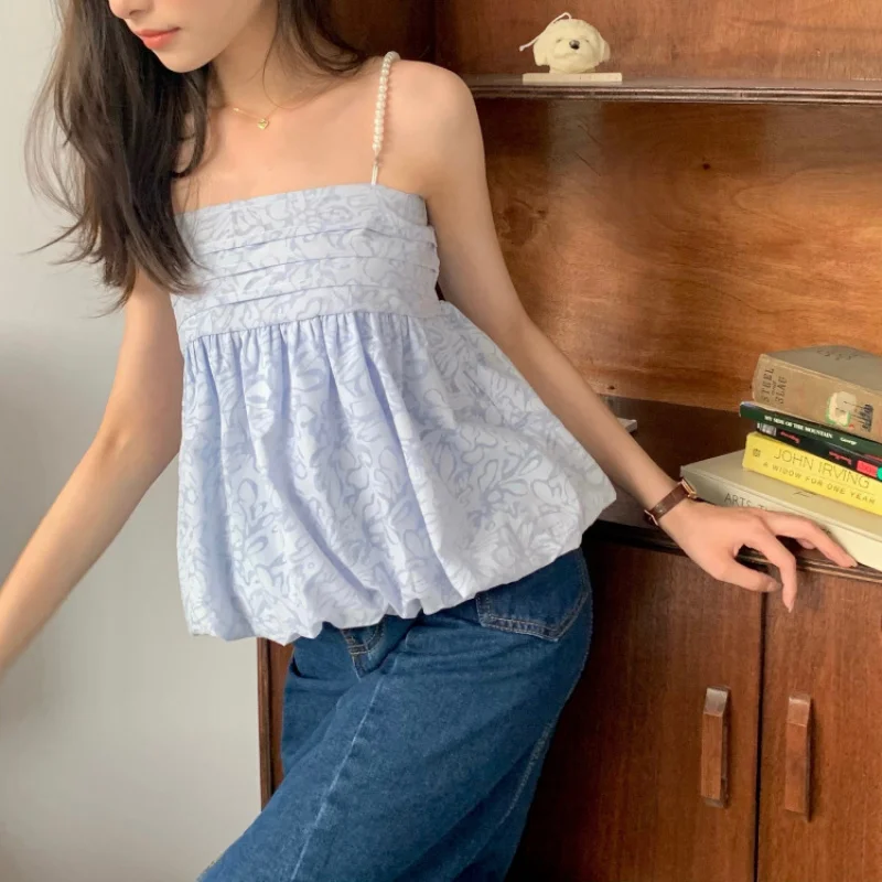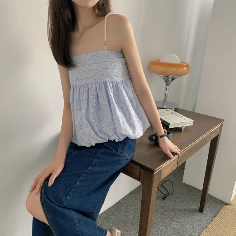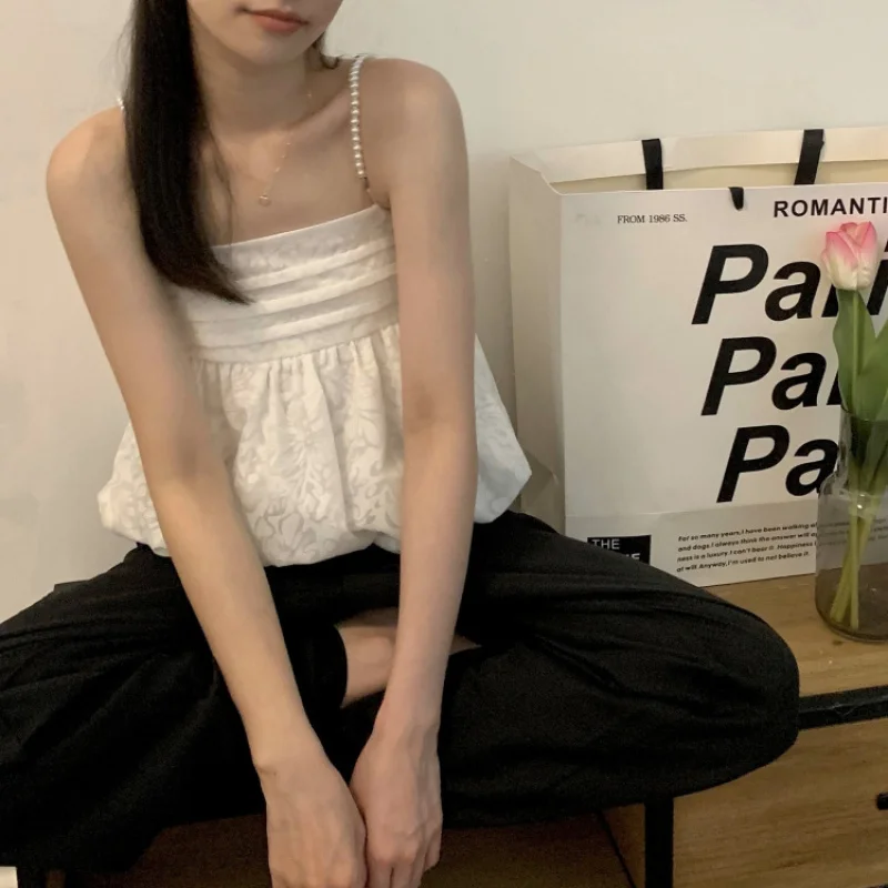 Korean Style Women Boluse Sexy Vest Young Girl Summer Fashion Club Party Tops 2021 New Casual Loose Sweet Boho Tee Female Cloth