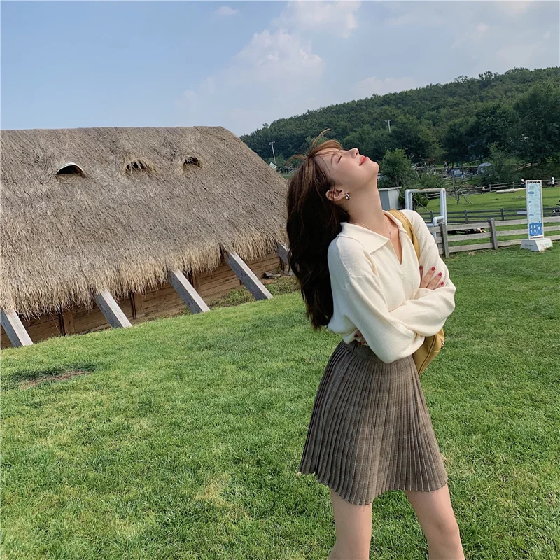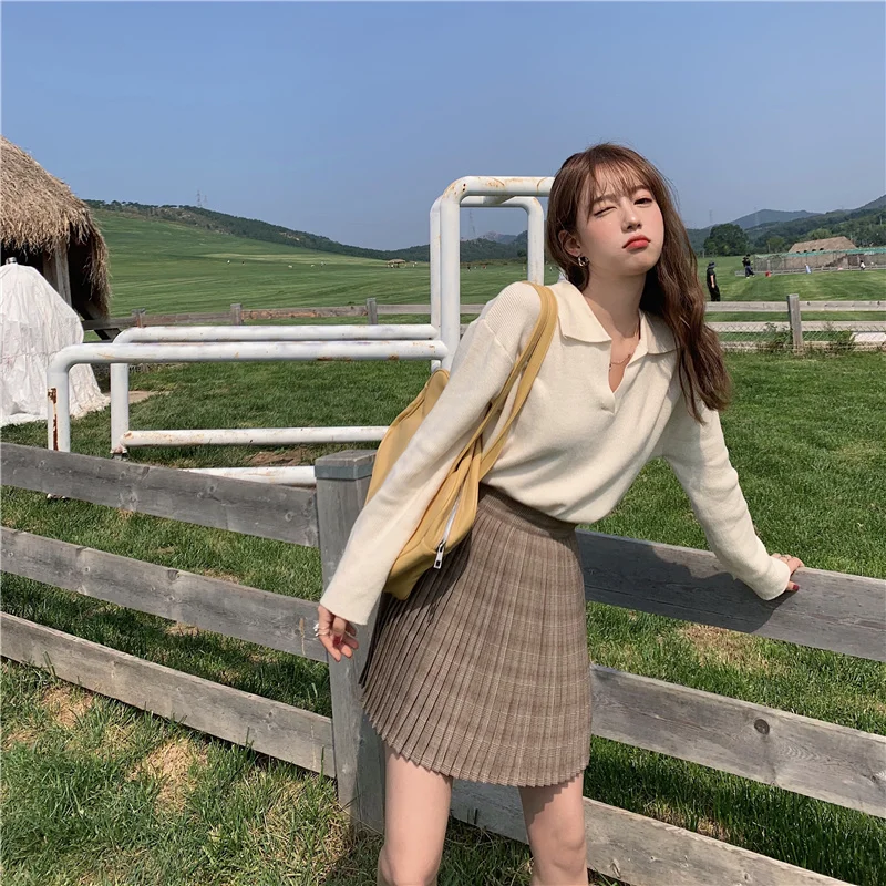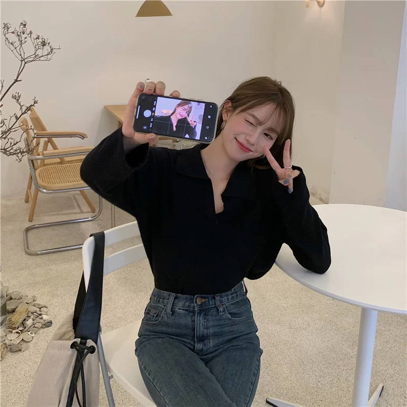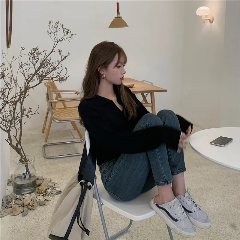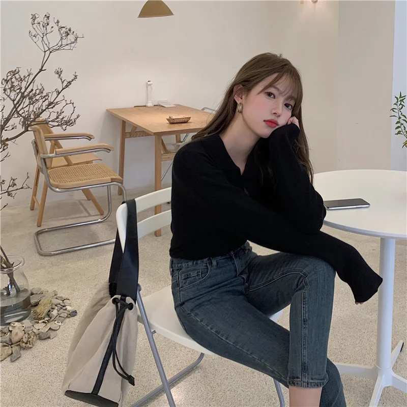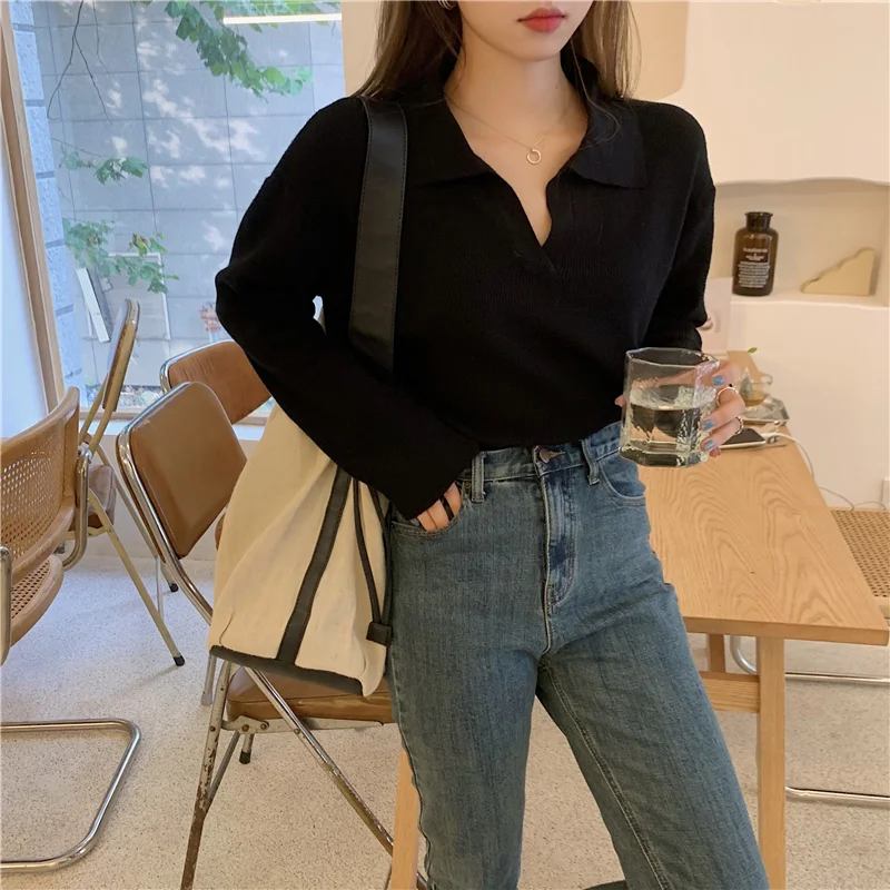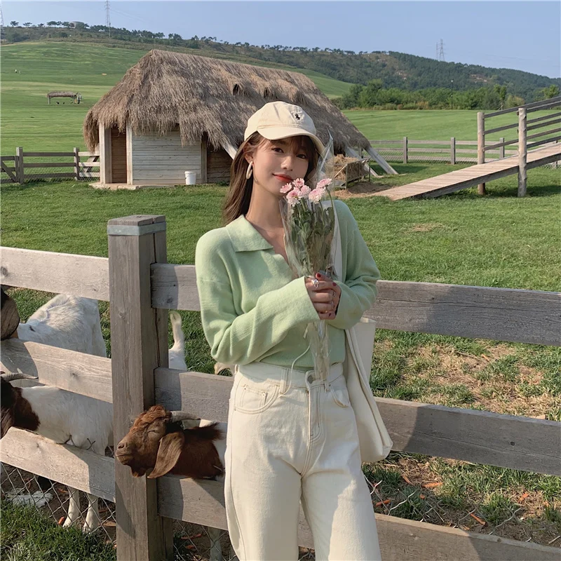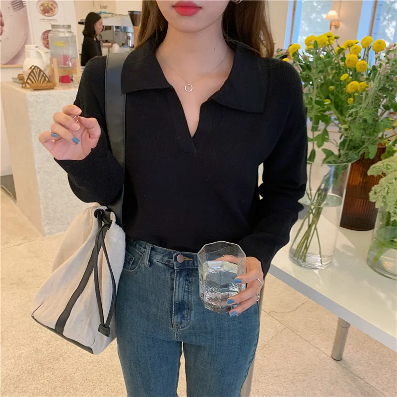 Lapel Striped Pullover Sweater Female Korean Spring Loose Student Soft Waxy Long Sleeve Sweater Top