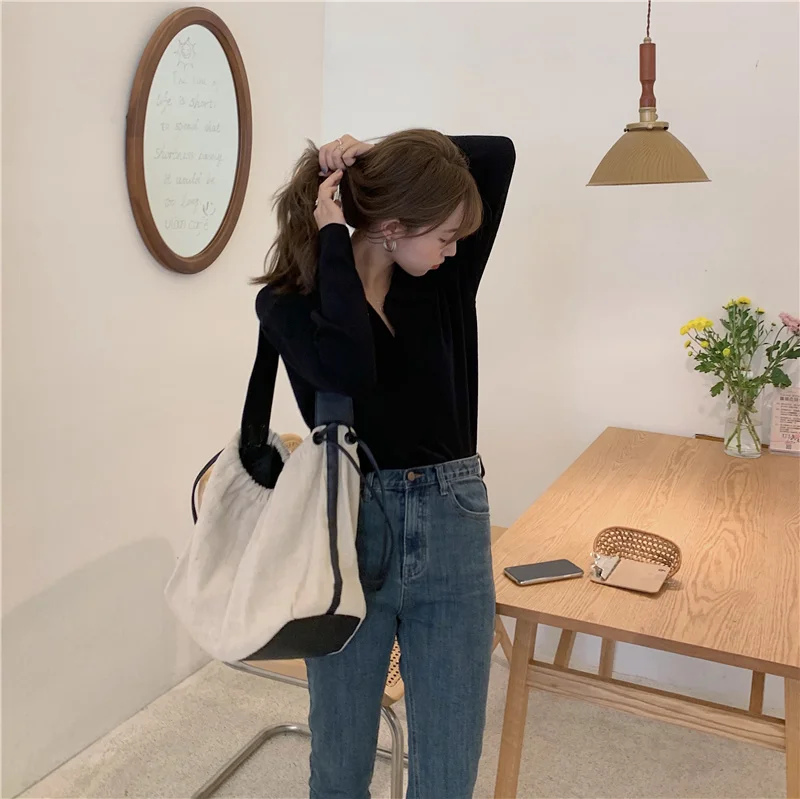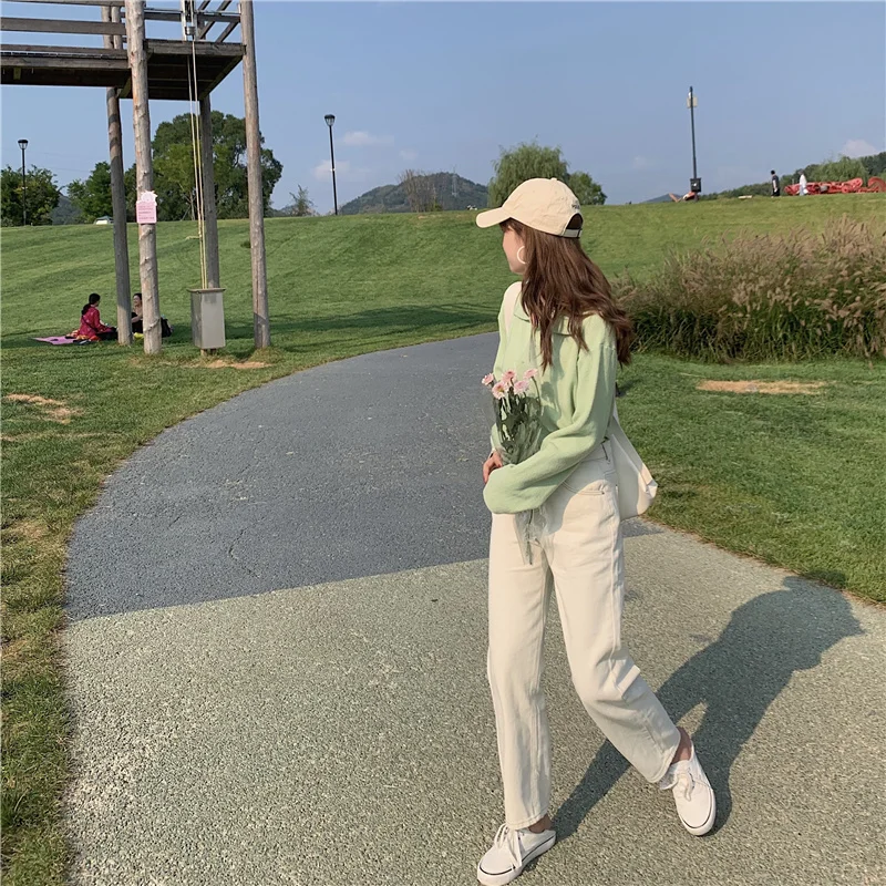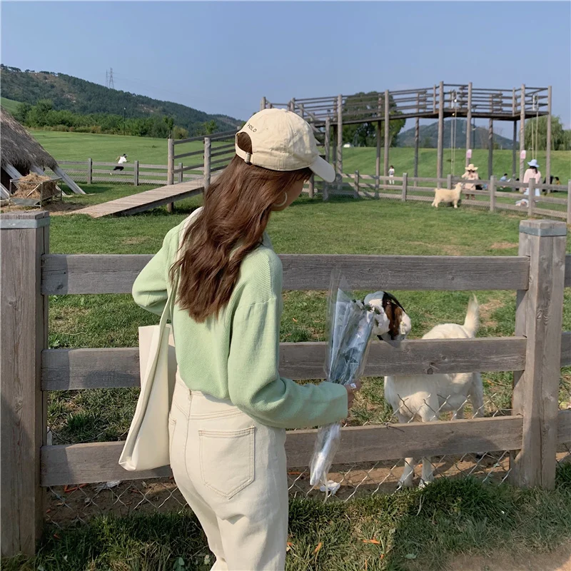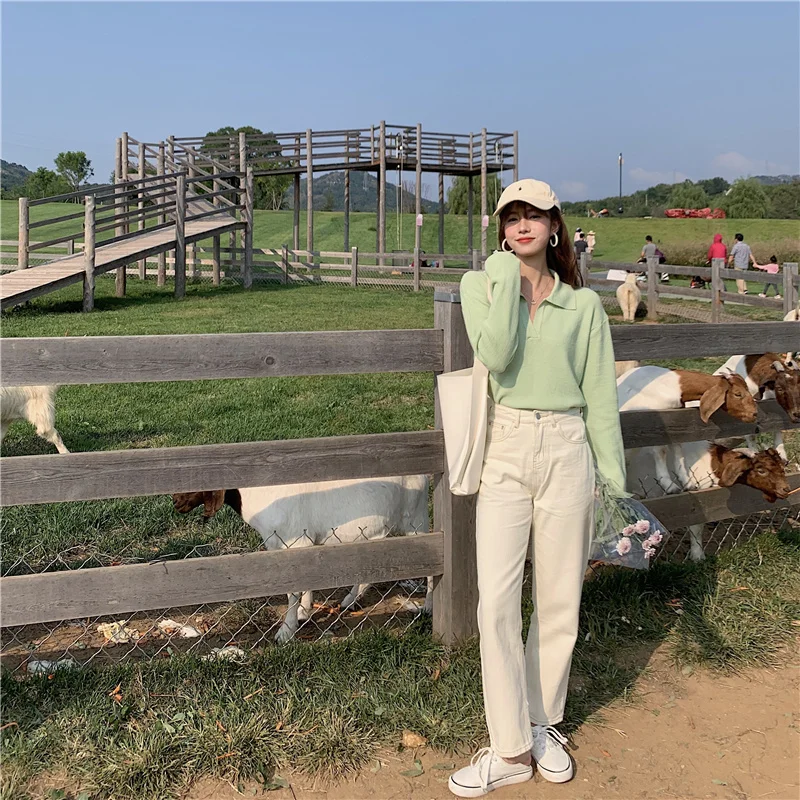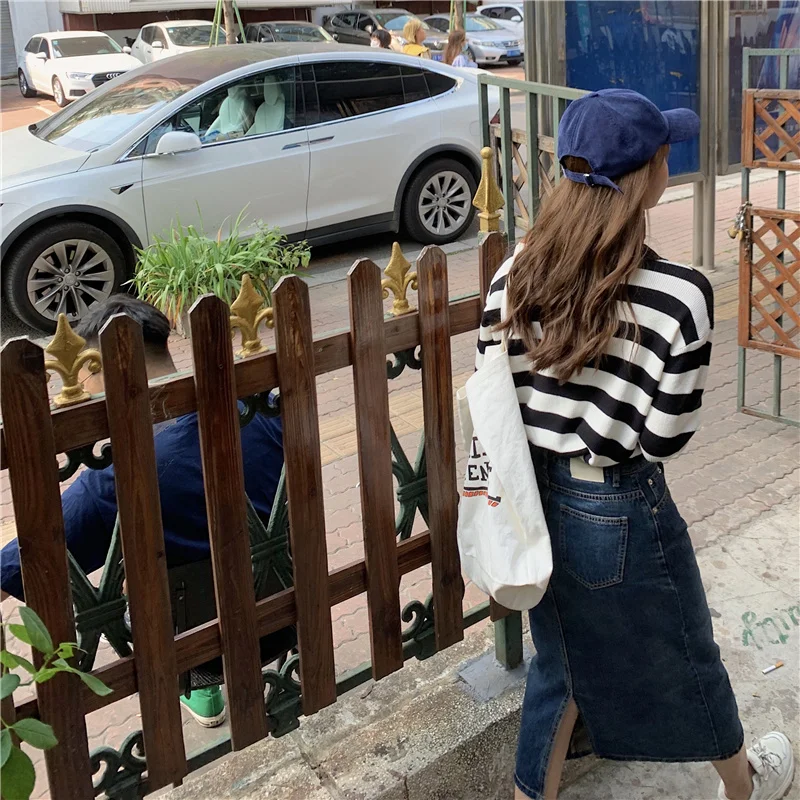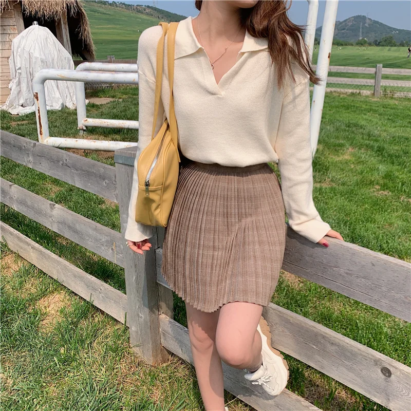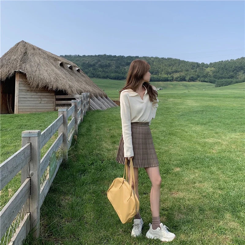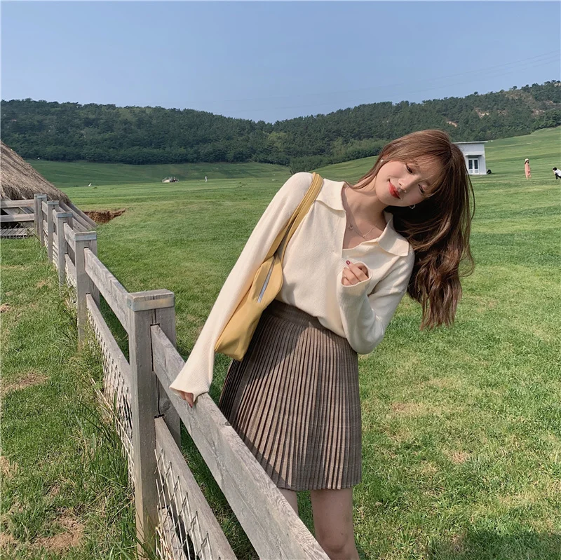 Lapel Striped Pullover Sweater Female Korean Spring Loose Student Soft Waxy Long Sleeve Sweater Top
