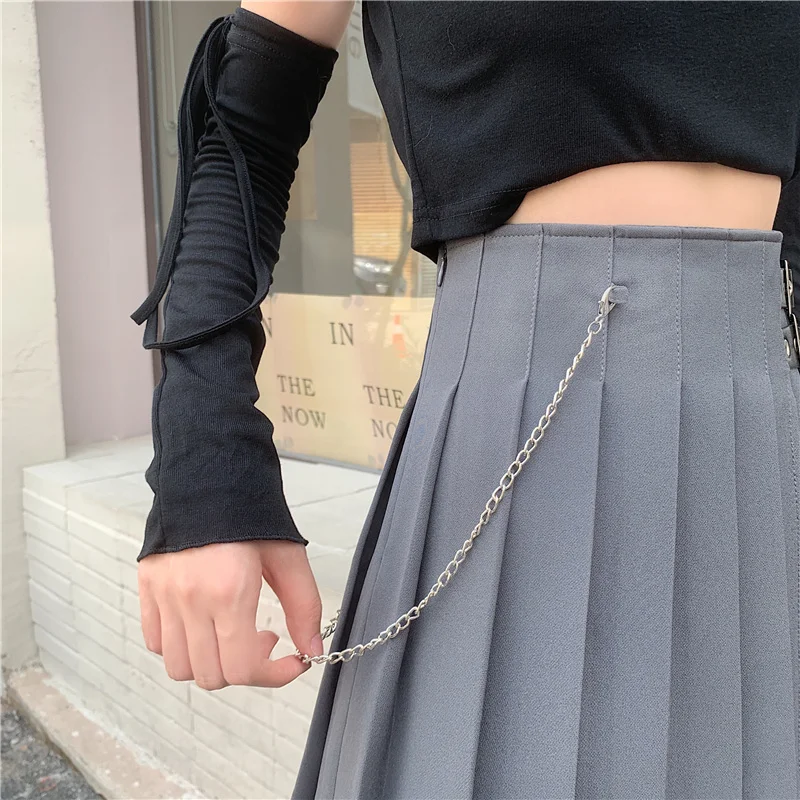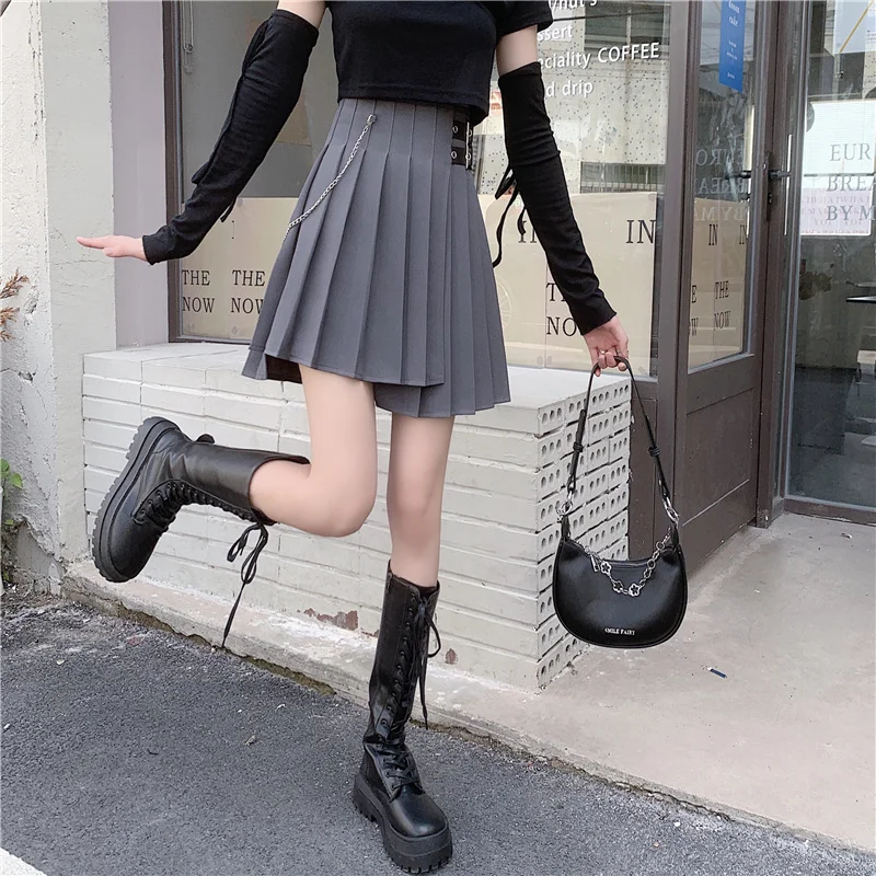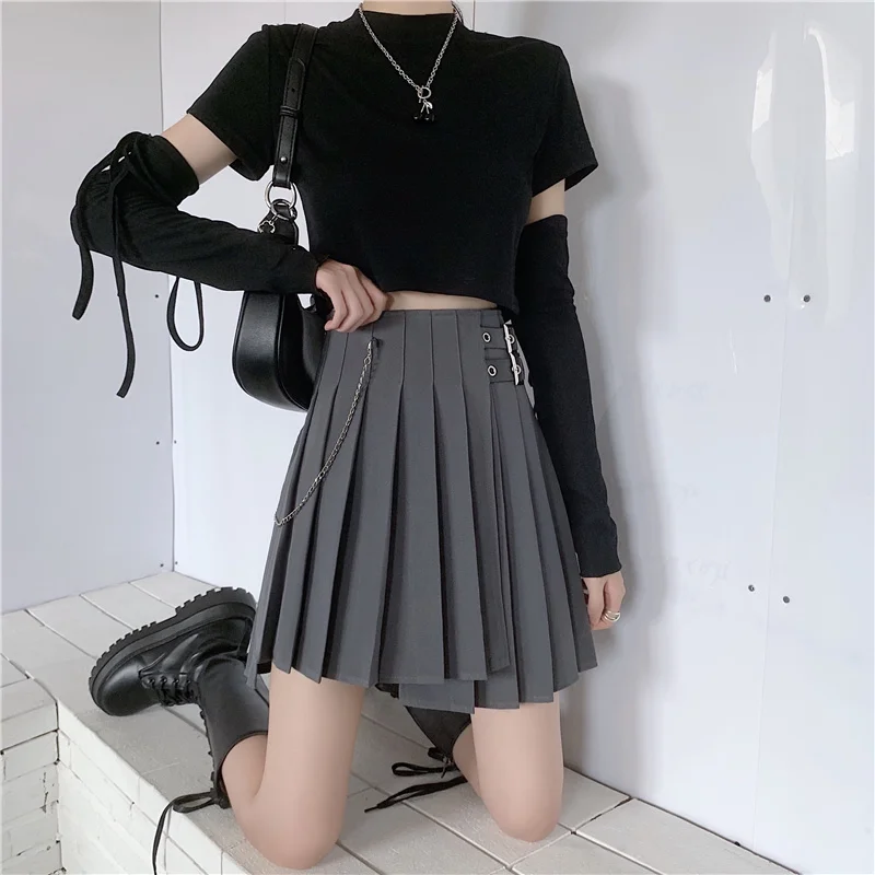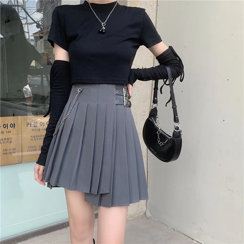 Large Size Gray Pleated Skirt for Plump Girls Autumn Skirt Women's High Waist Skirt Irregularly Slimming A- line Skirt