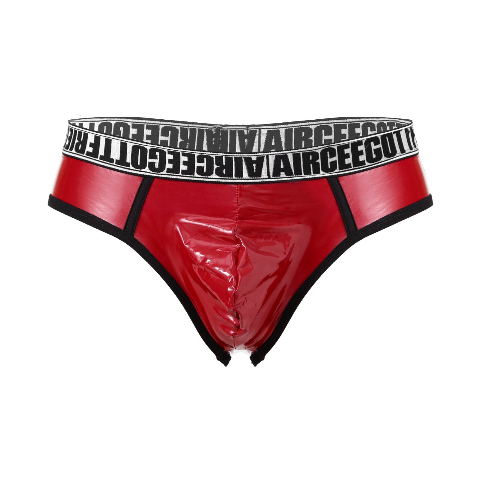 Men Letter Print Elastic Waistband Briefs Underwear Low Waist Bulge Pouch Faux Leather Underpants.