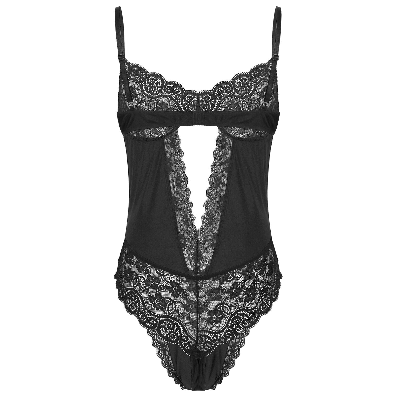 Men See-through Lace Patchwork Cutout Bodysuit Backless Leotard Sissy Nightwear.