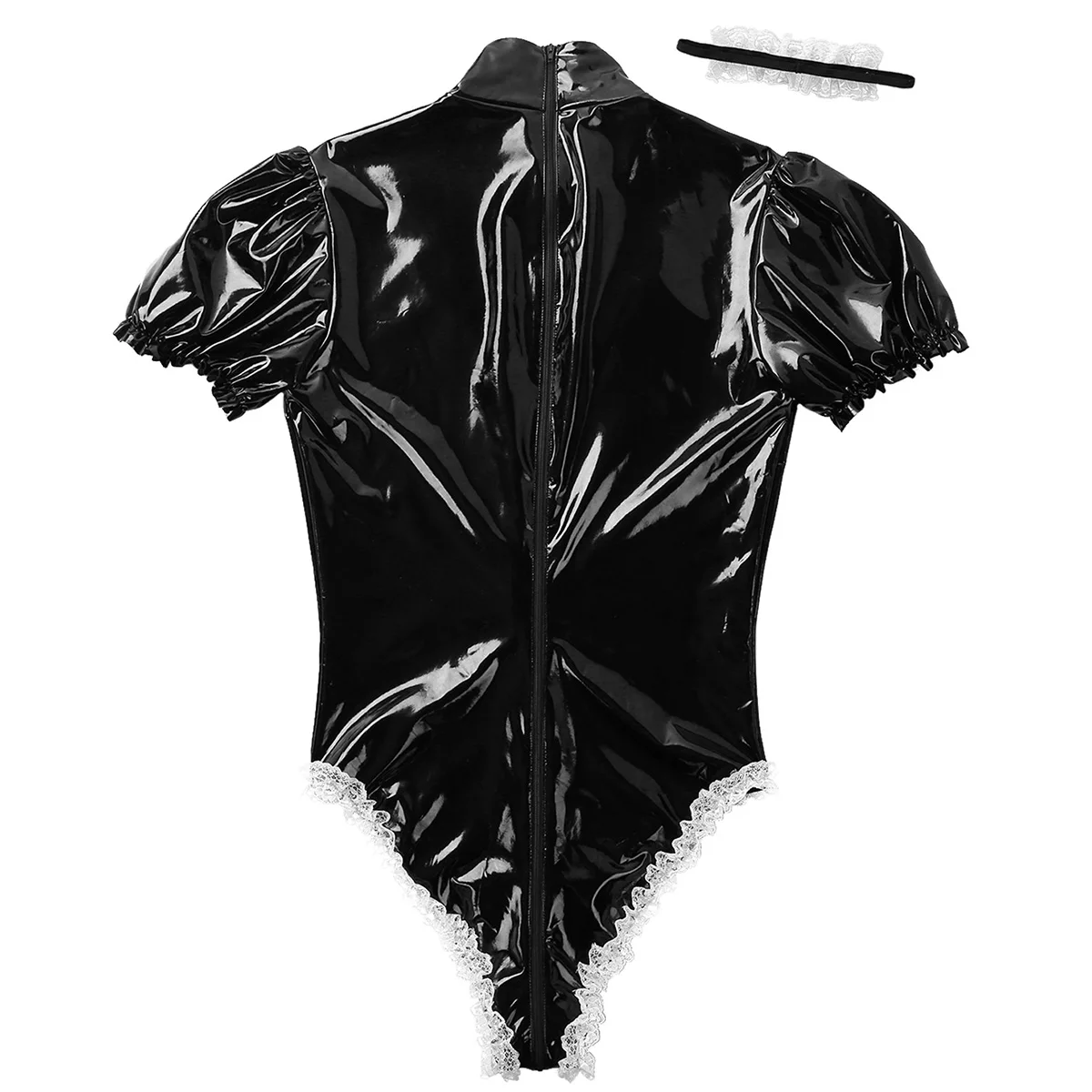 Men Adults Sissy Maid Costumes Wetlook Maid Leotard Bodysuit Men Amine Cosplay Costume Waitress Maid Party Clubwear Costumes