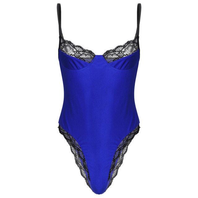 Men Lace Trimming Bodycon Bodysuit Sissy Unlined Wireless Bra Leotard.