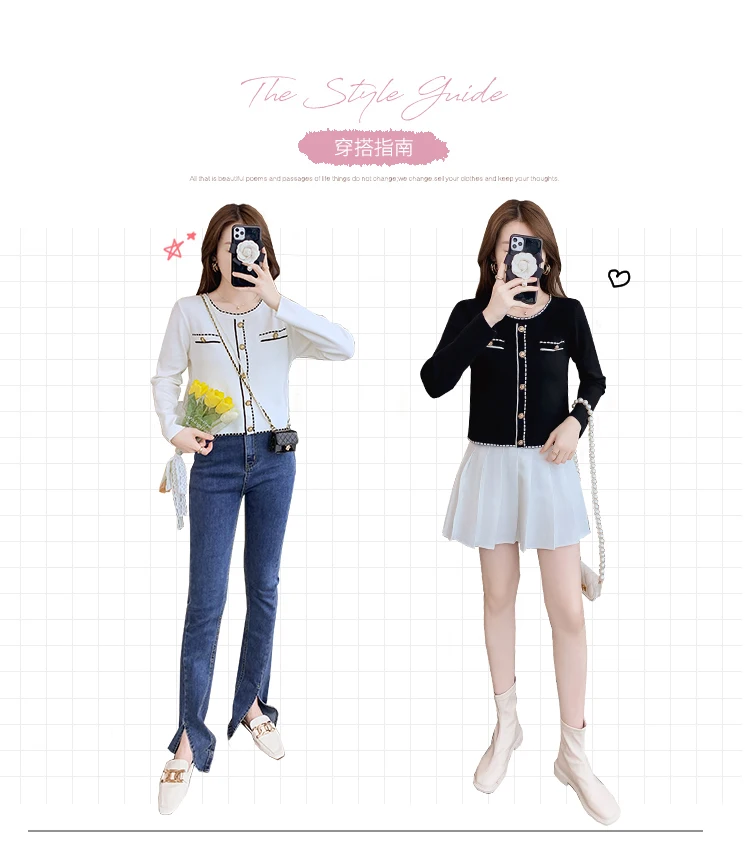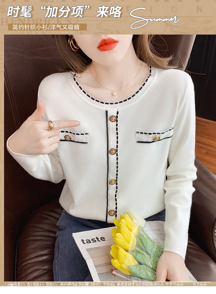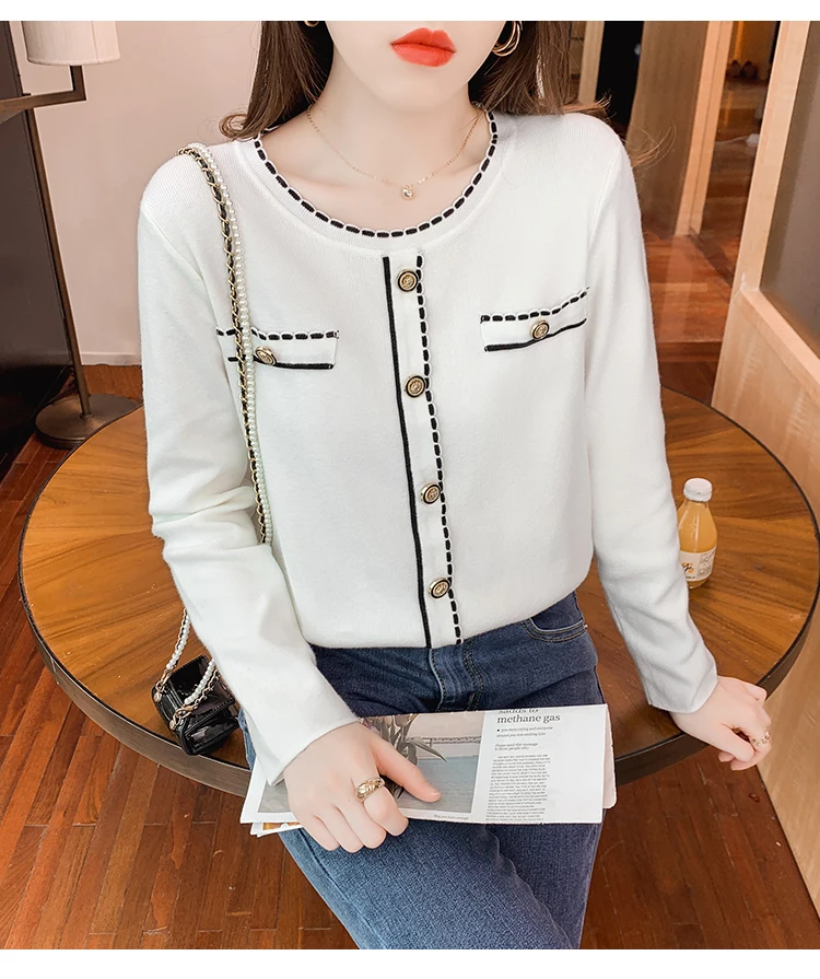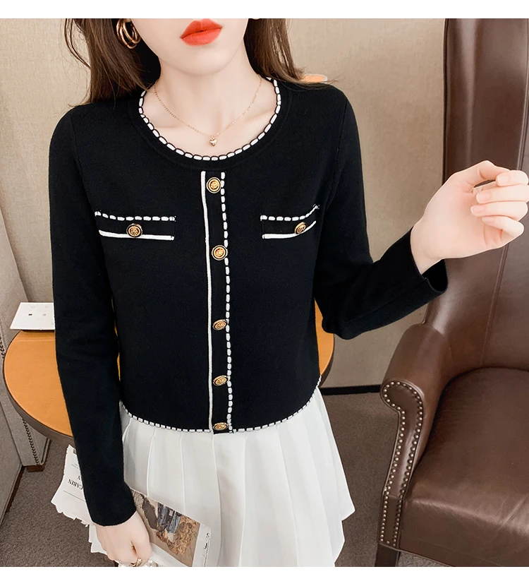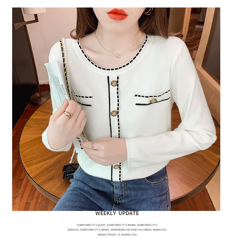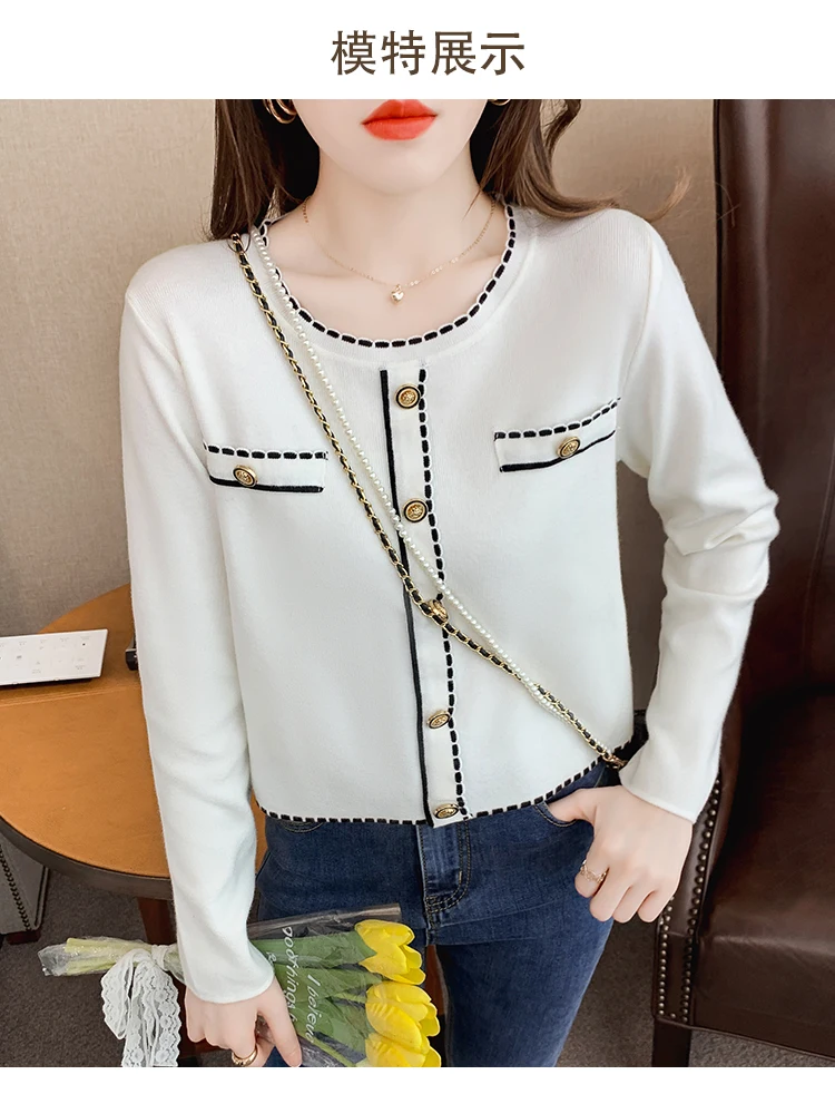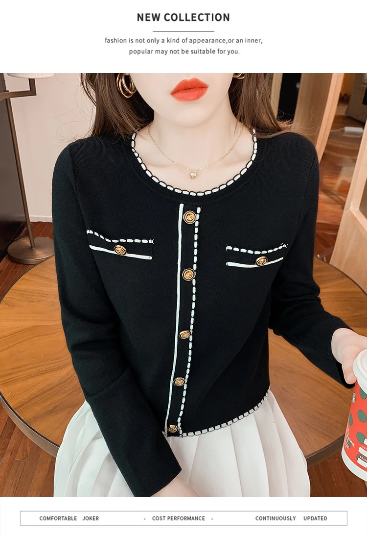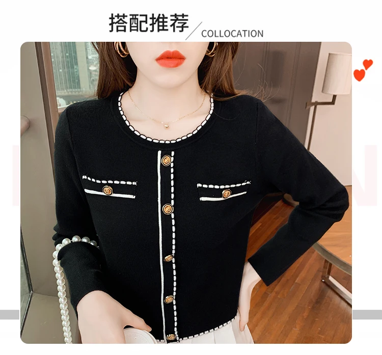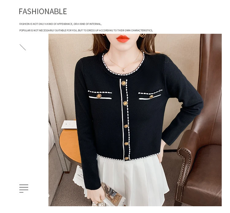 New 2021 Autumn Winter Women Jacket Korean Version Fashion Casual Long Sleeve O-Neck Short Coat Knitted Sweater