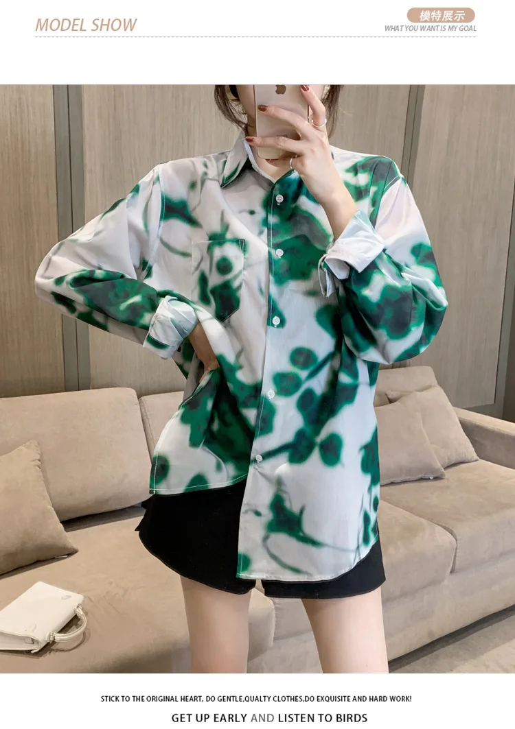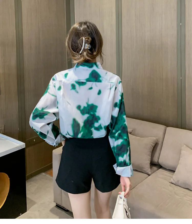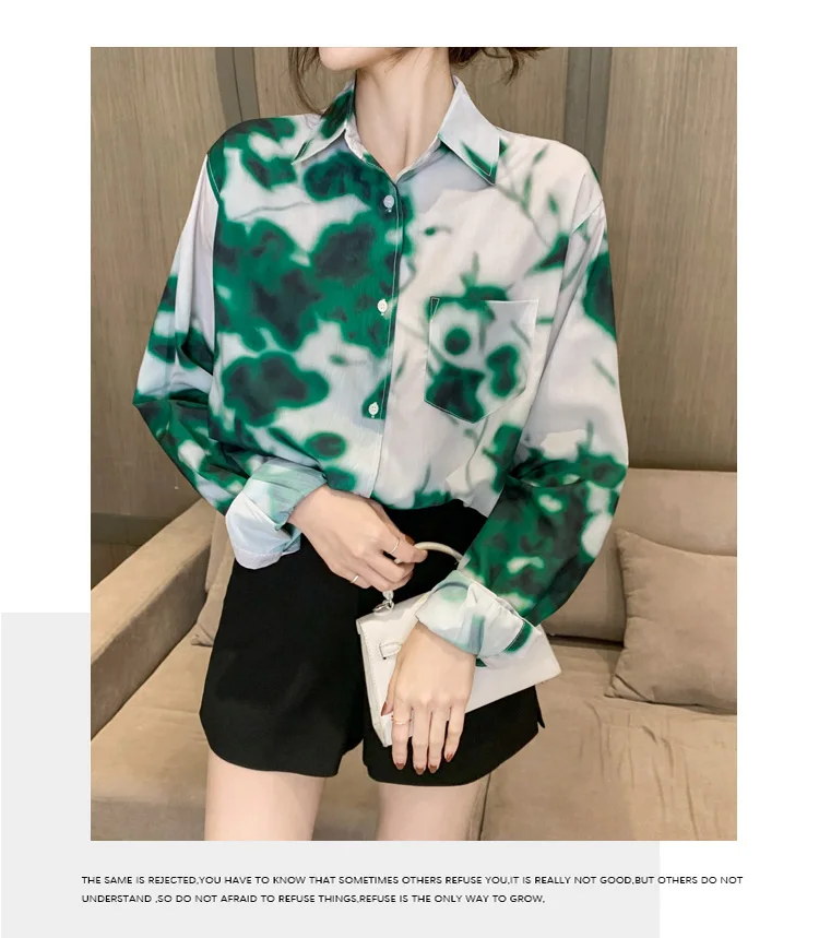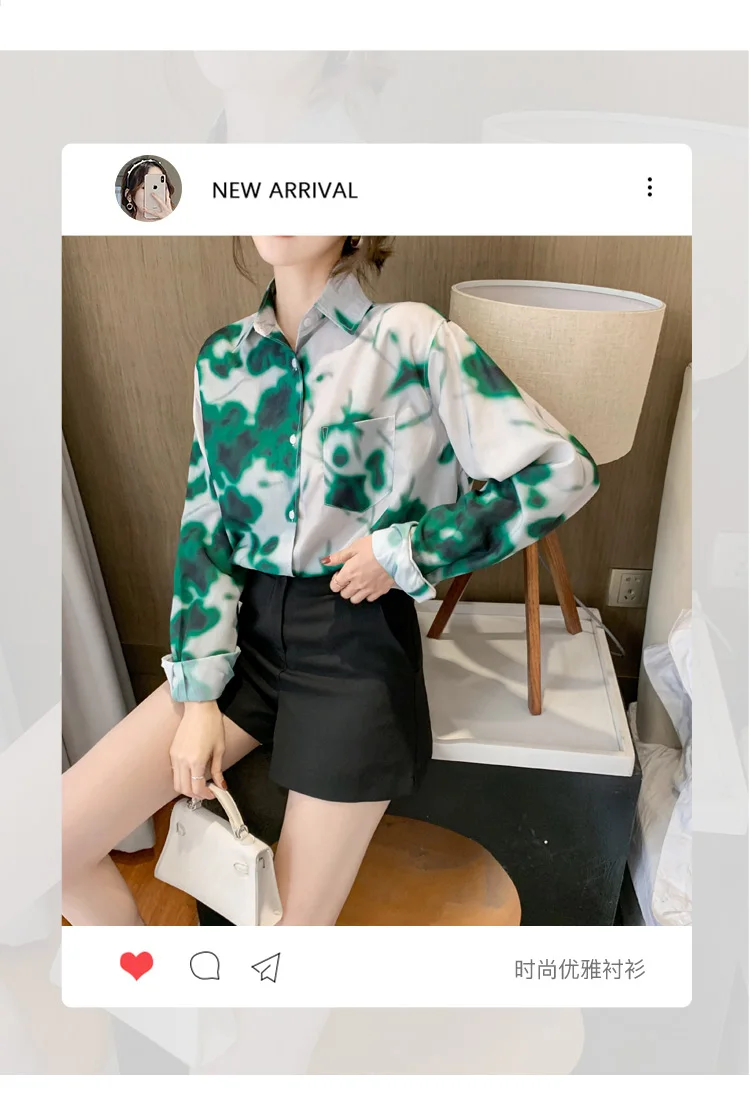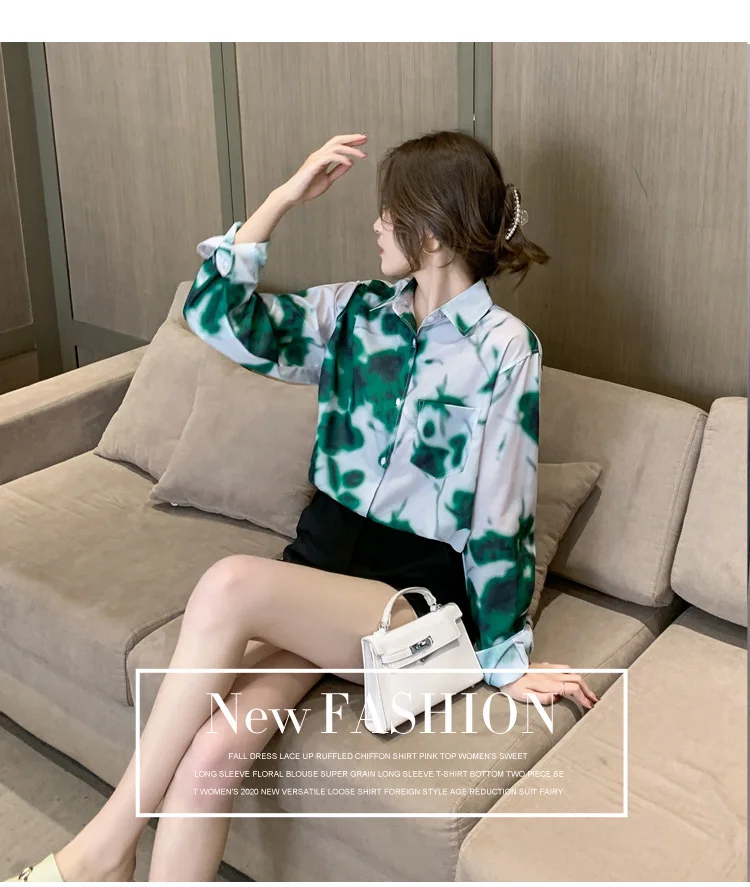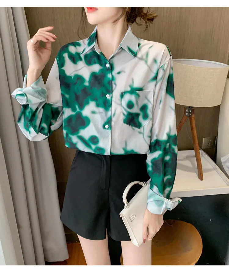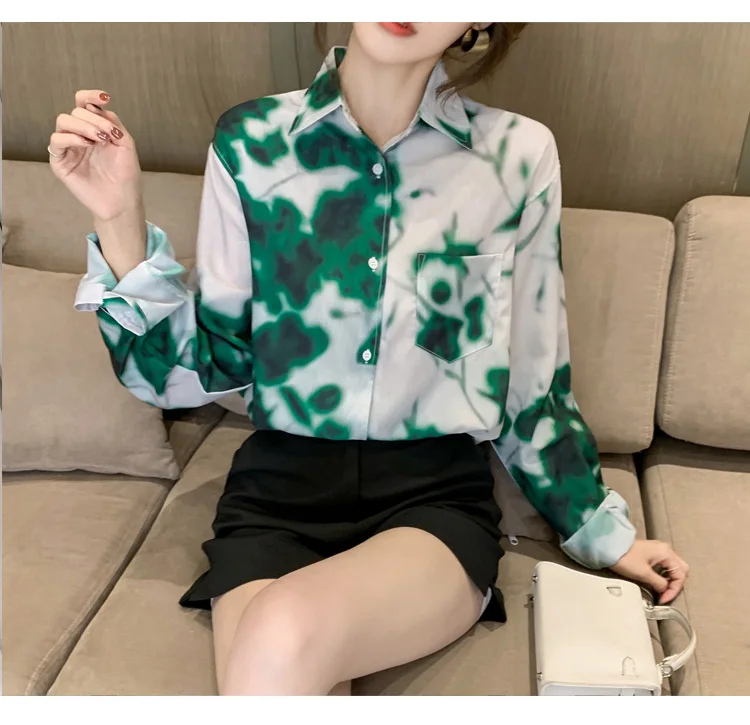 New 2021 Autumn Women Chiffon Shirt Fashion Turn Down Collar Long Sleeve Loose Print Blouse For Women Clothing