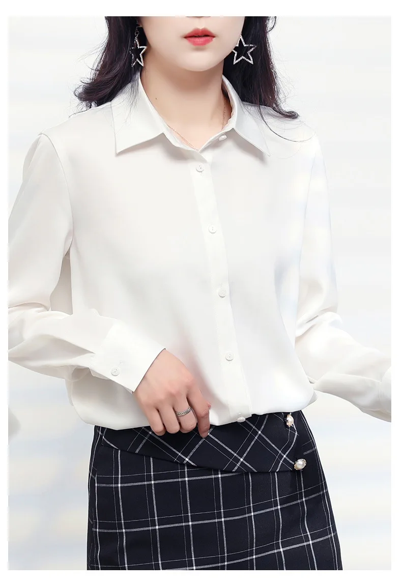 New 2021 Spring Autumn Long Sleeve Women Blouse Shirt Fashion Casual Solid Color Chiffon Blouse Office Lady Shirt