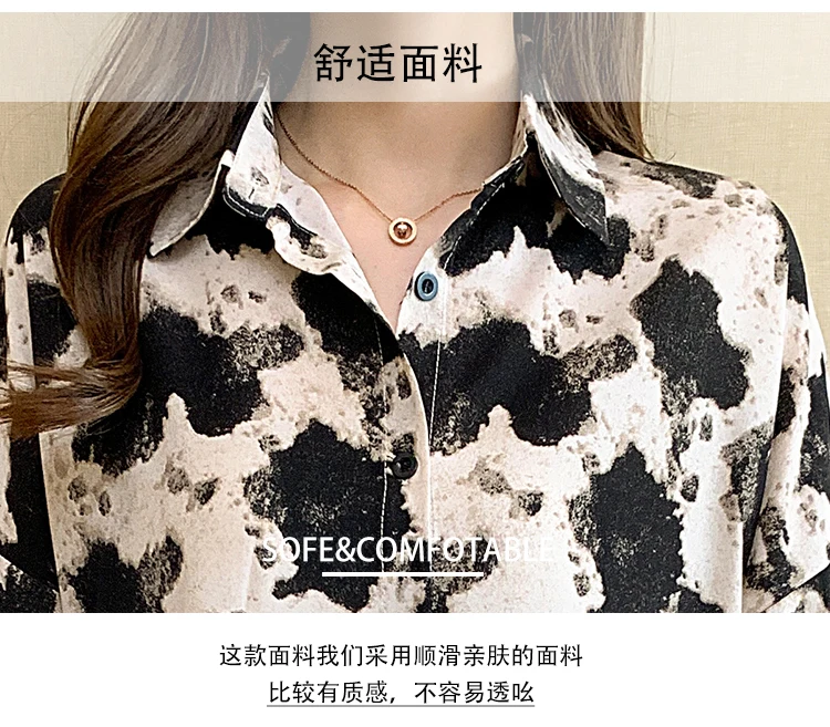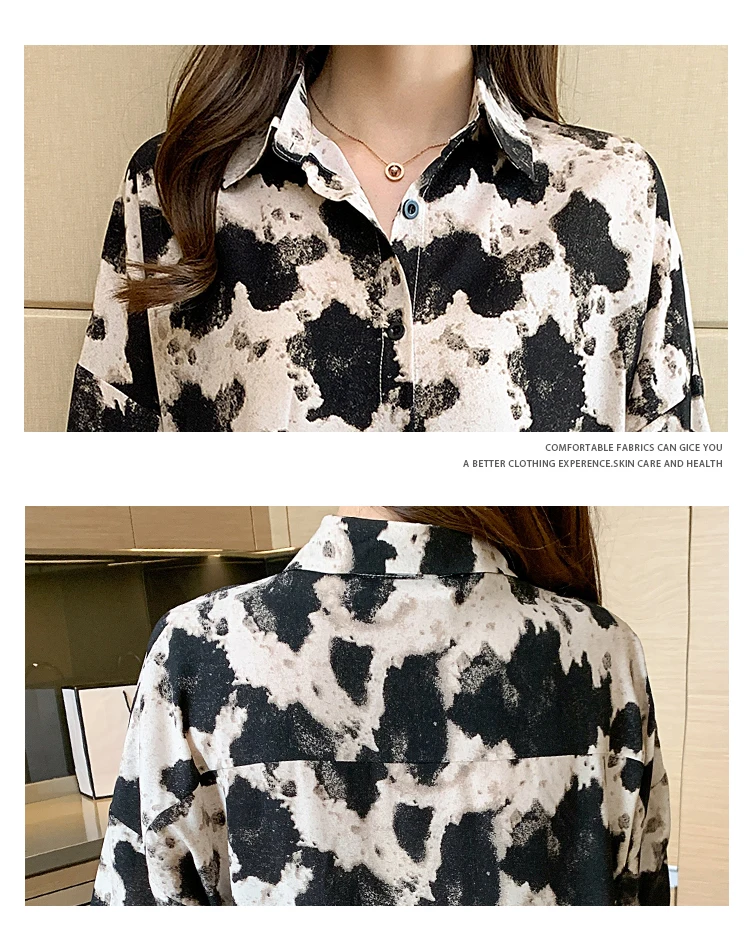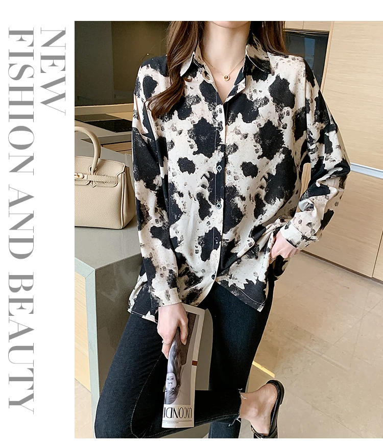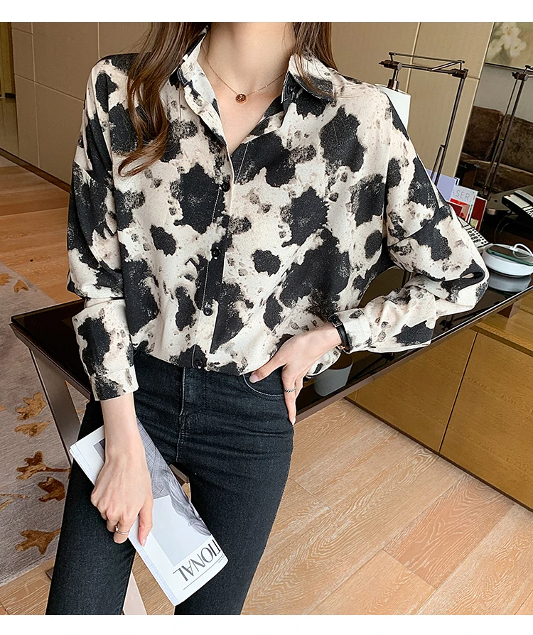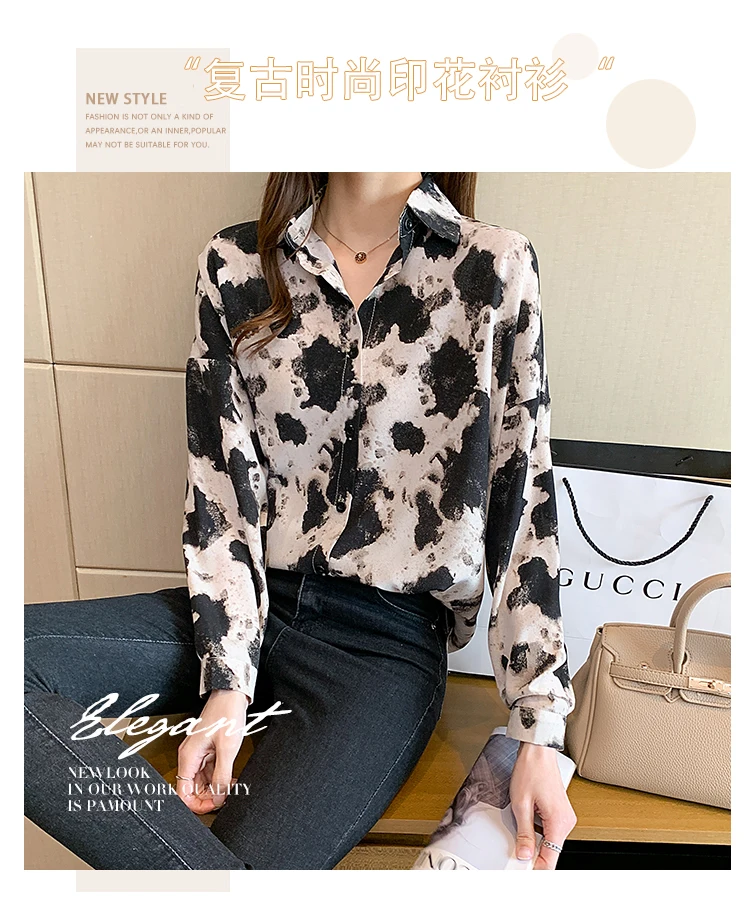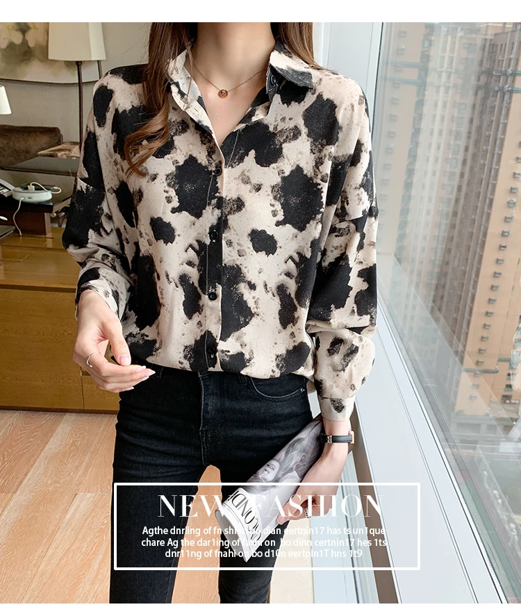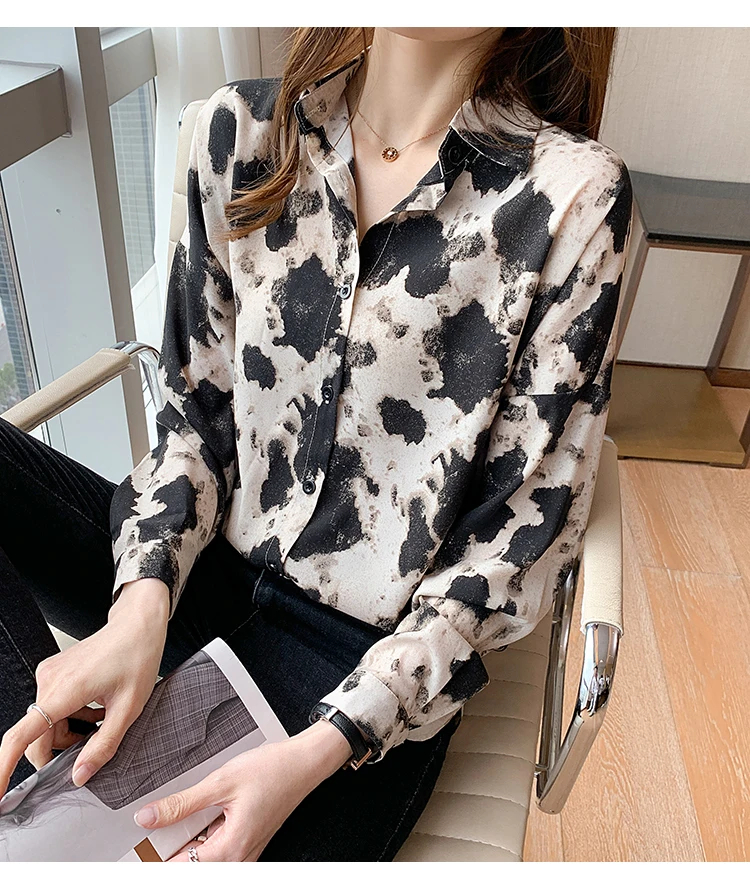 New 2021 Spring Long Sleeve Women's Shirt Fashion Casual Print Loose Chiffon Blouse Elegant Loose Office Lady Tops