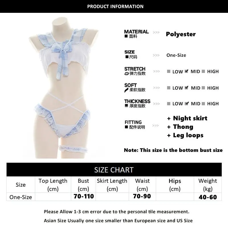 Plaid sailor suit maid cosplay uniform maid costume sexy chiffon bow pajamas