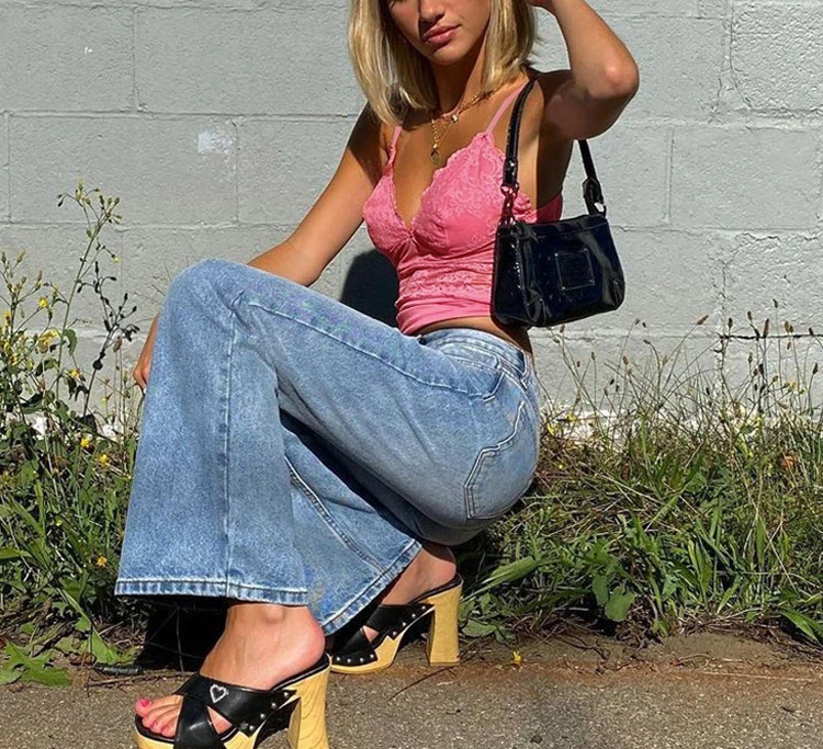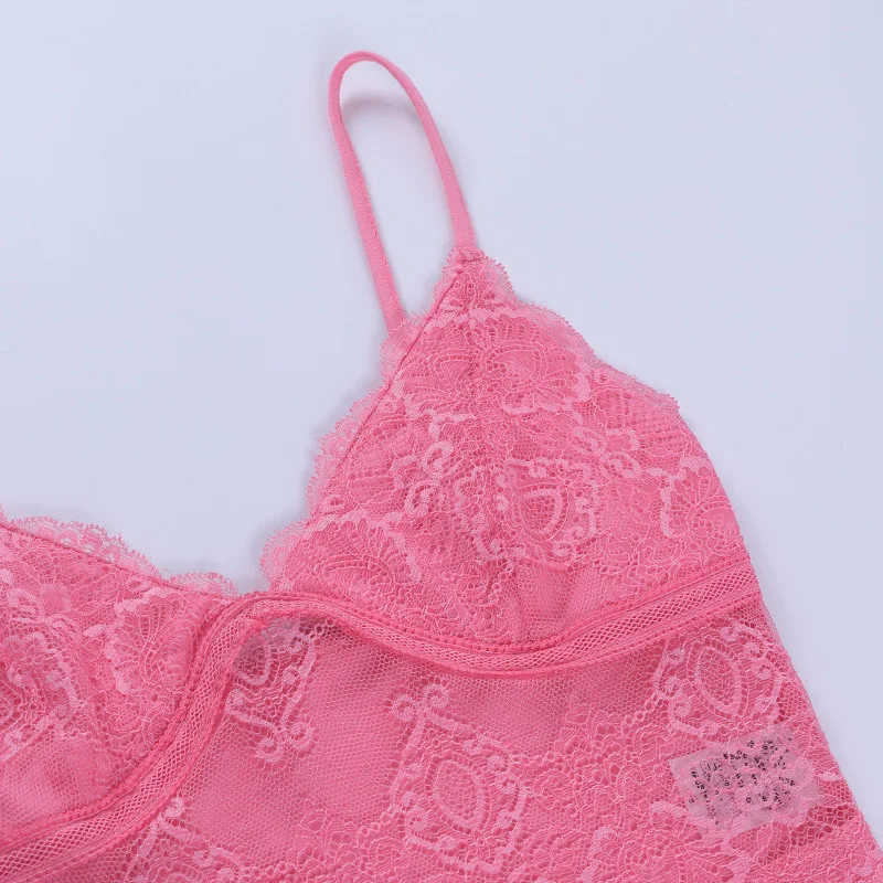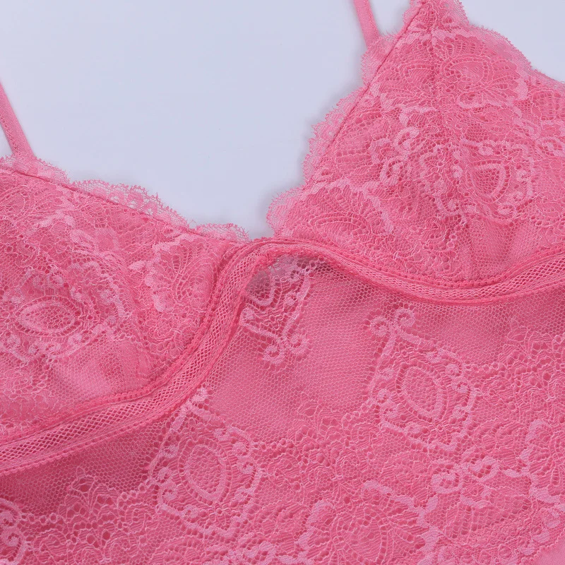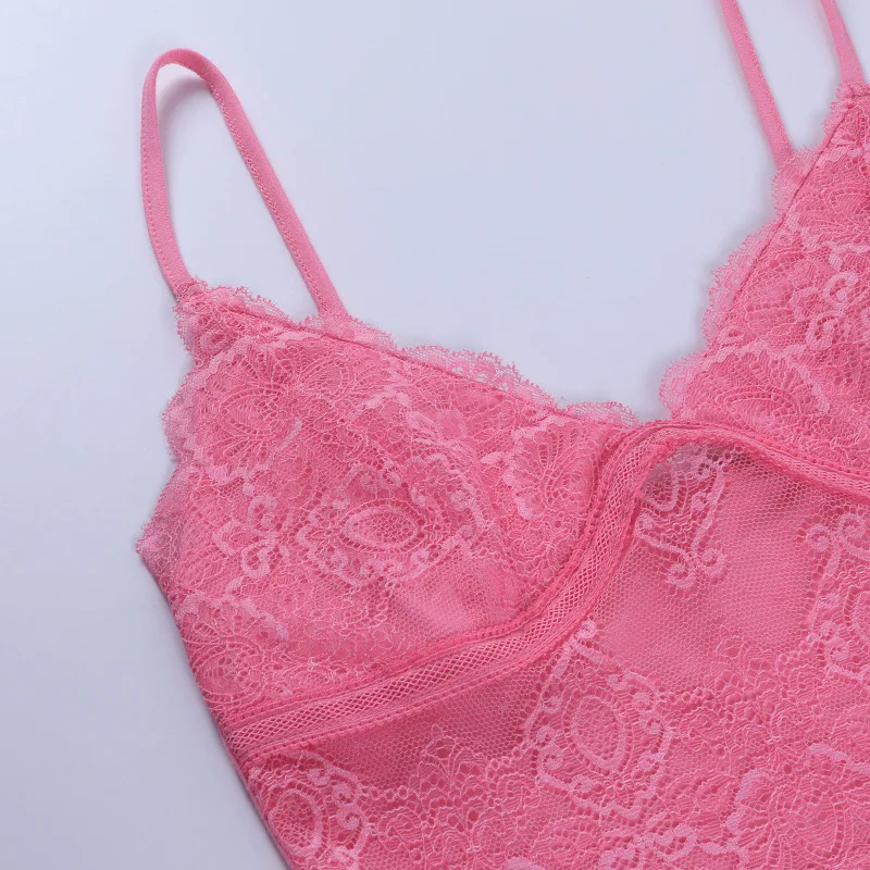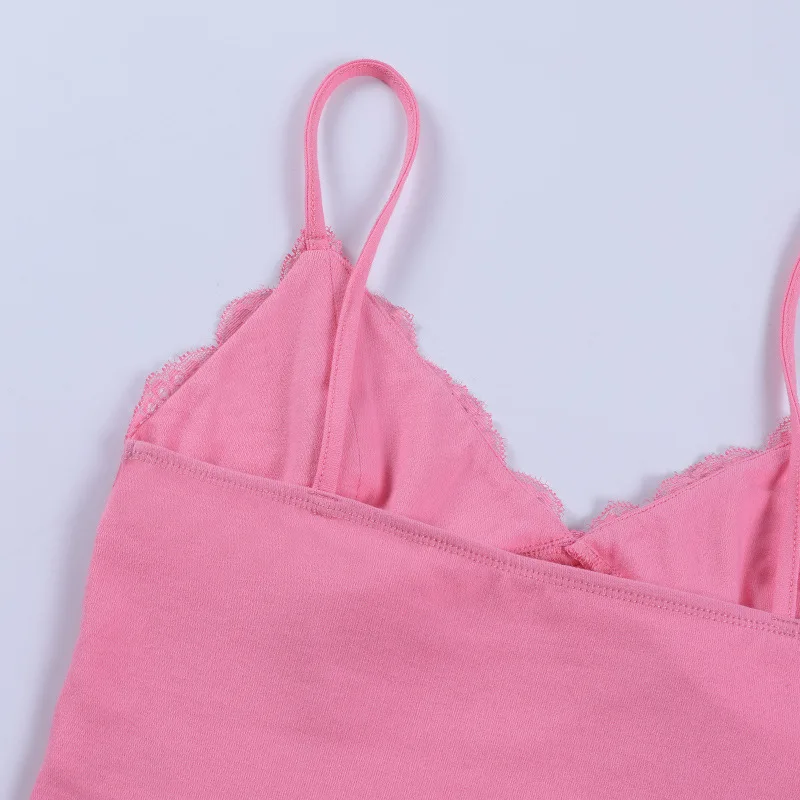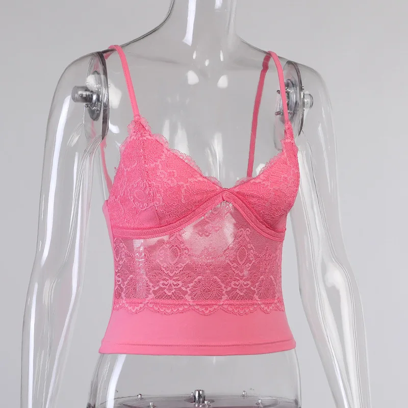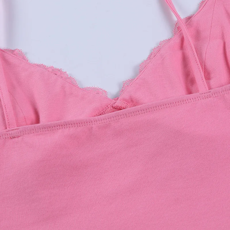 Pink Sleeveless Crop Top Sexy Clubwear Women Spaghetti Strap Backless V Neck Lace Camisole Femme Slim Club Party Tank Tops 2021