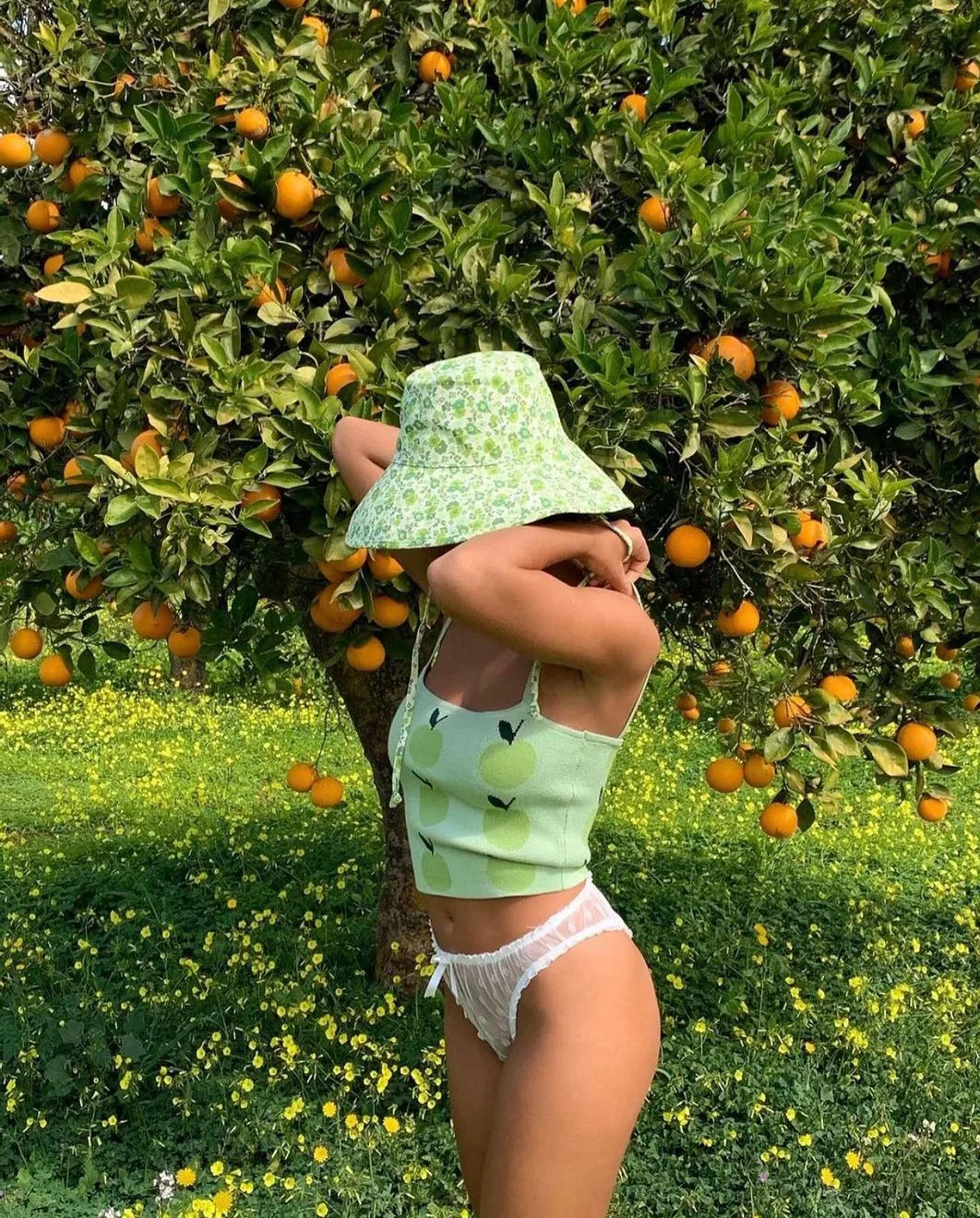 Print Apple Sleeveless Sexy Cami Top Women Y2K Aesthetic Backless Spaghetti Strap Ribbed Knit Crop Top Party Camisole Summer