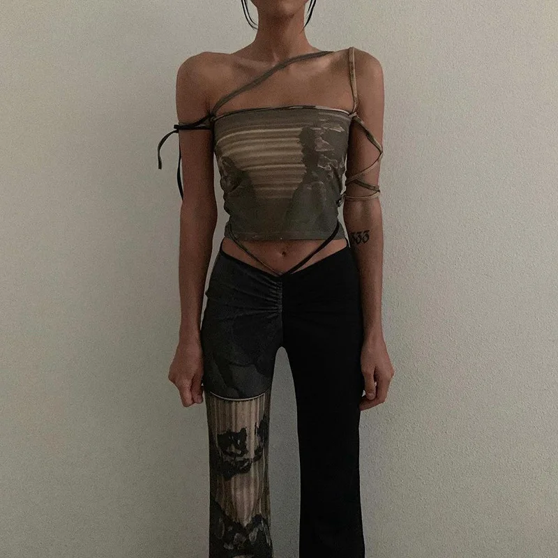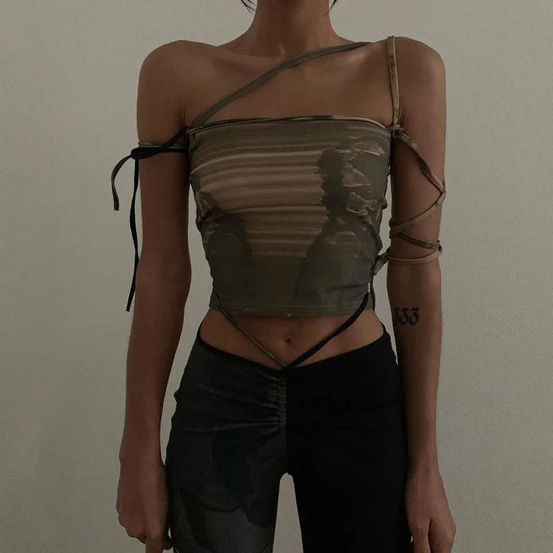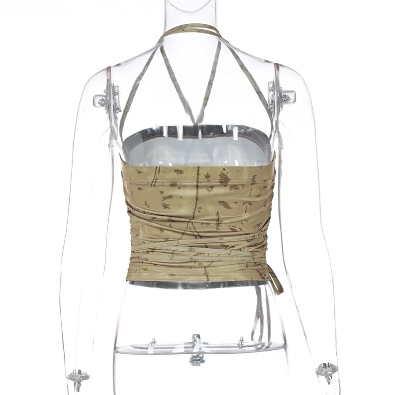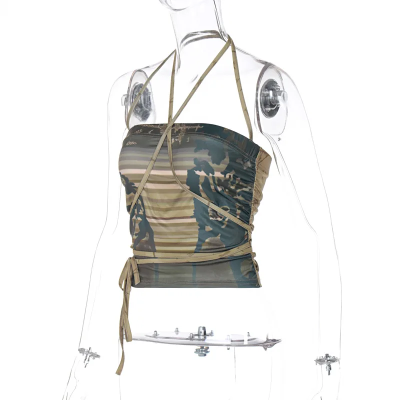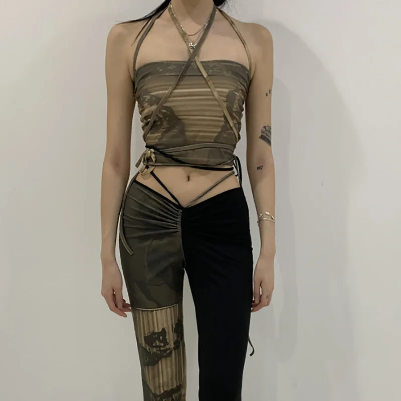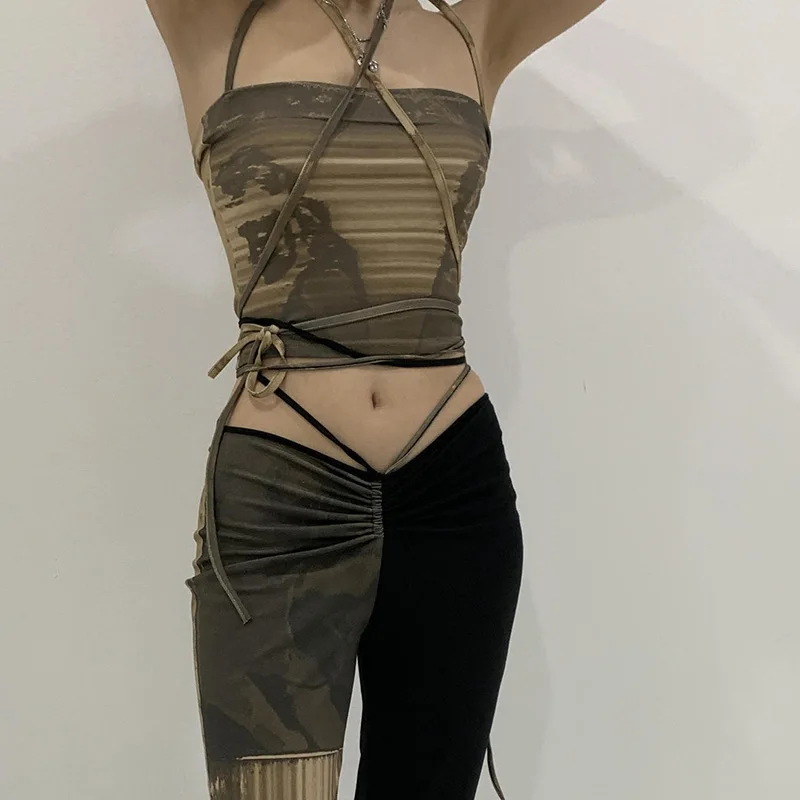 Punk Gothic Camis Grunge Women Crop Tops Y2K Lace Up Sexy Cute Summer Halter Brown Camis Casual Female Sleeveless 90s Corset Top