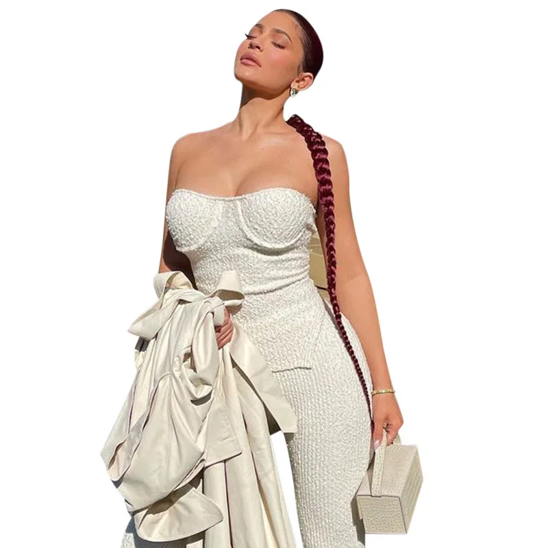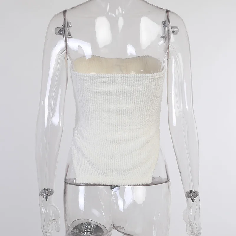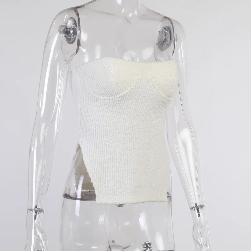 Ribbed Sexy Strapless Cut Out Split Crop Tops Women Knitted Backless Cropped Feminino Bustier Corset Top 2021 Summer Streetwear