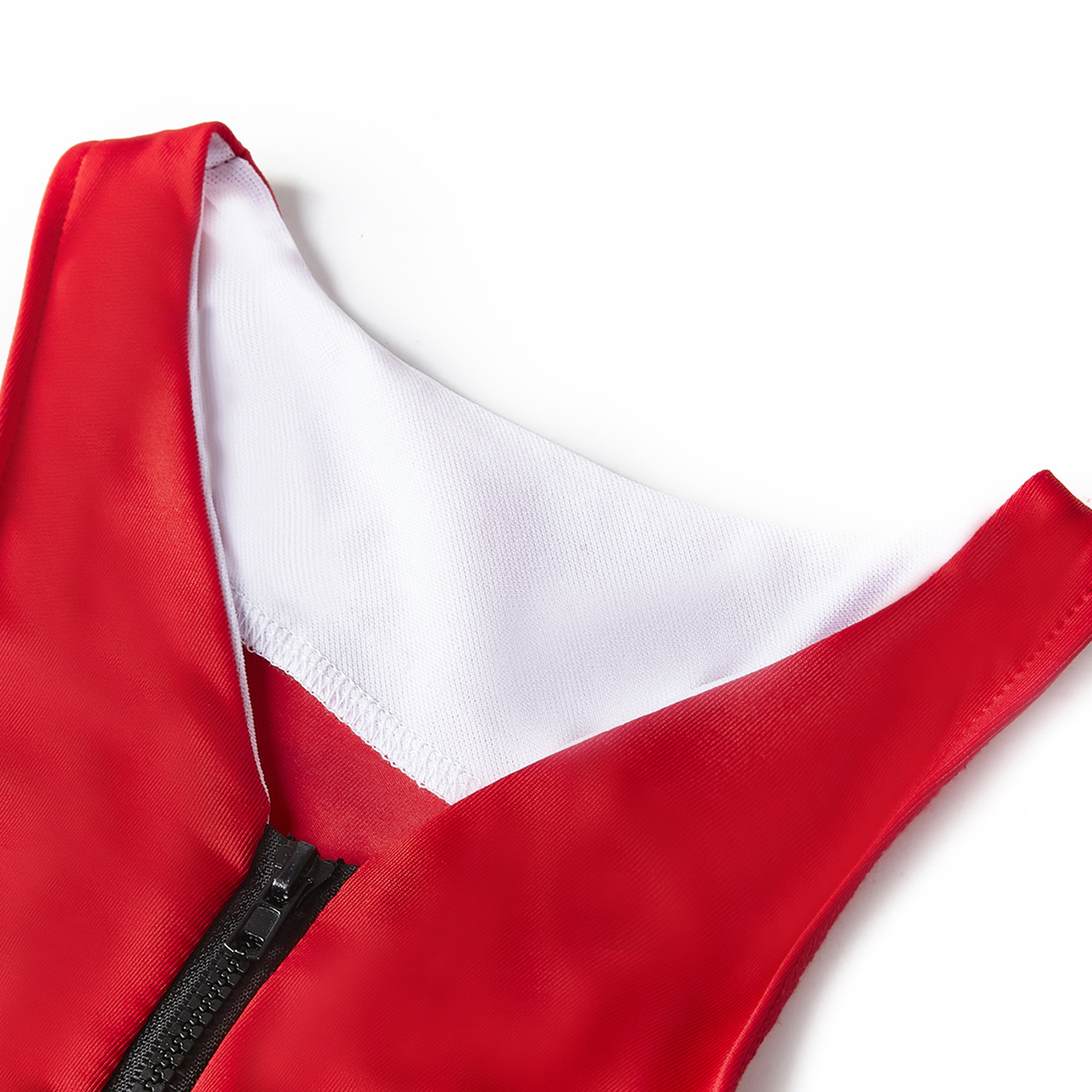V neck, sleeveless, front zipper closure, hollow out mesh at waist, makes you more attractive.