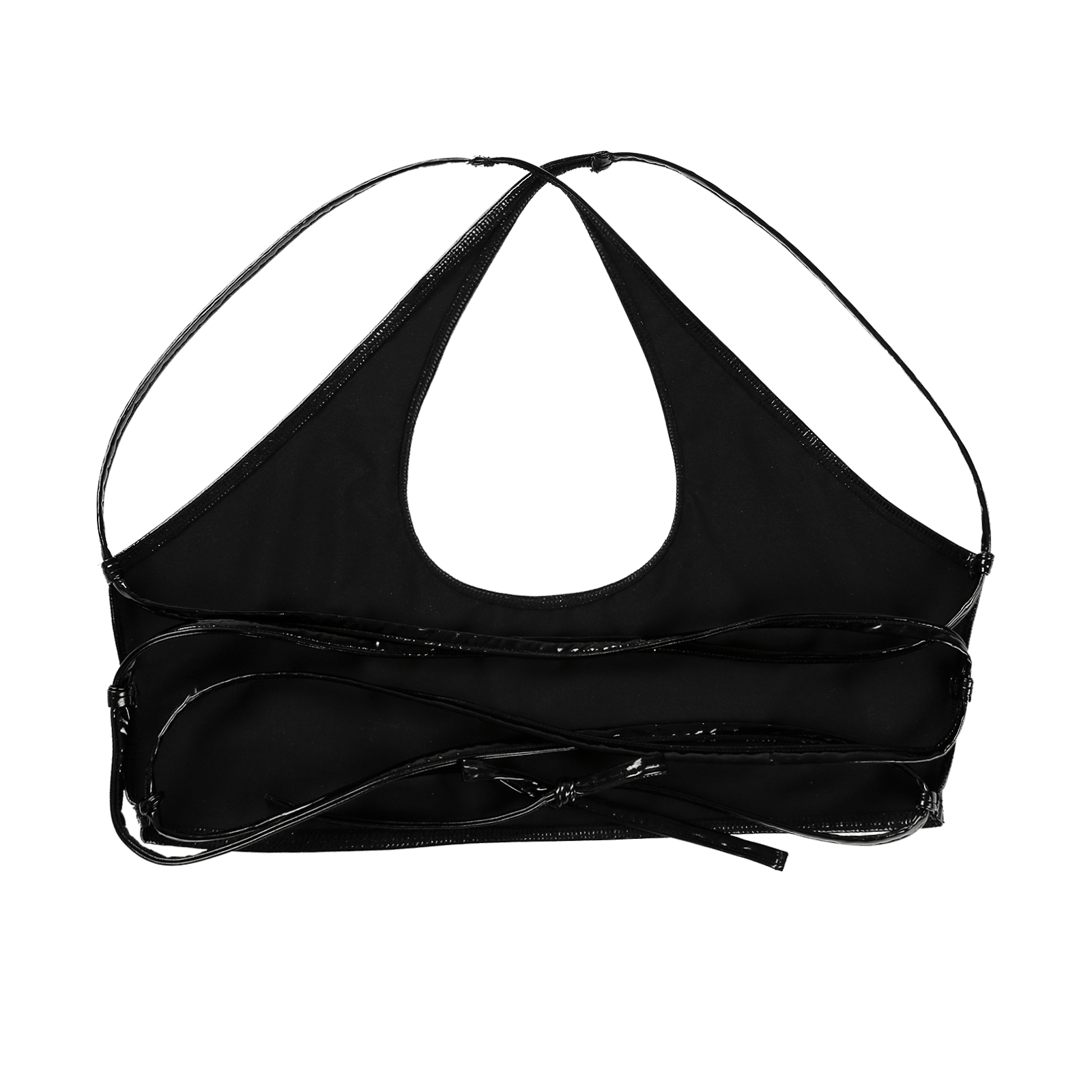 Women Criss Cross Keyhole Backless Crop Top Lace-up Back Patent Leather Camisole.