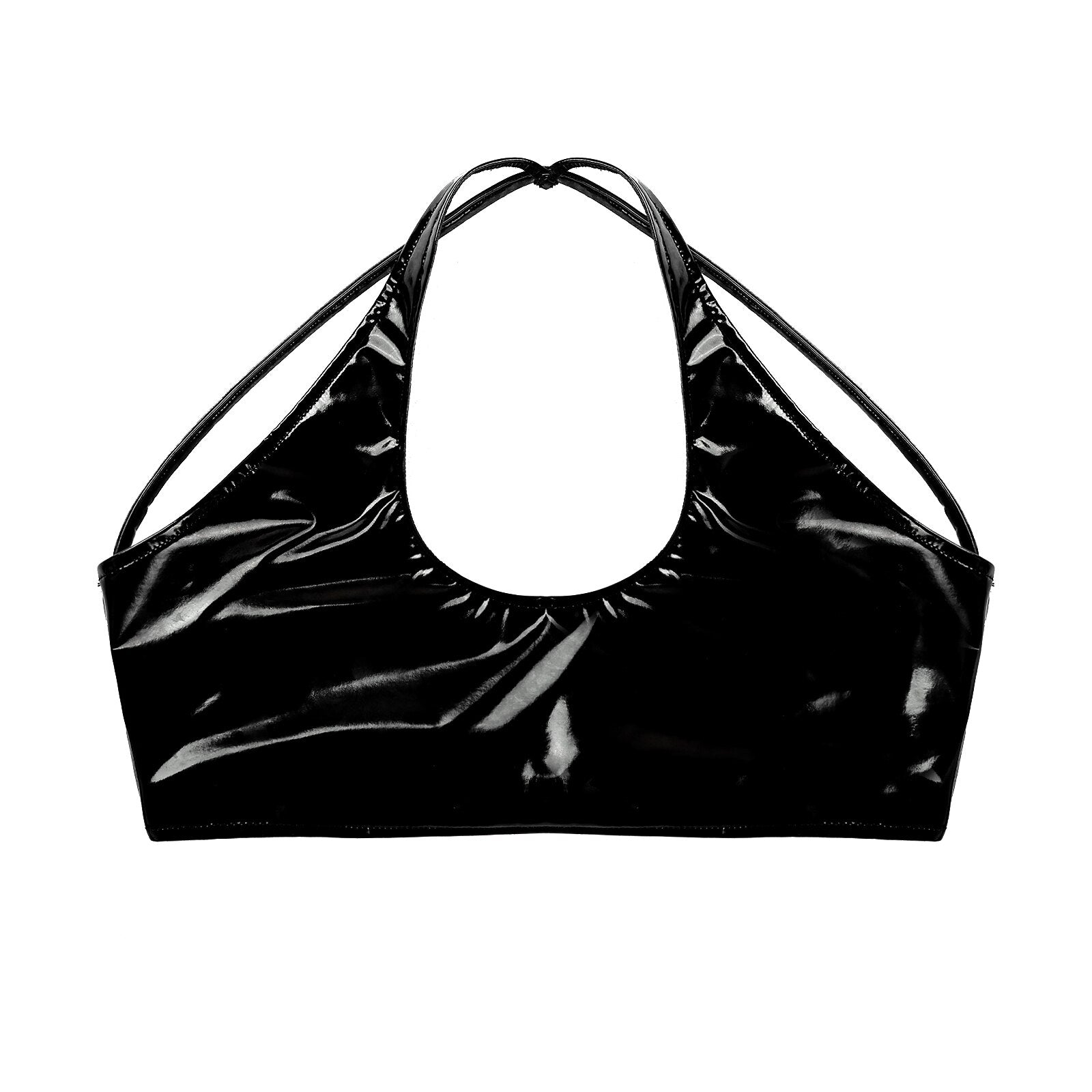 S-XXL Women Patent Leather Backless Crop Top Bra Cross Straps Wetlook Camisole Sexy Lingerie Vest Pole Dance Costume Clubwear