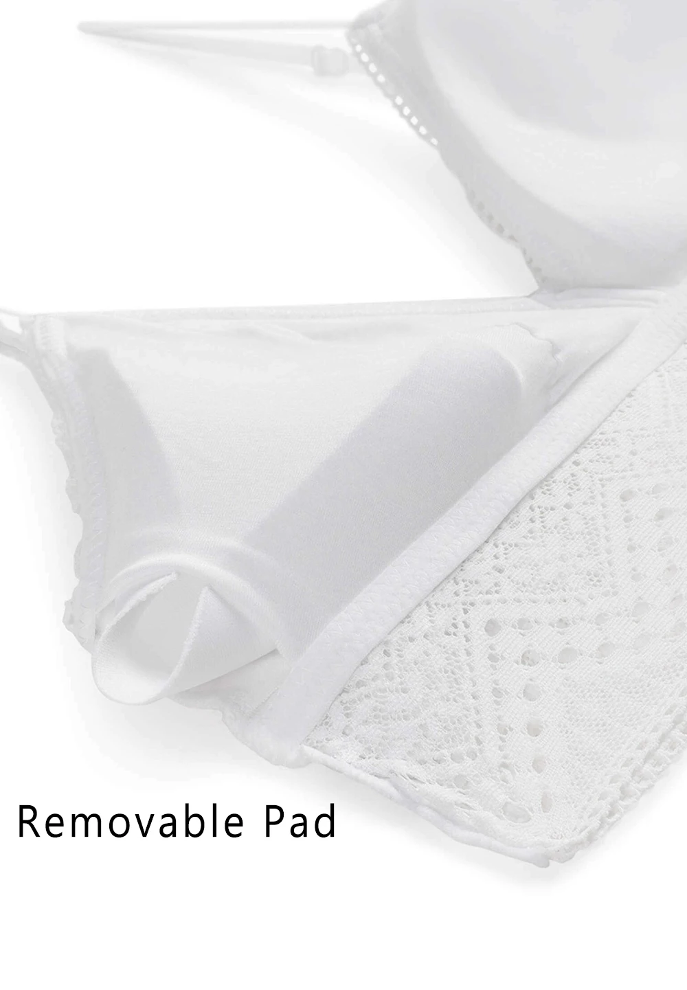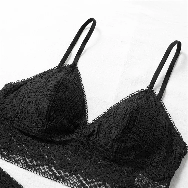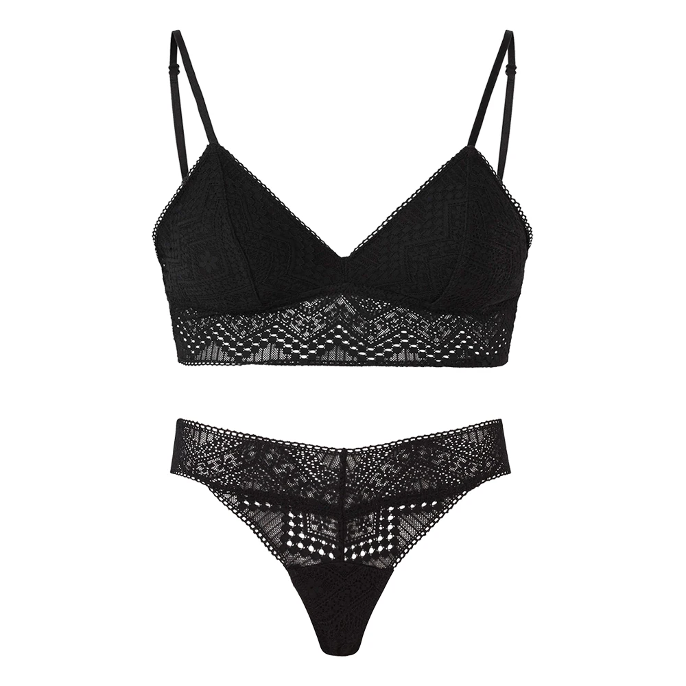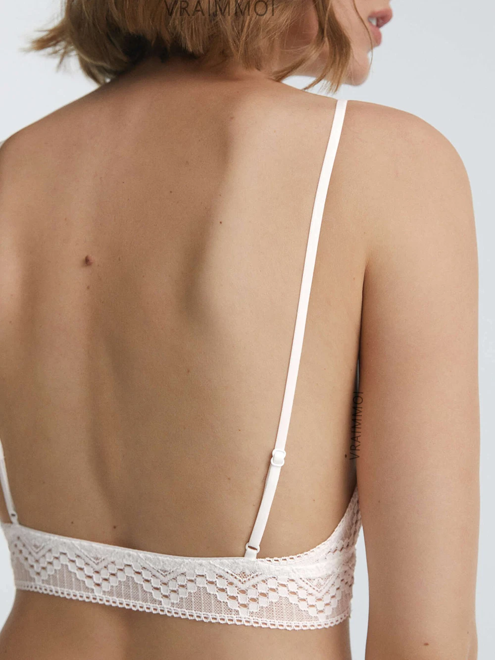Sexy Floral Lace Bra Set Triangle Bralette Plunging Low-Cut Back Underwear Non-Wired Removable Pad Low Back French Lingerie