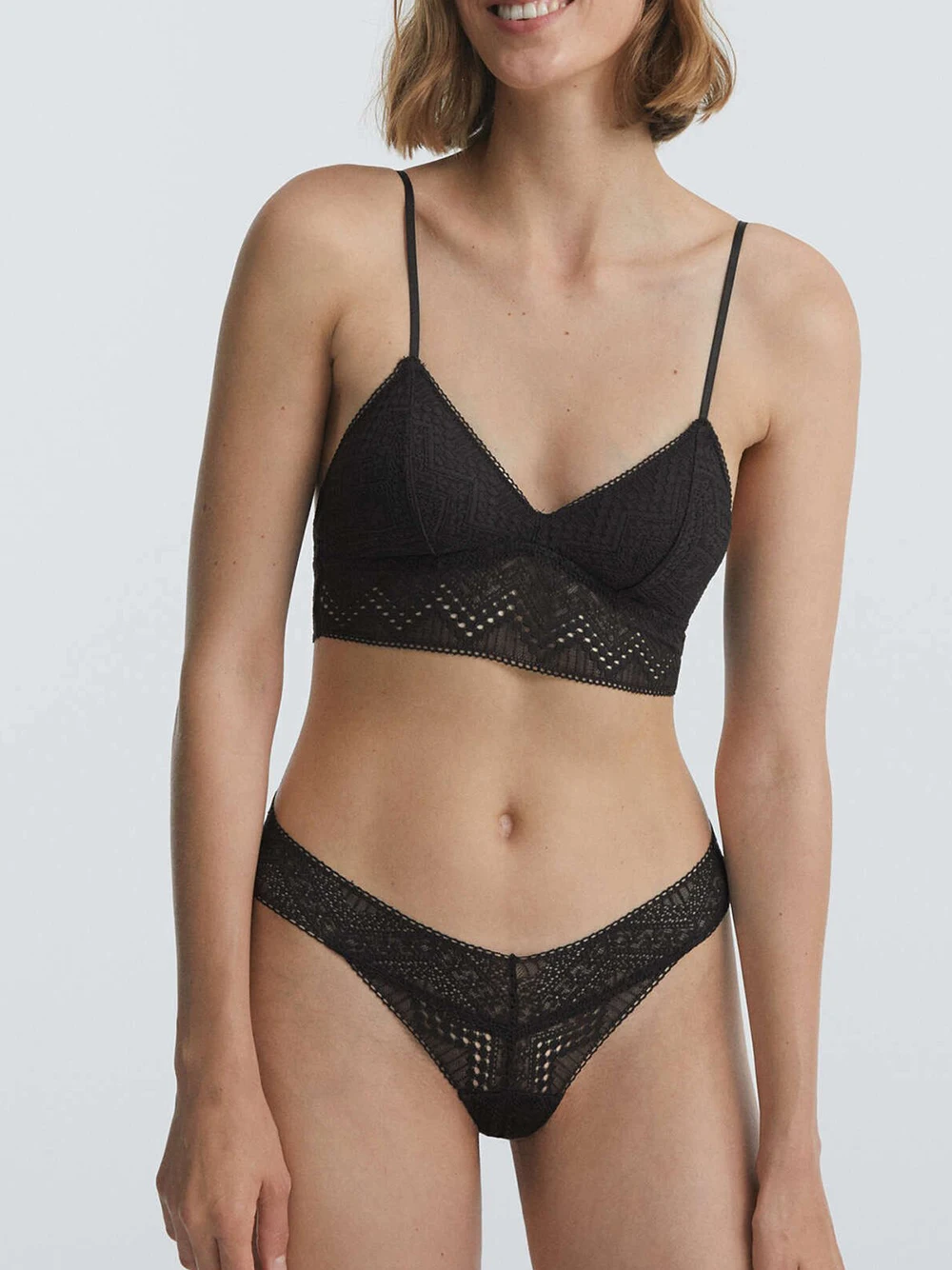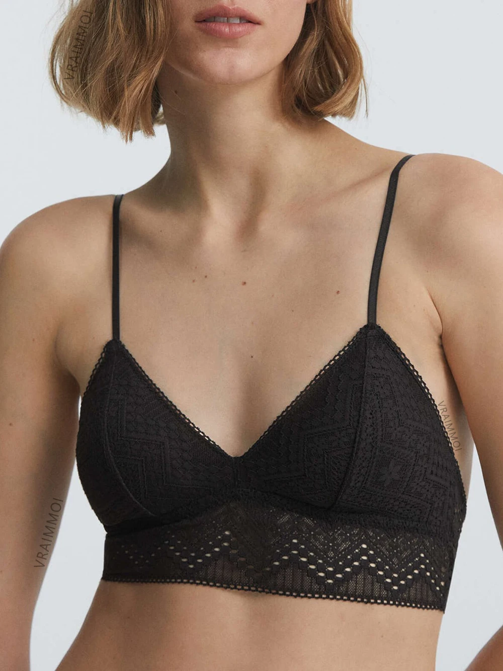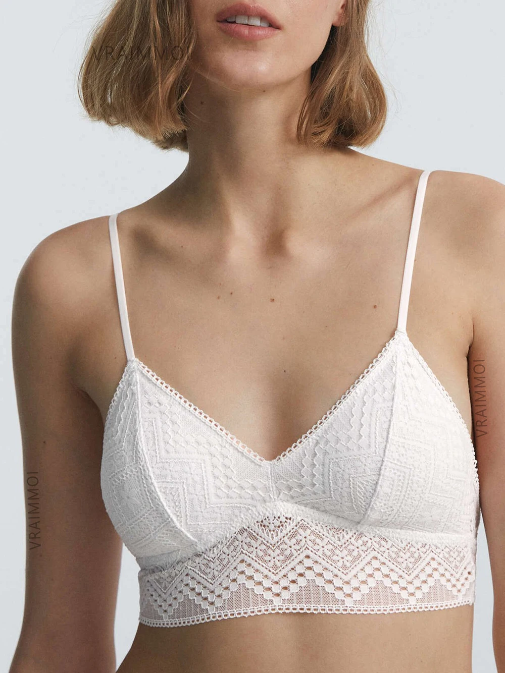Sexy Floral Lace Bra Set Triangle Bralette Plunging Low-Cut Back Underwear Non-Wired Removable Pad Low Back French Lingerie
