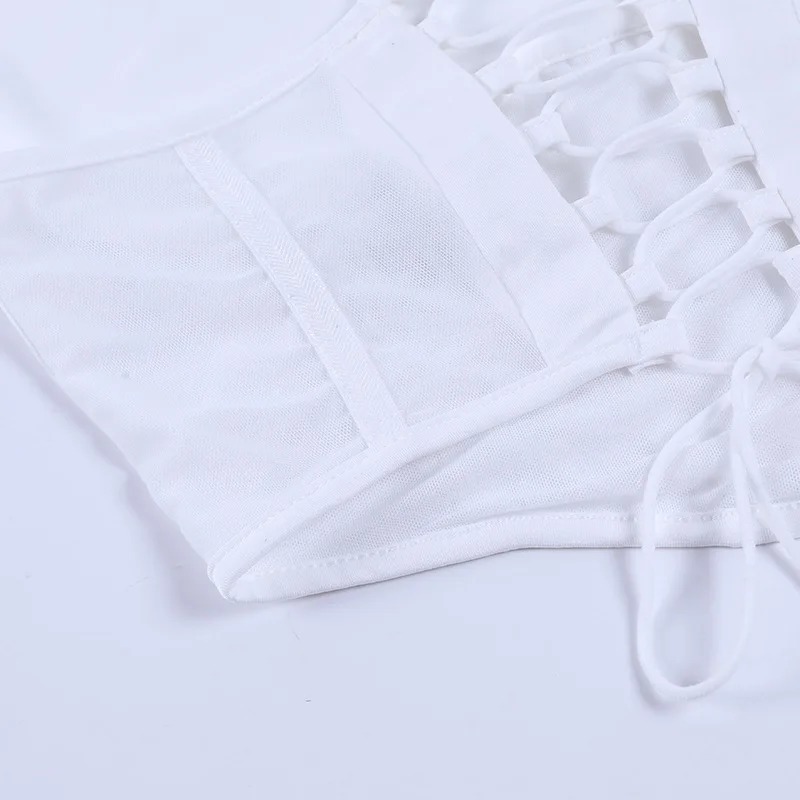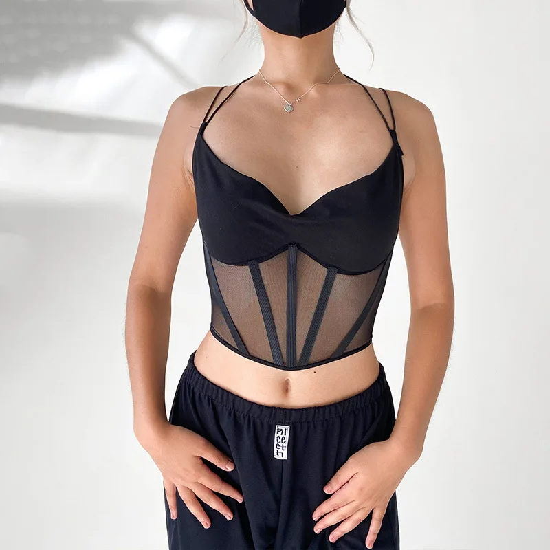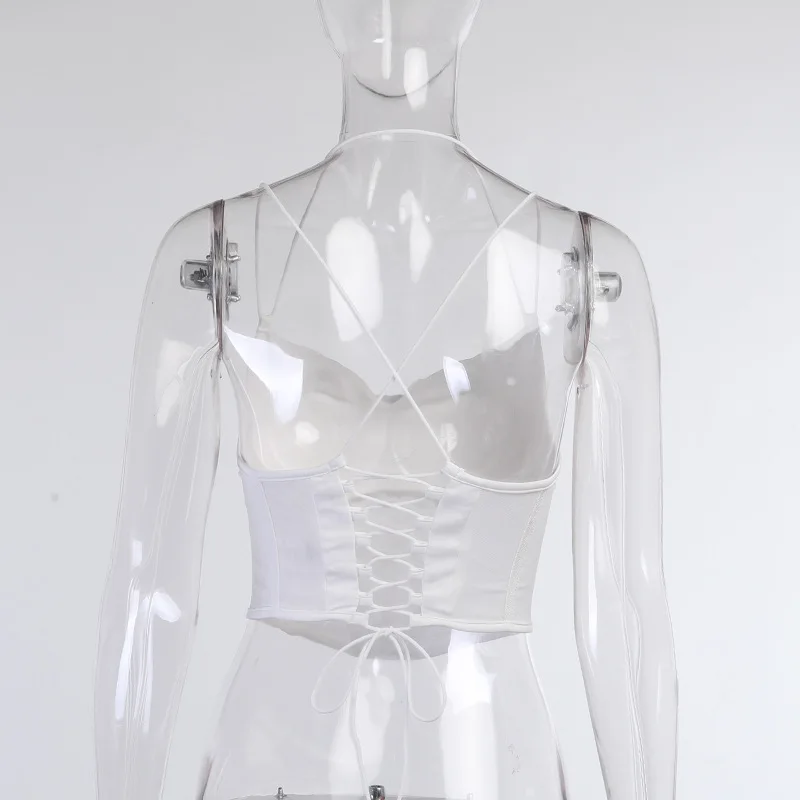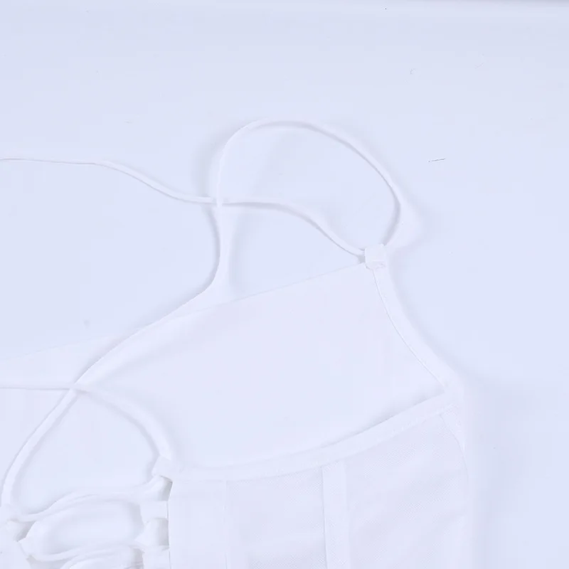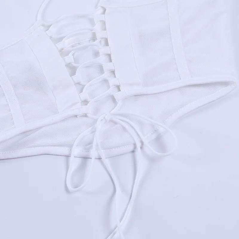 Sexy Halter Backless Crop Tops Summer Mesh See through Corset Top Women Camisole Fashion Basic Lace Up Tank Top Home Wear Female