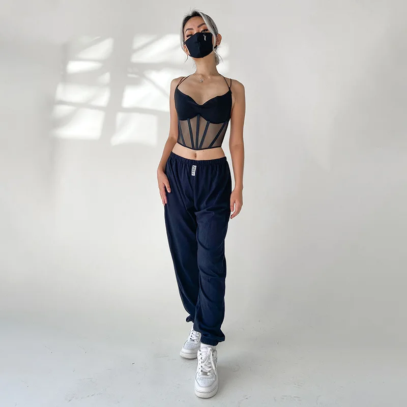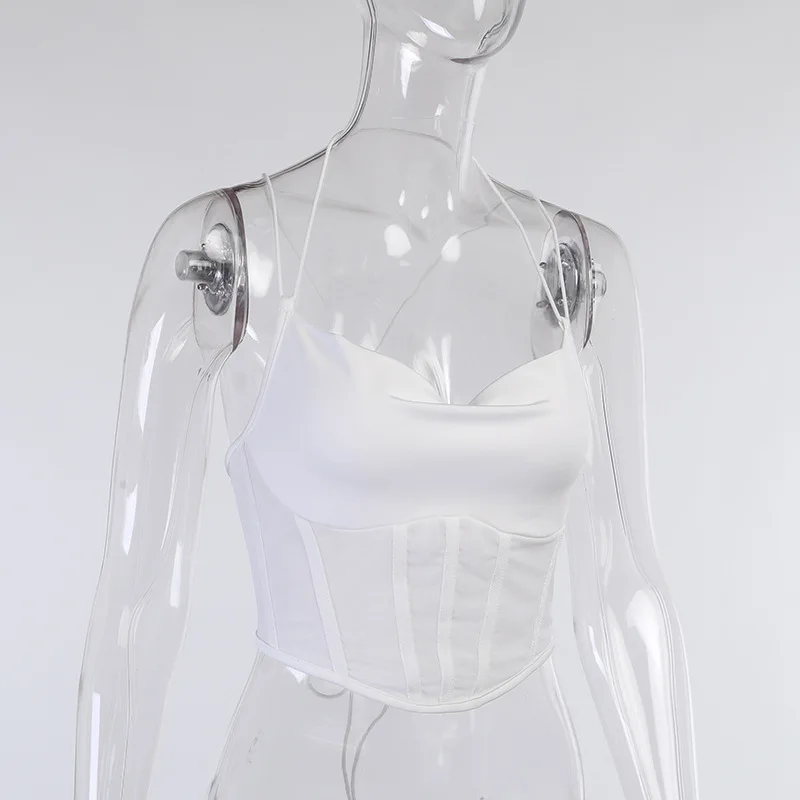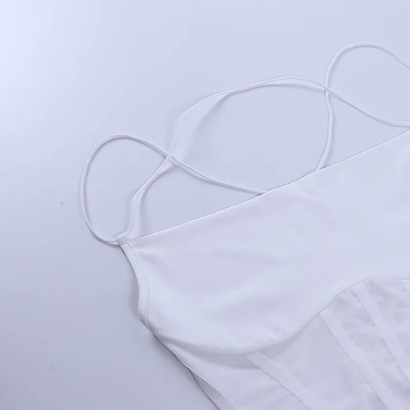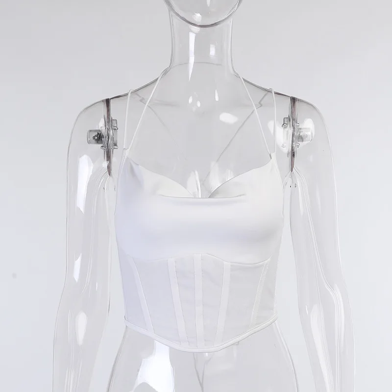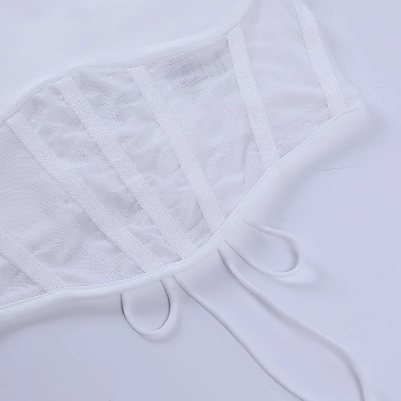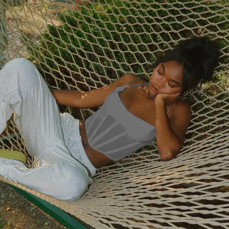 Sexy Halter Backless Crop Tops Summer Mesh See through Corset Top Women Camisole Fashion Basic Lace Up Tank Top Home Wear Female