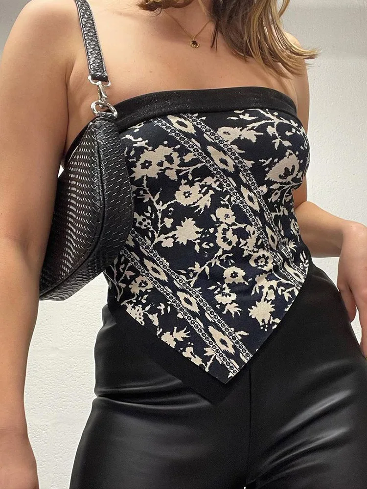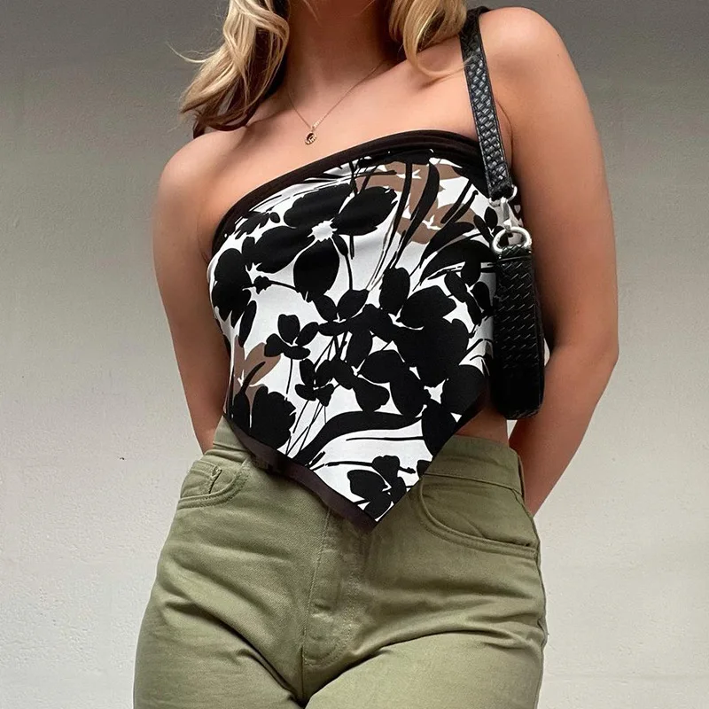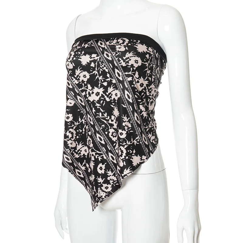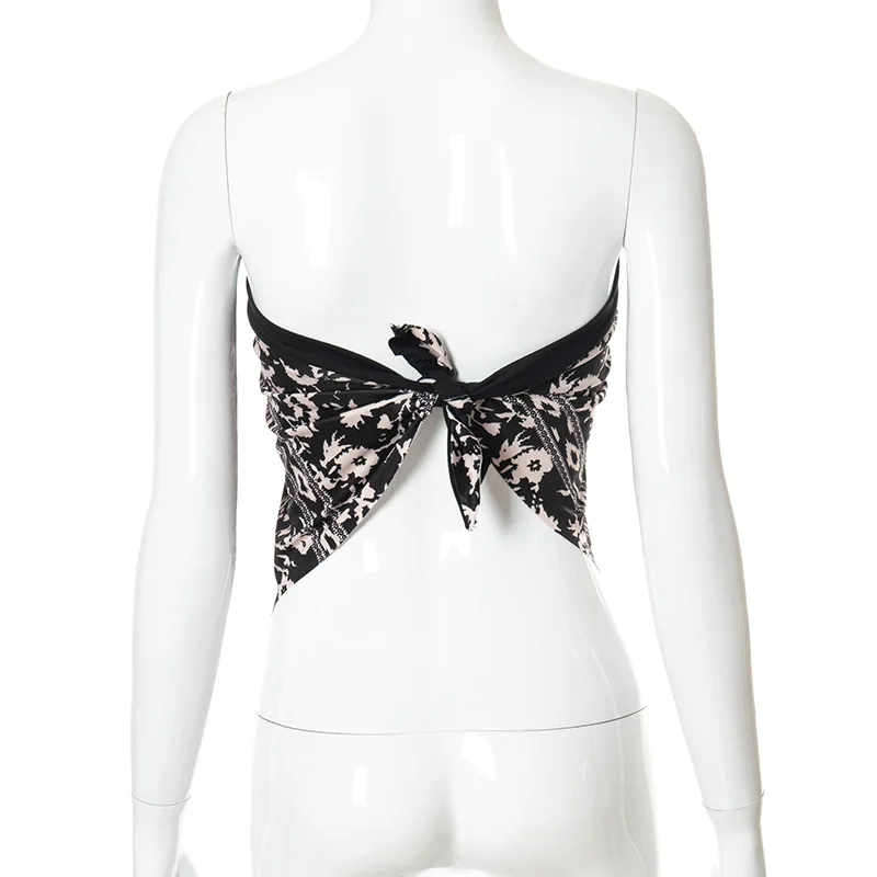 Sexy Tank Top Floral Print Strapless Corset Crop Tops Women Summer Camis Backless Camisole Fashion Casual Tube Top Cropped Vest