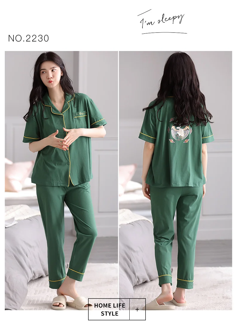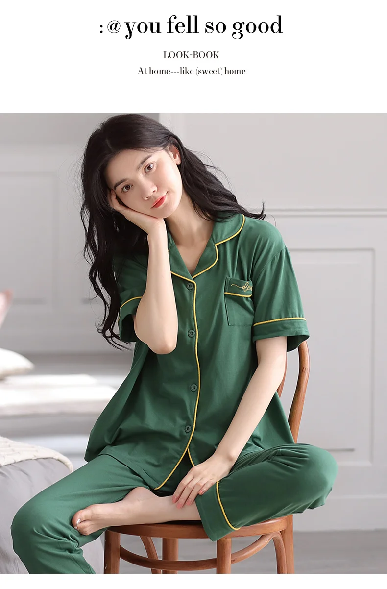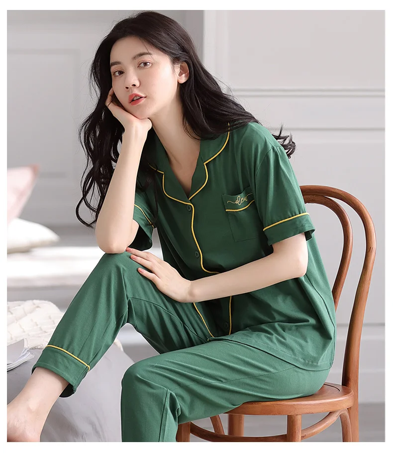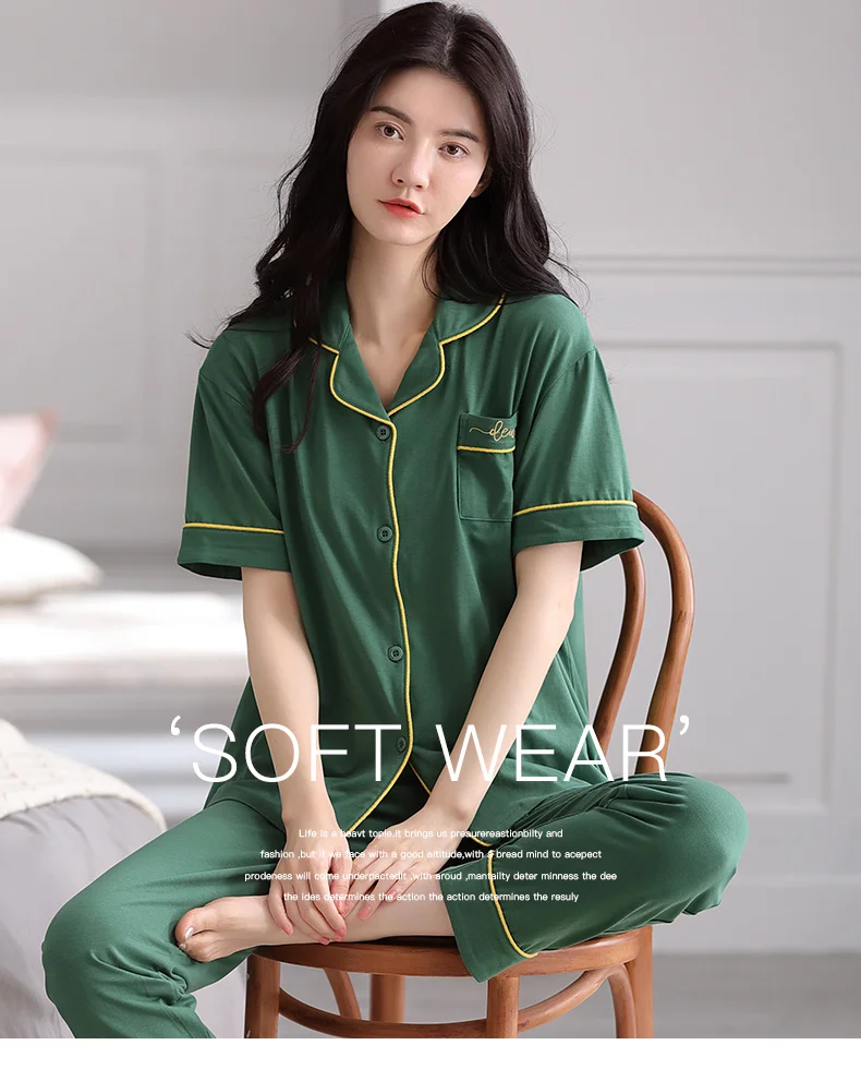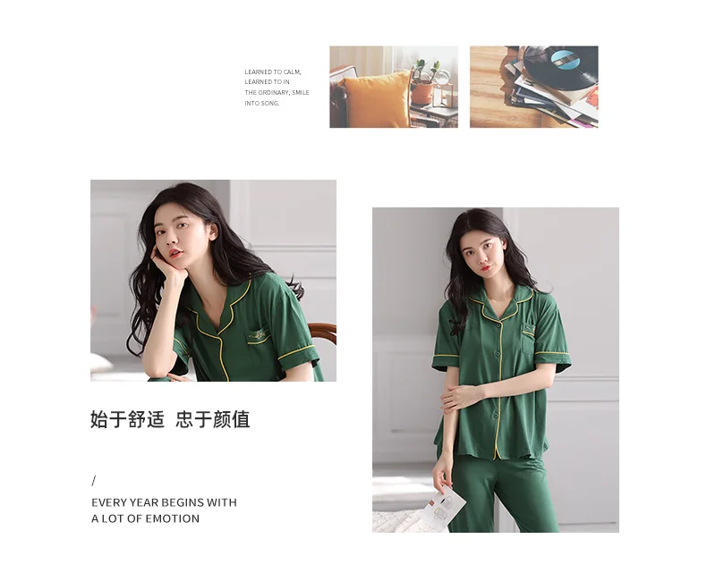 Summer 100% modal cotton long-sleeved trousers ladies pajamas suit simple green colour style long pajamas women's home service
