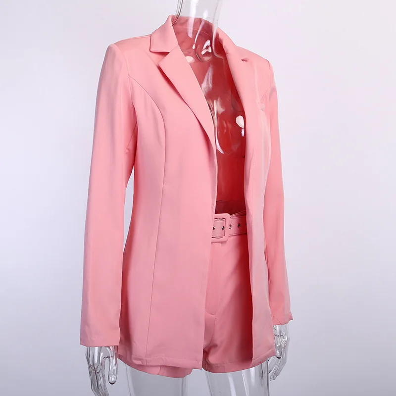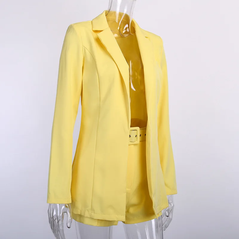 Two Piece Blazer Set Women Office Set 2 Pieces Elegant Work OL Blazer And Shorts Coat Woman Sexy Chic Suit 2021 Summer Clothes