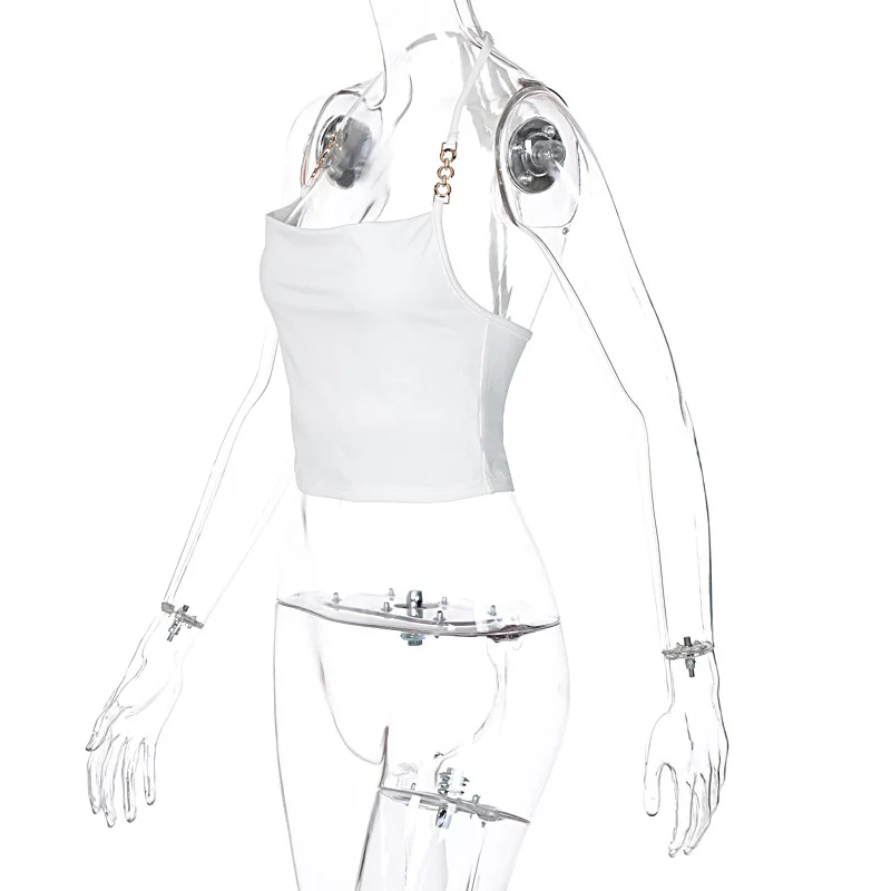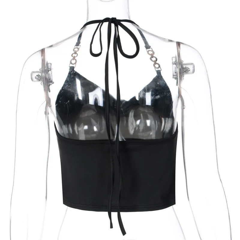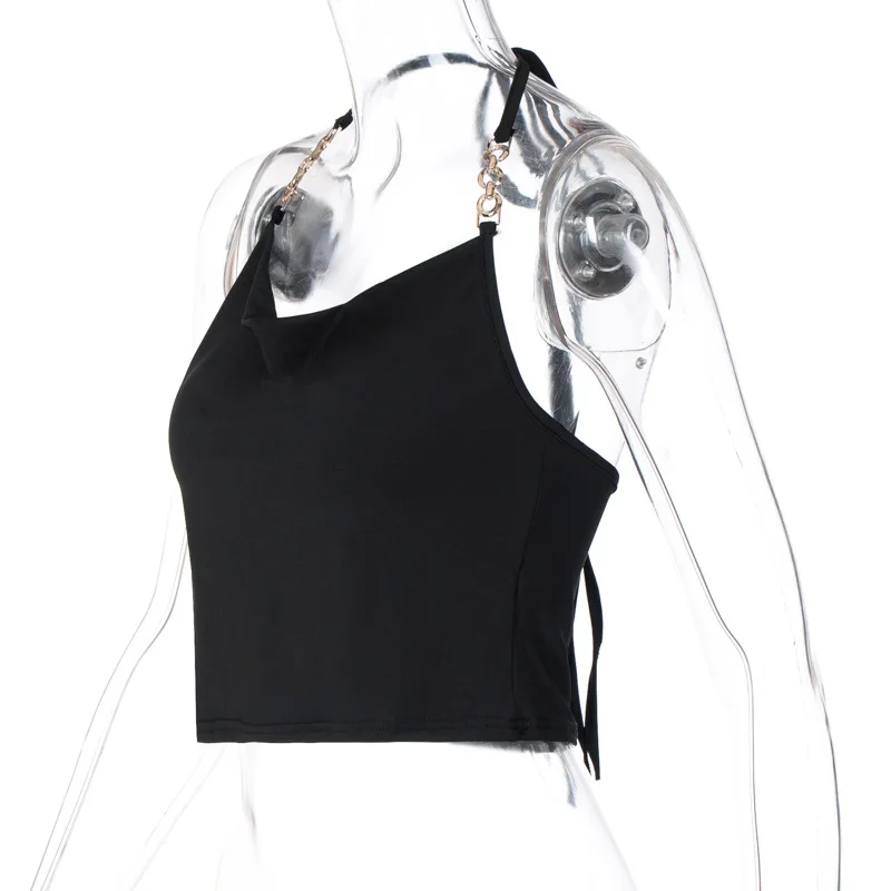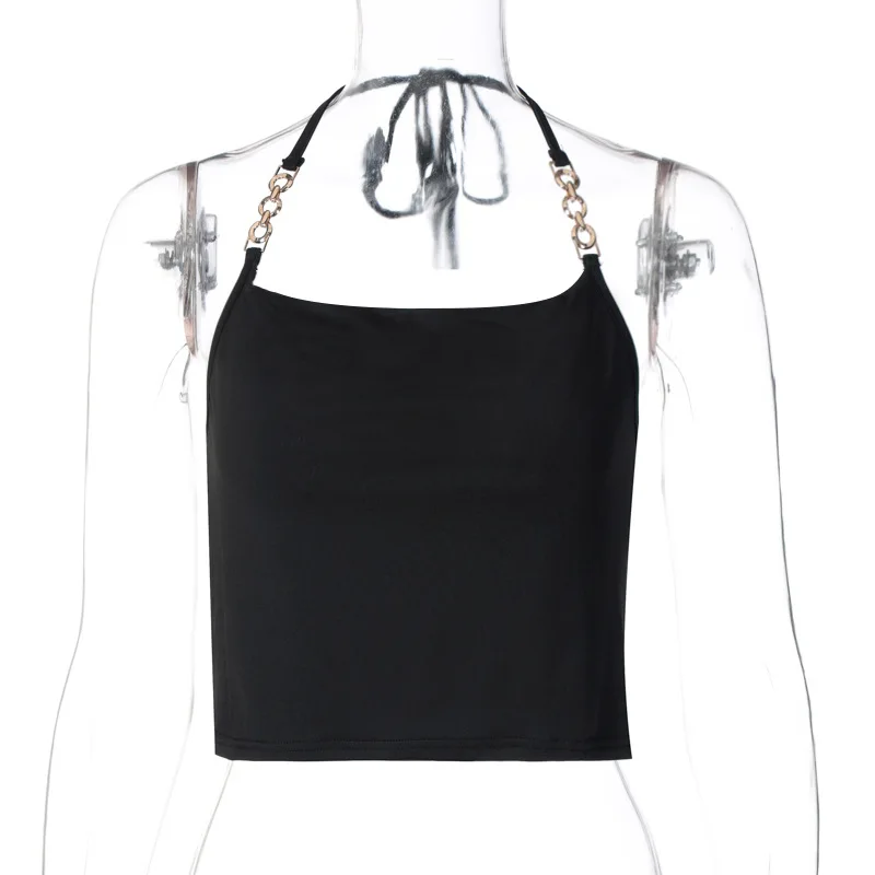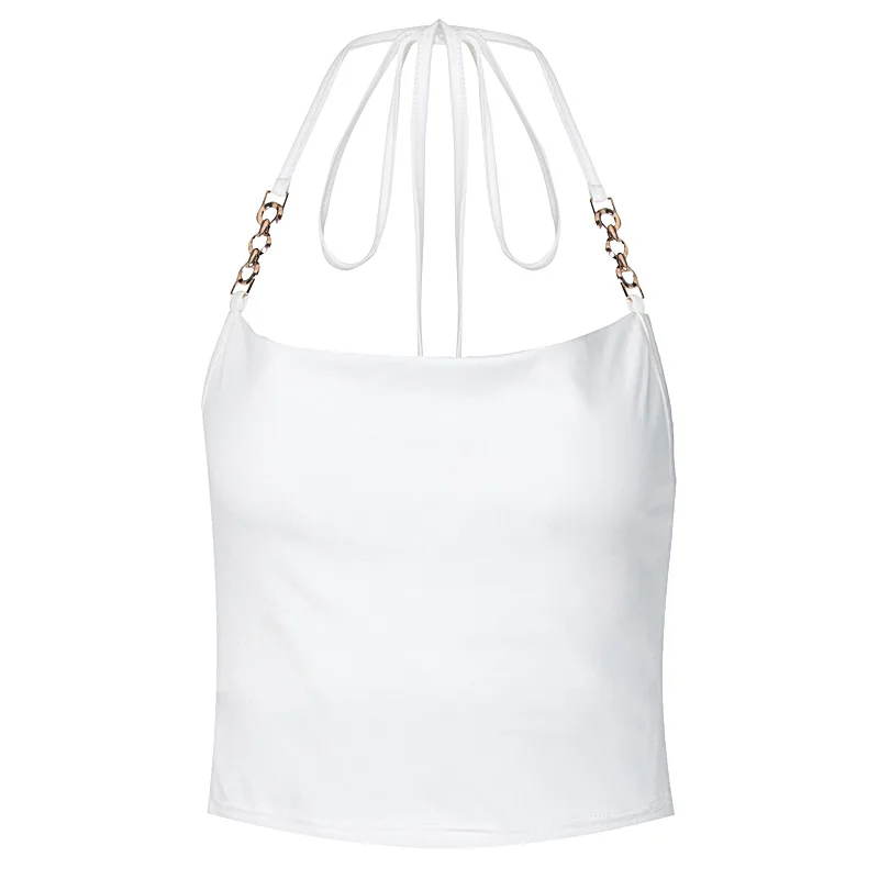 White Crop Top Womens Chain Stitching Halter Top Sleeveless Backless Sexy Tube Cami Female Summer Clothing Fashion Streetwear