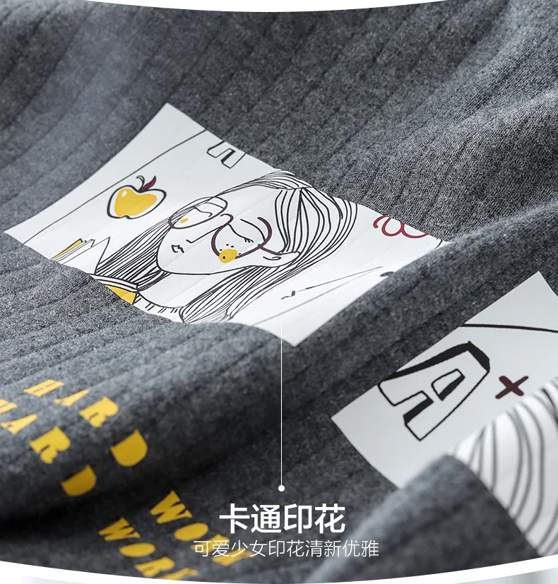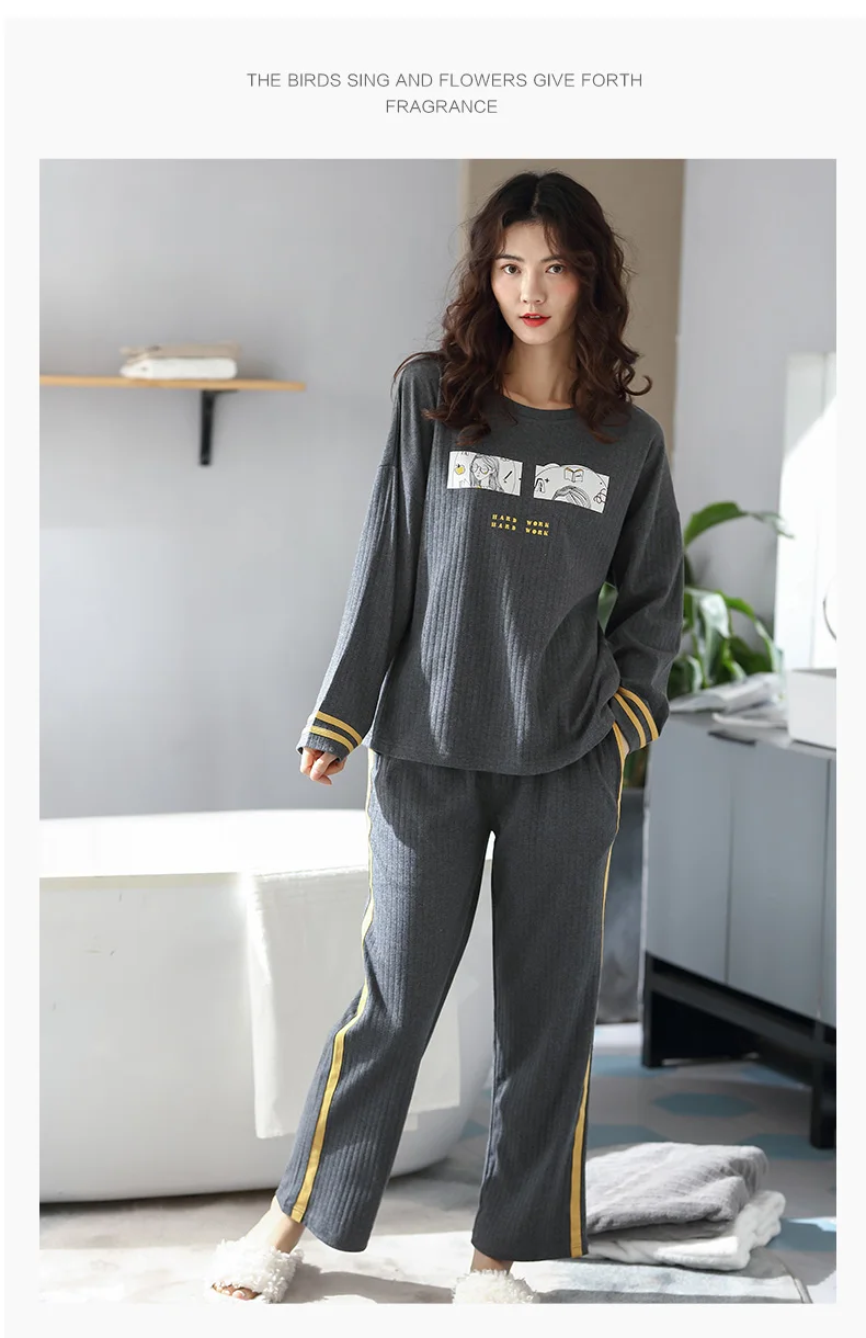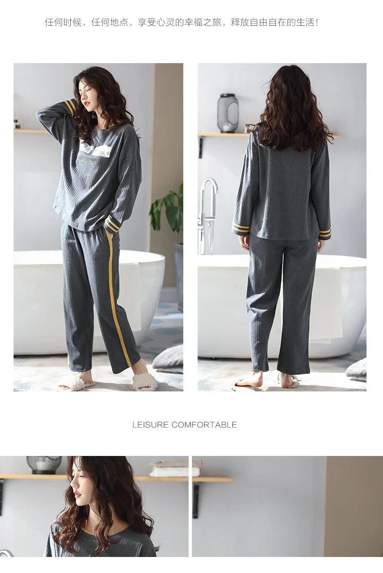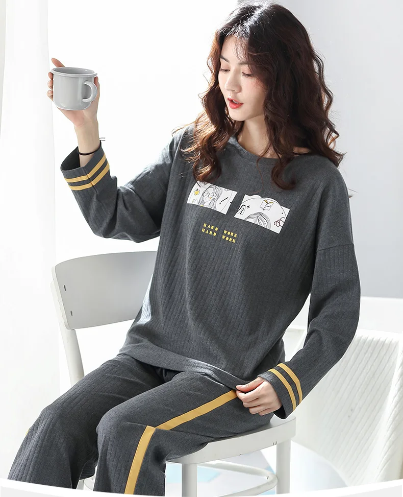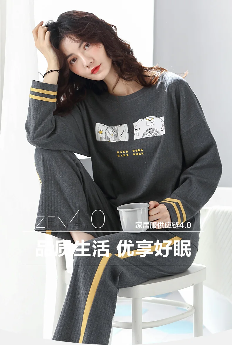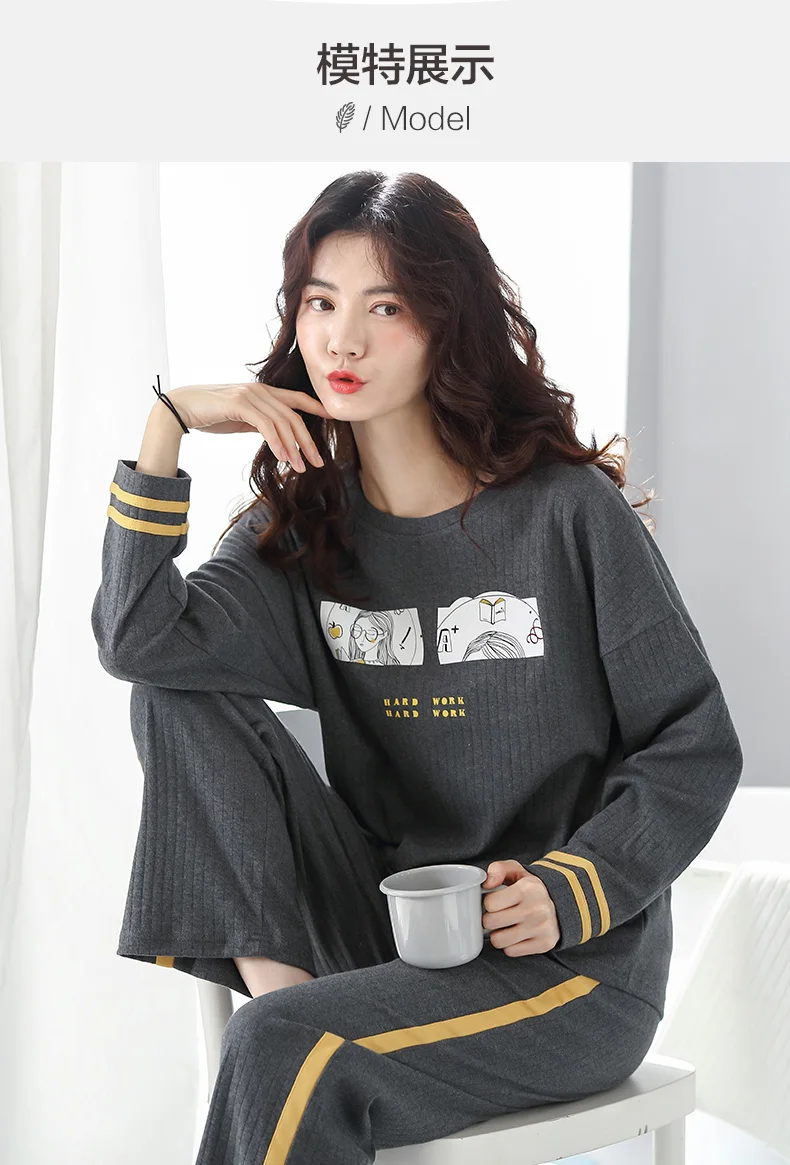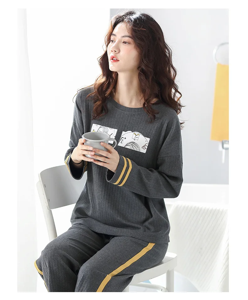 Woman Lovely Wear Leisure Clothes Personality Spring Autumn Dark Gray Print Long Sleeve Women Pajamas For Women Pyjamas Set