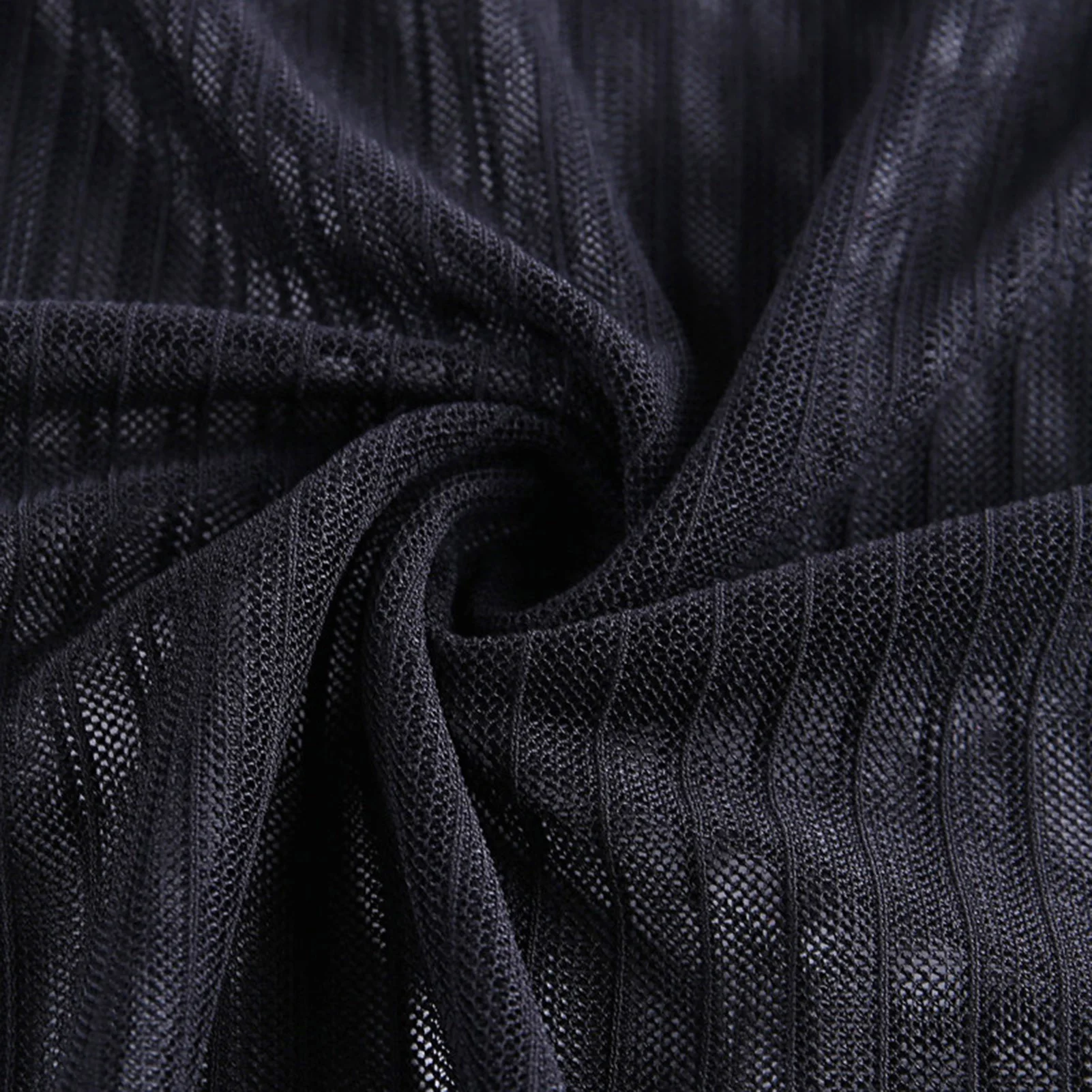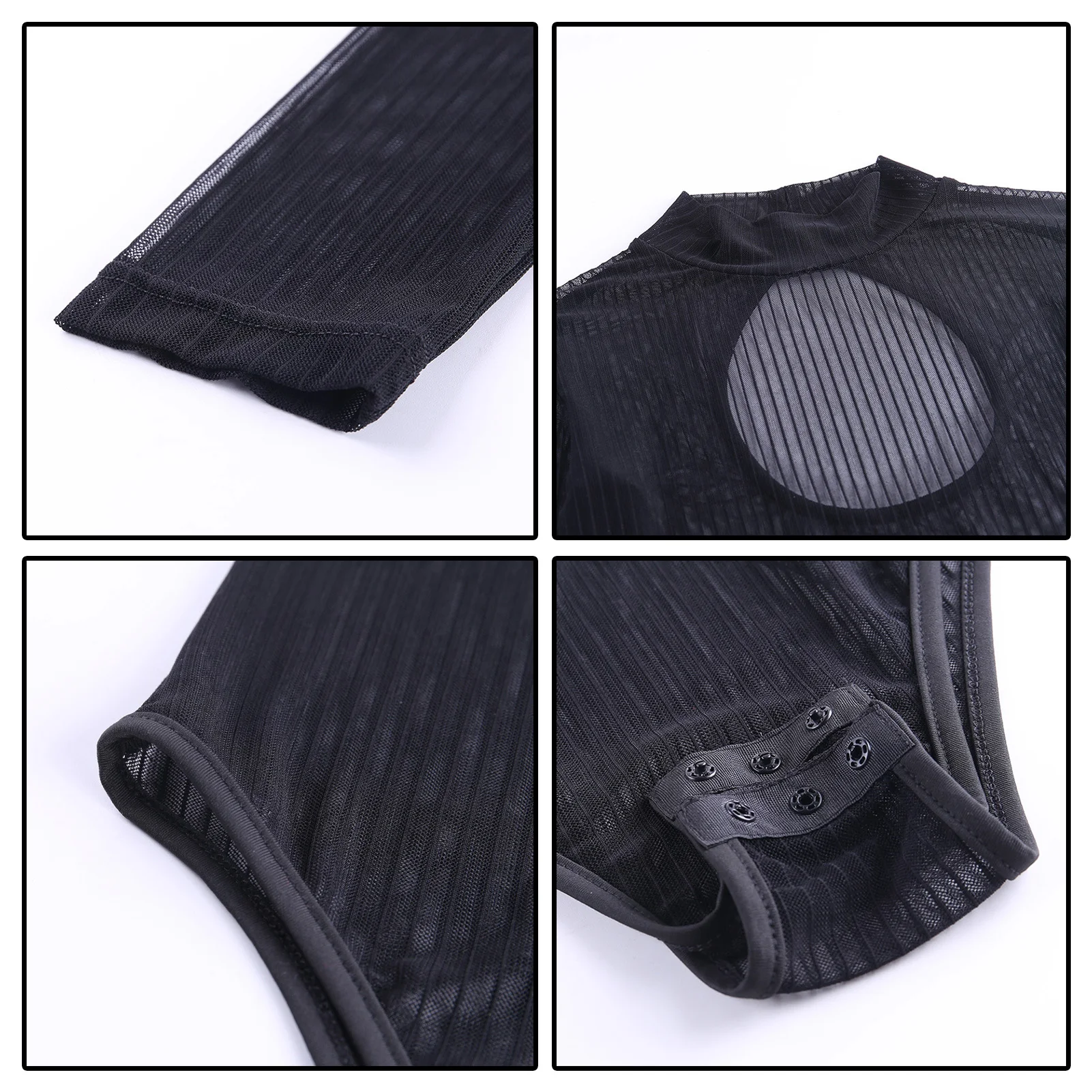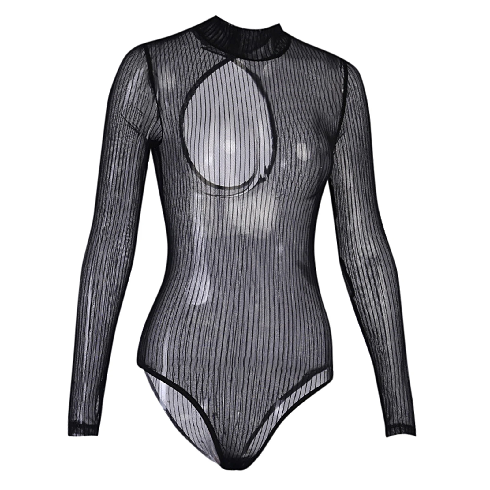 Women Bodysuit Backless Sexy See-through Mesh Stripes Slim Stand Collar Long Sleeves Jumpsuit Tops Fashion Bodysuit Clubwear